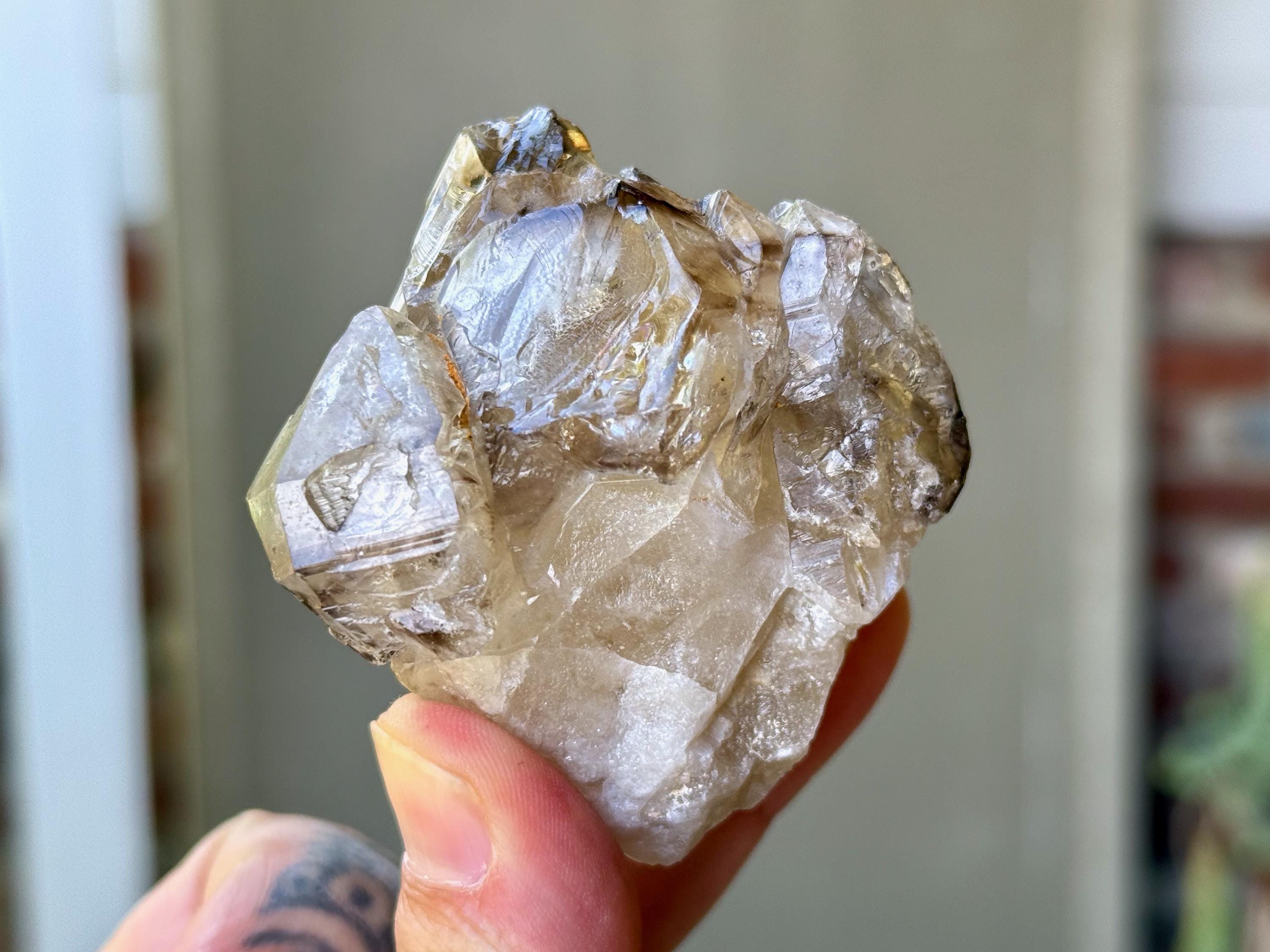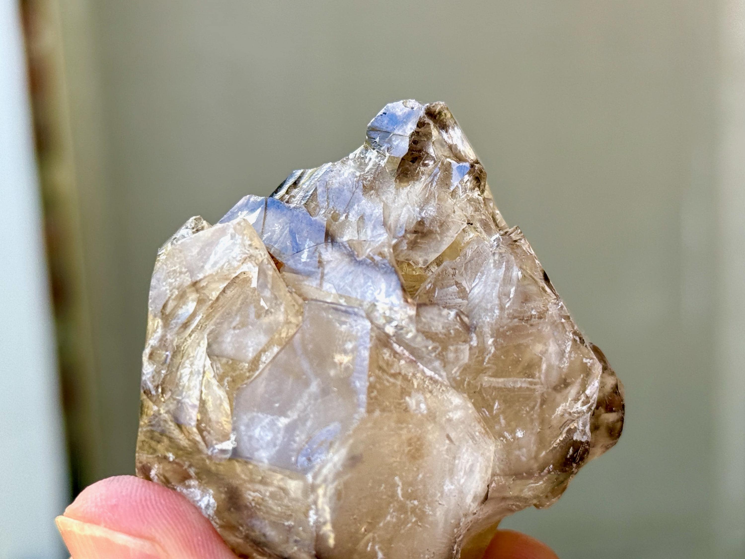 Elestial crystals can be distinguished by their layered growth patterns, multiple terminations (often trigonic), natural etched or textural surfaces (i.e. Jacare), and other distinctive and unique growth habits.