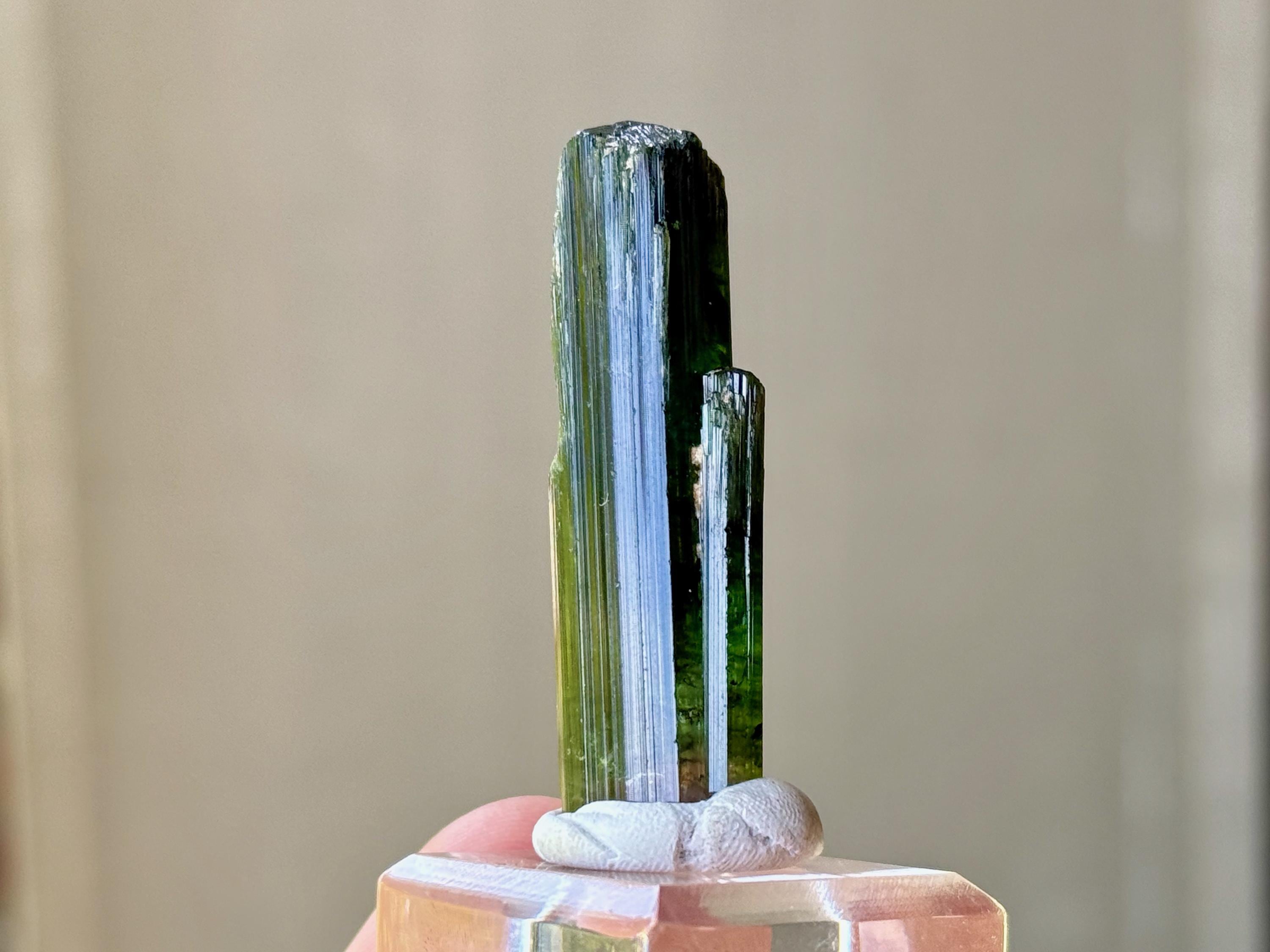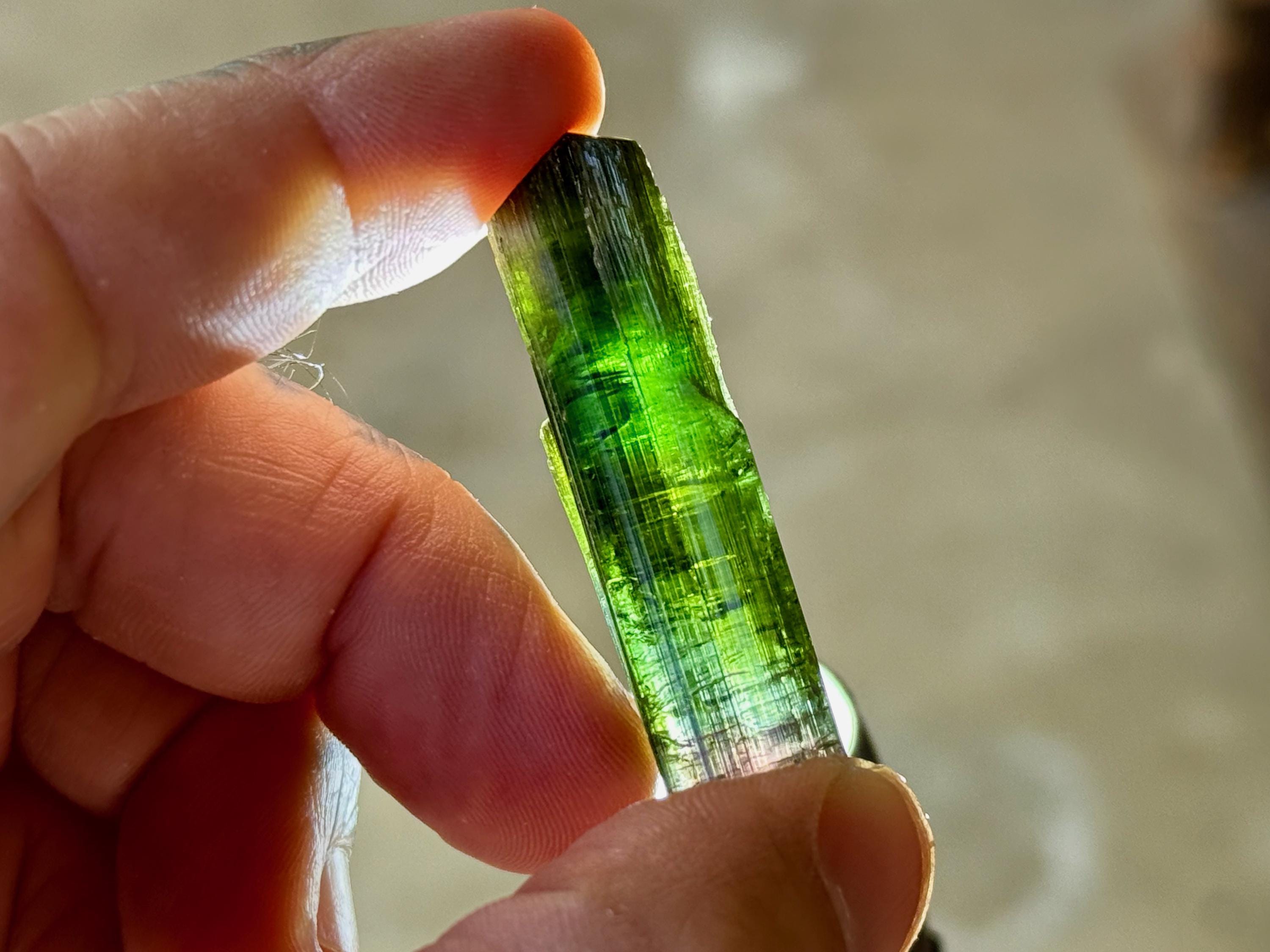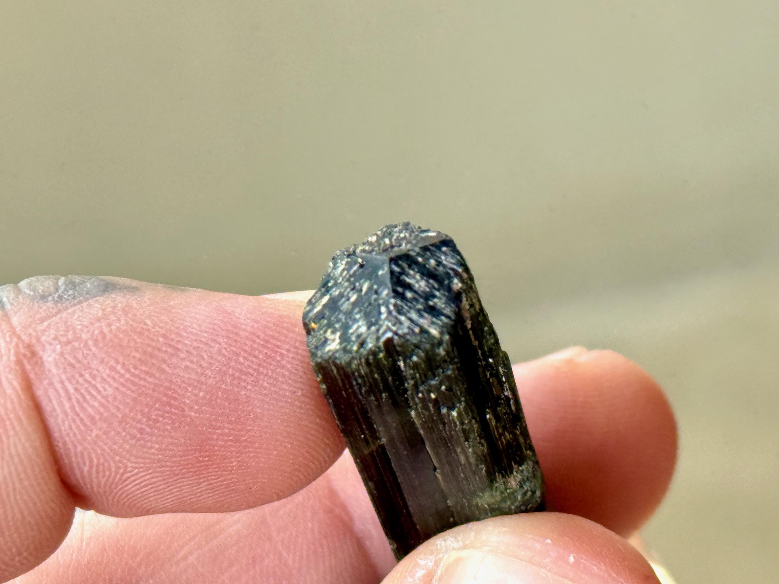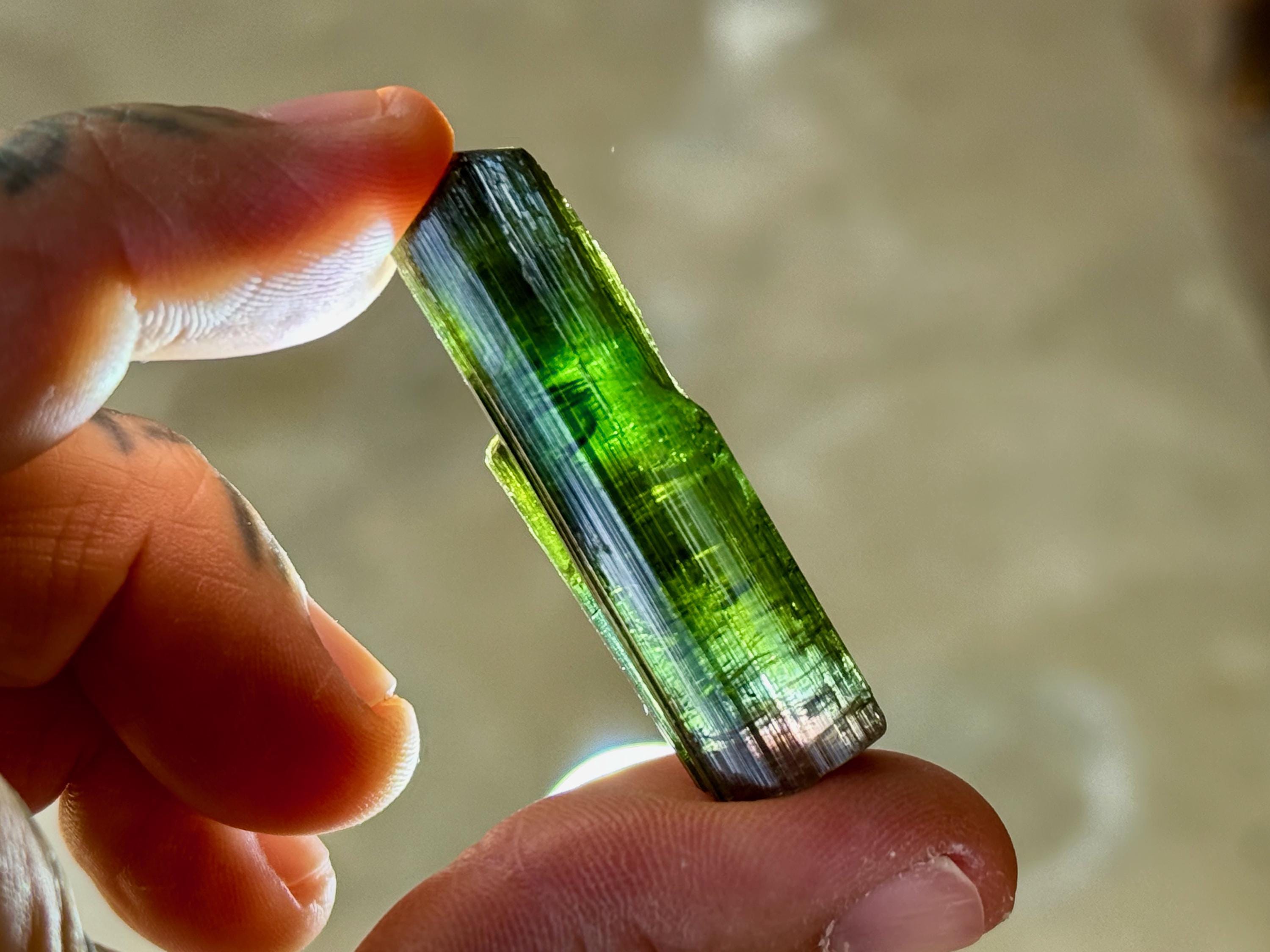 This Tourmaline is beautifully terminated with a "trinity" or "trigonal" termination, featuring three facets that terminate to a point (Photo 10). Outstanding quality!