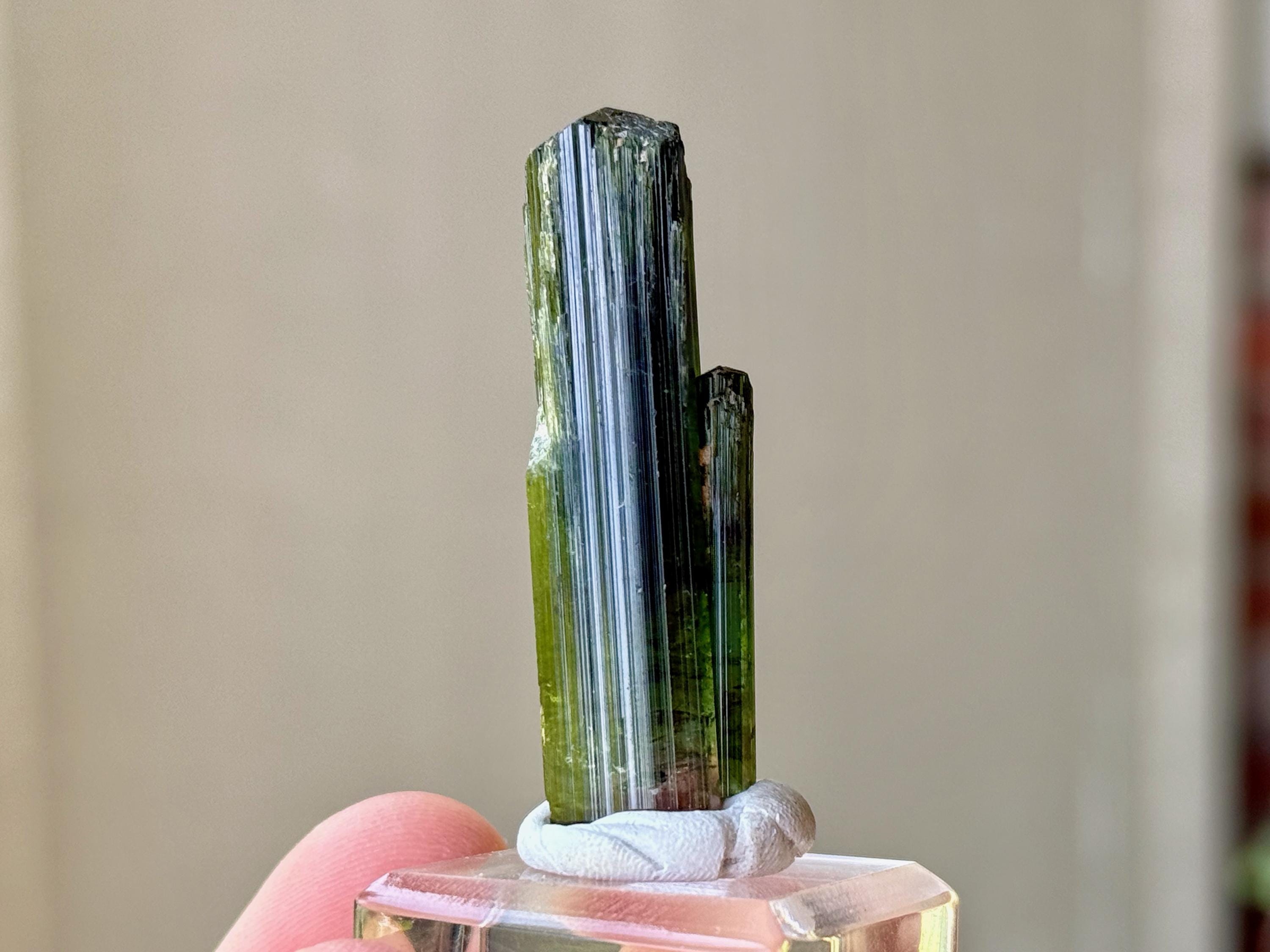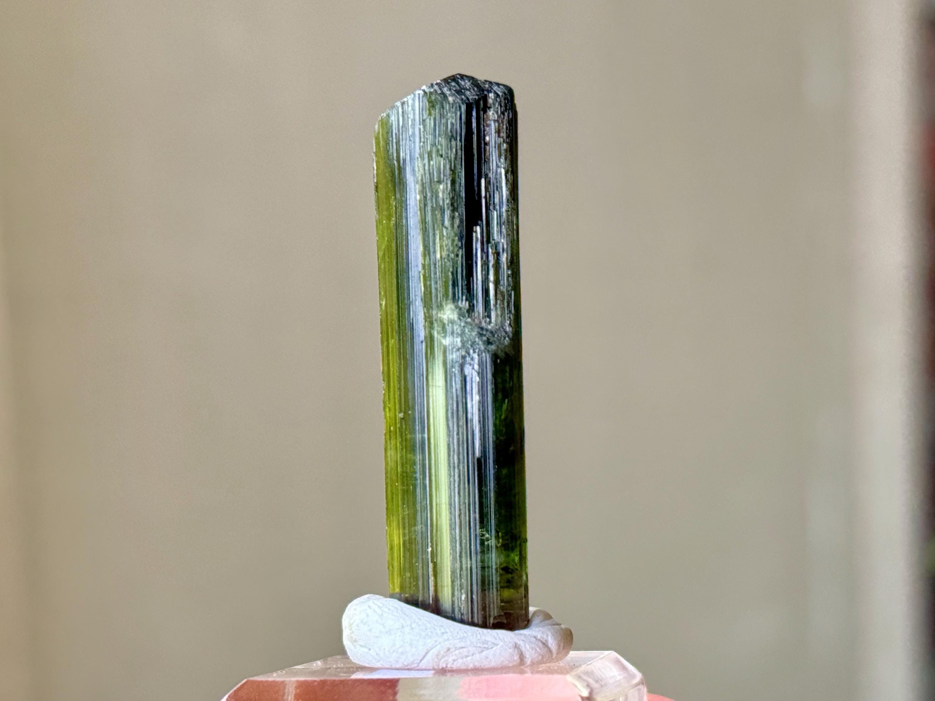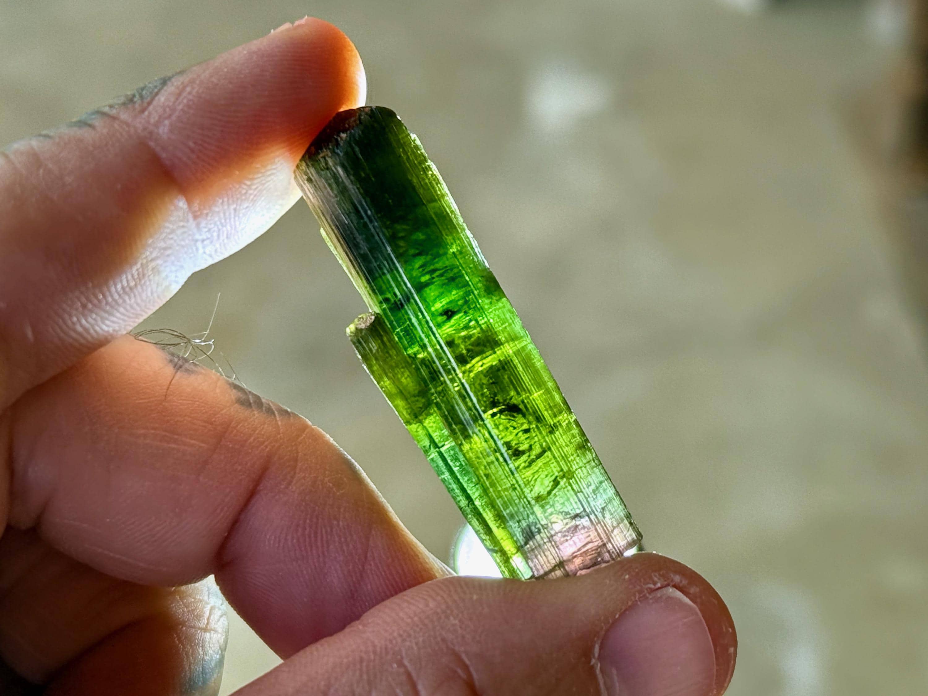 This spectacular Bicolor Green & Pink Tourmaline stuns with its brilliant luster and vibrant color. When backlit, as pictured, the verdant hues just burst from this crystal! As an added bonus, there's a bit of Pink Tourmaline in the base, giving this crystal a bicolor quality.