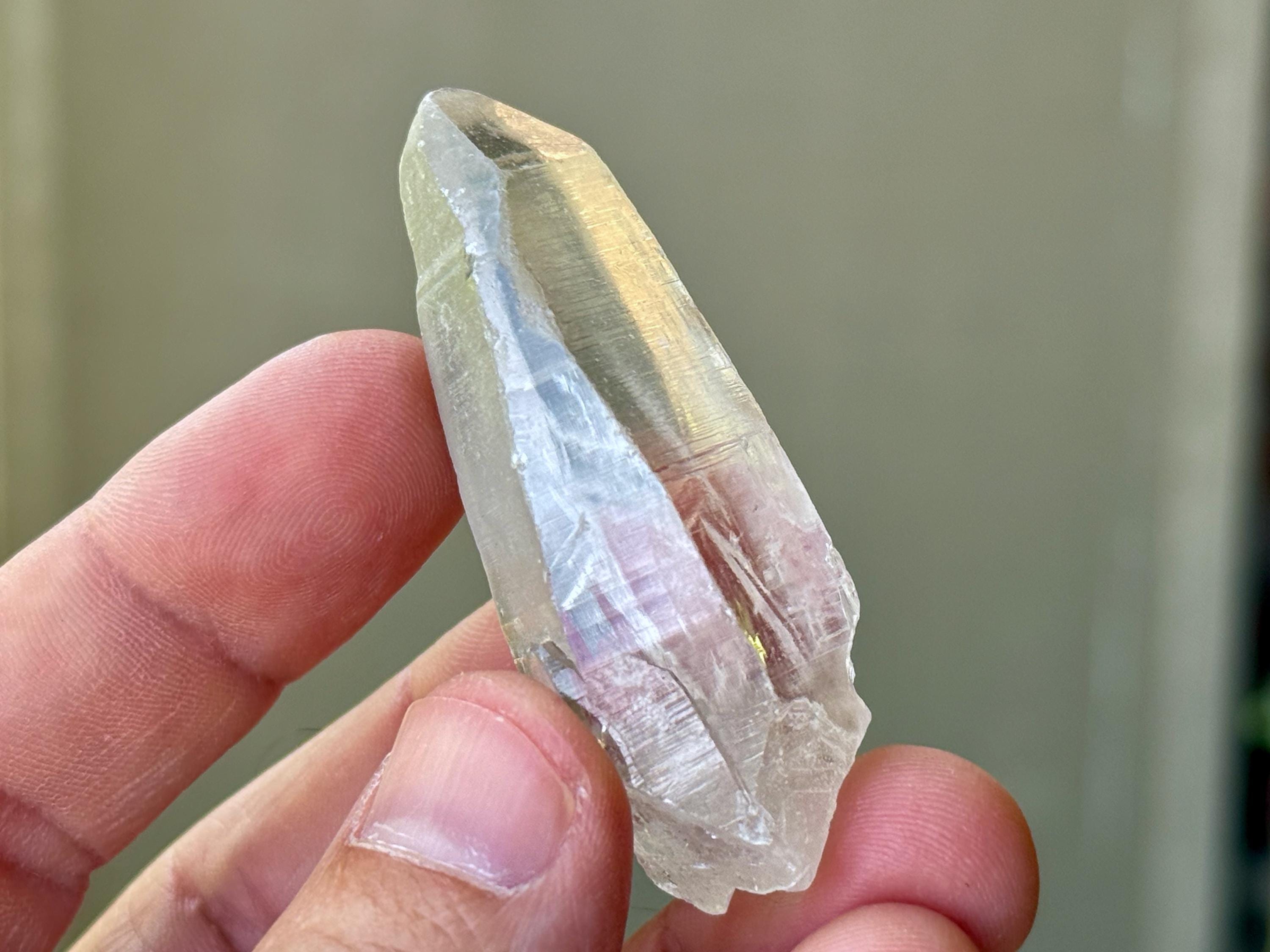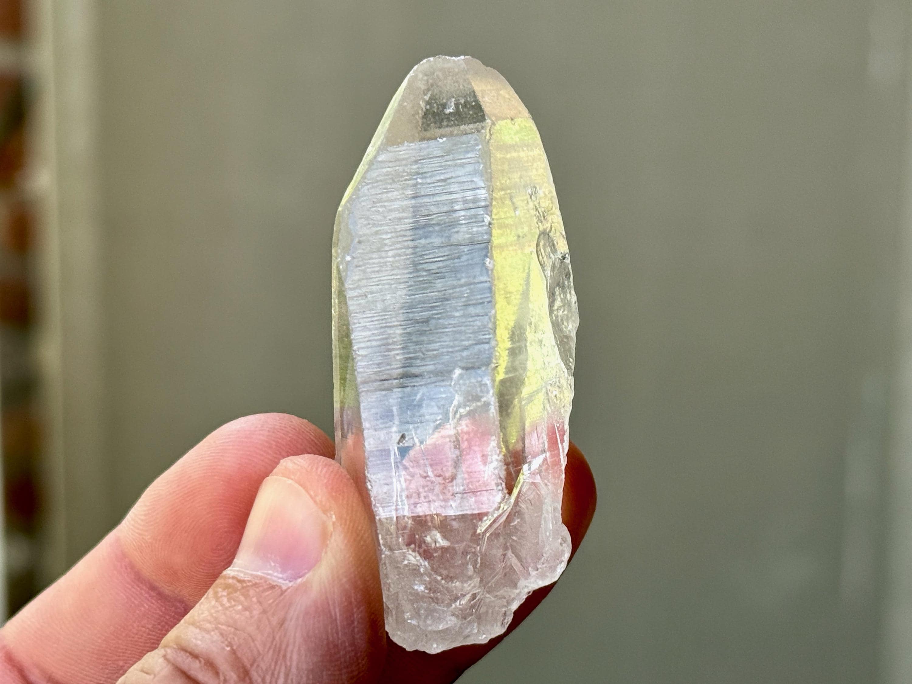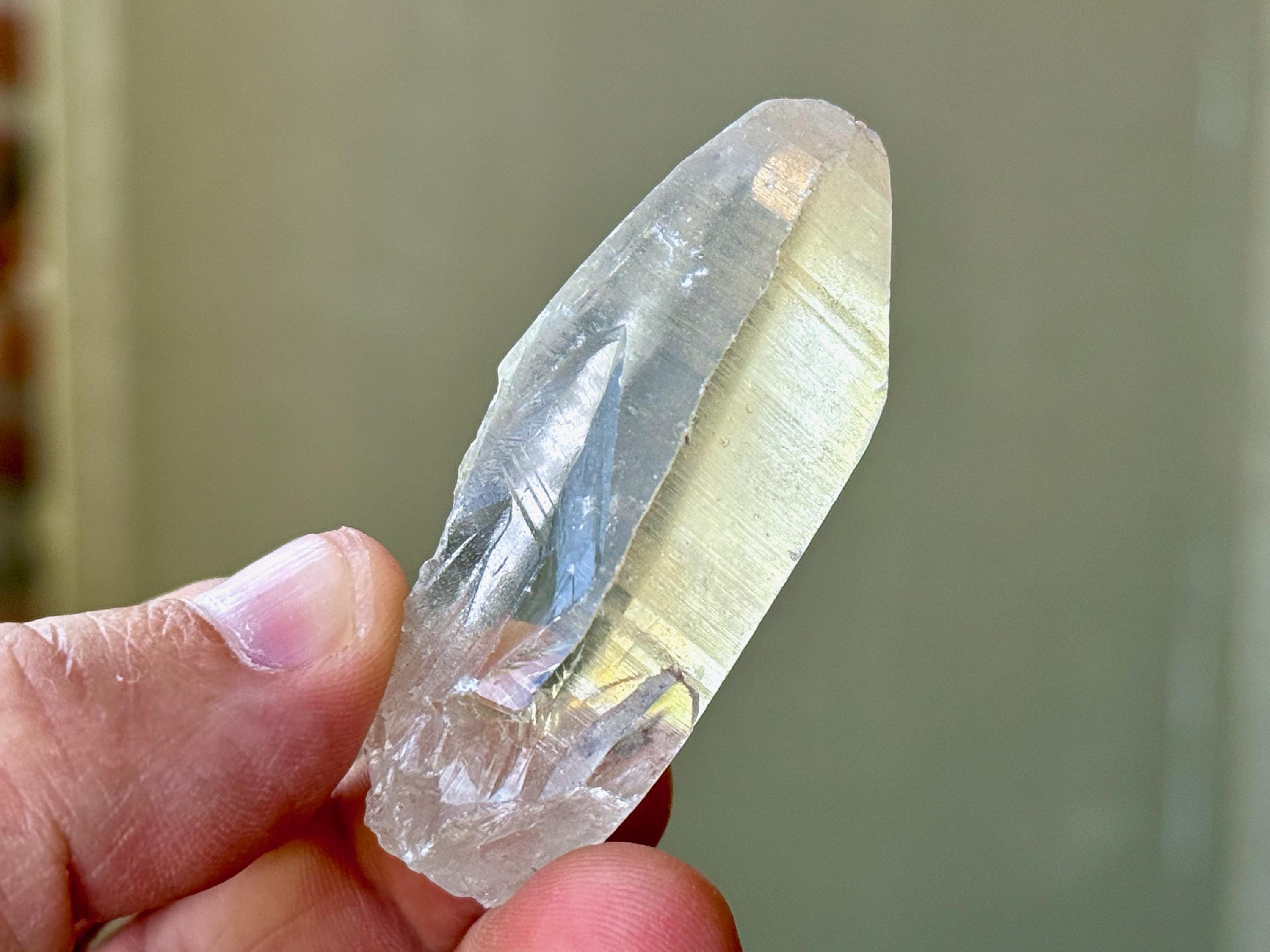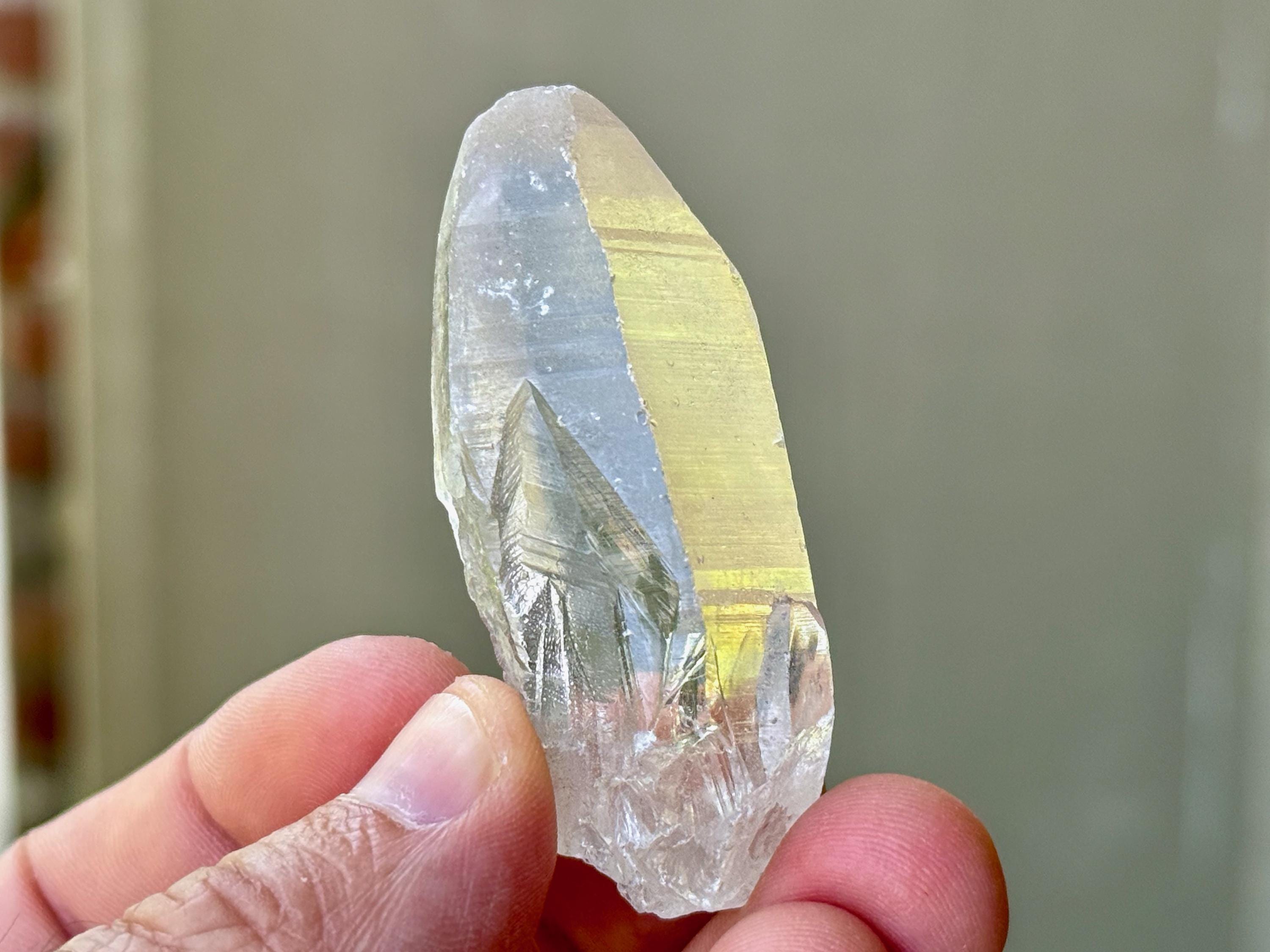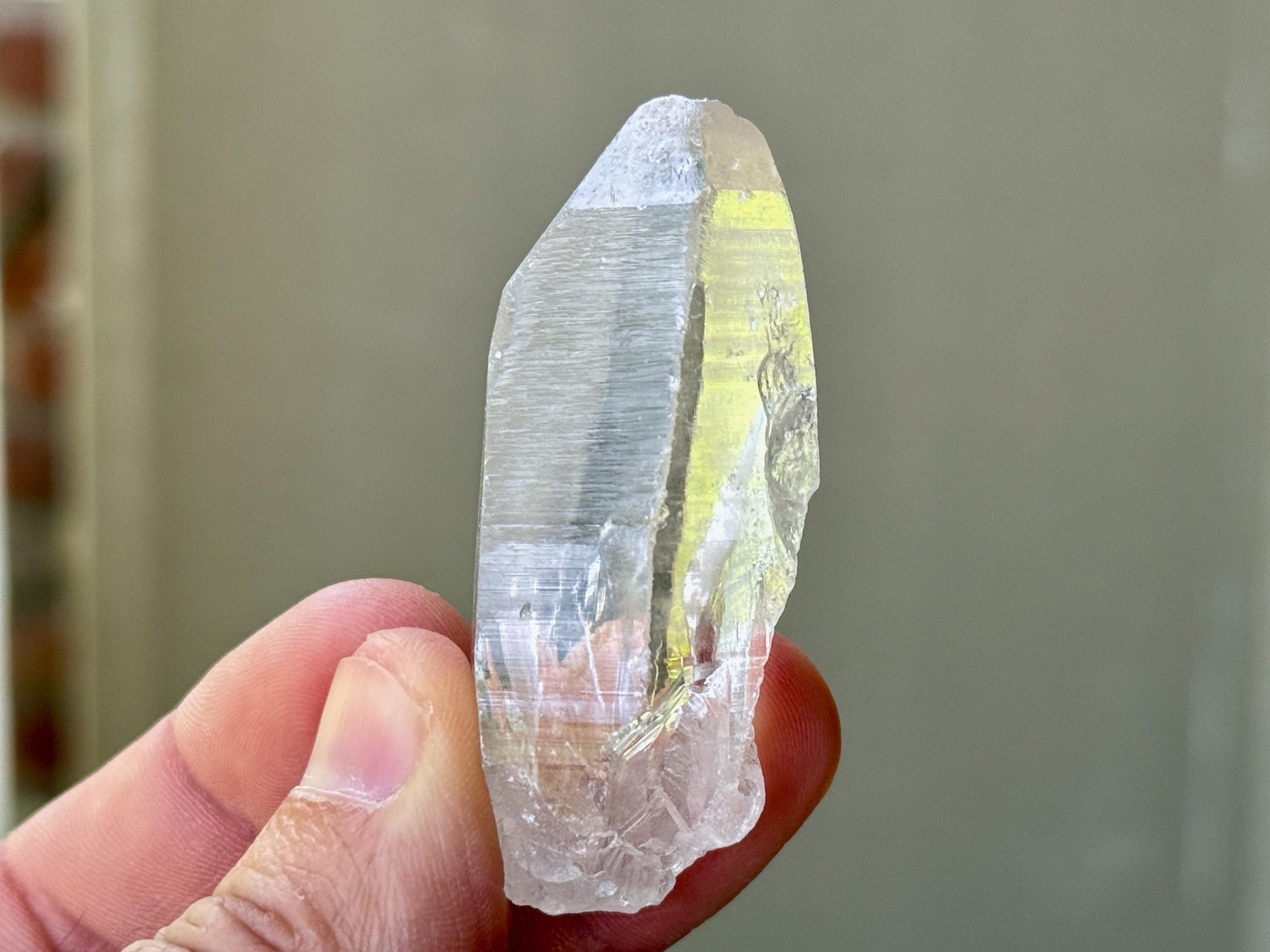 *Please note this crystal is clear and colorless. Any yellow hues in the photos are due to the natural sunlight and surrounding environment reflecting off the crystal.