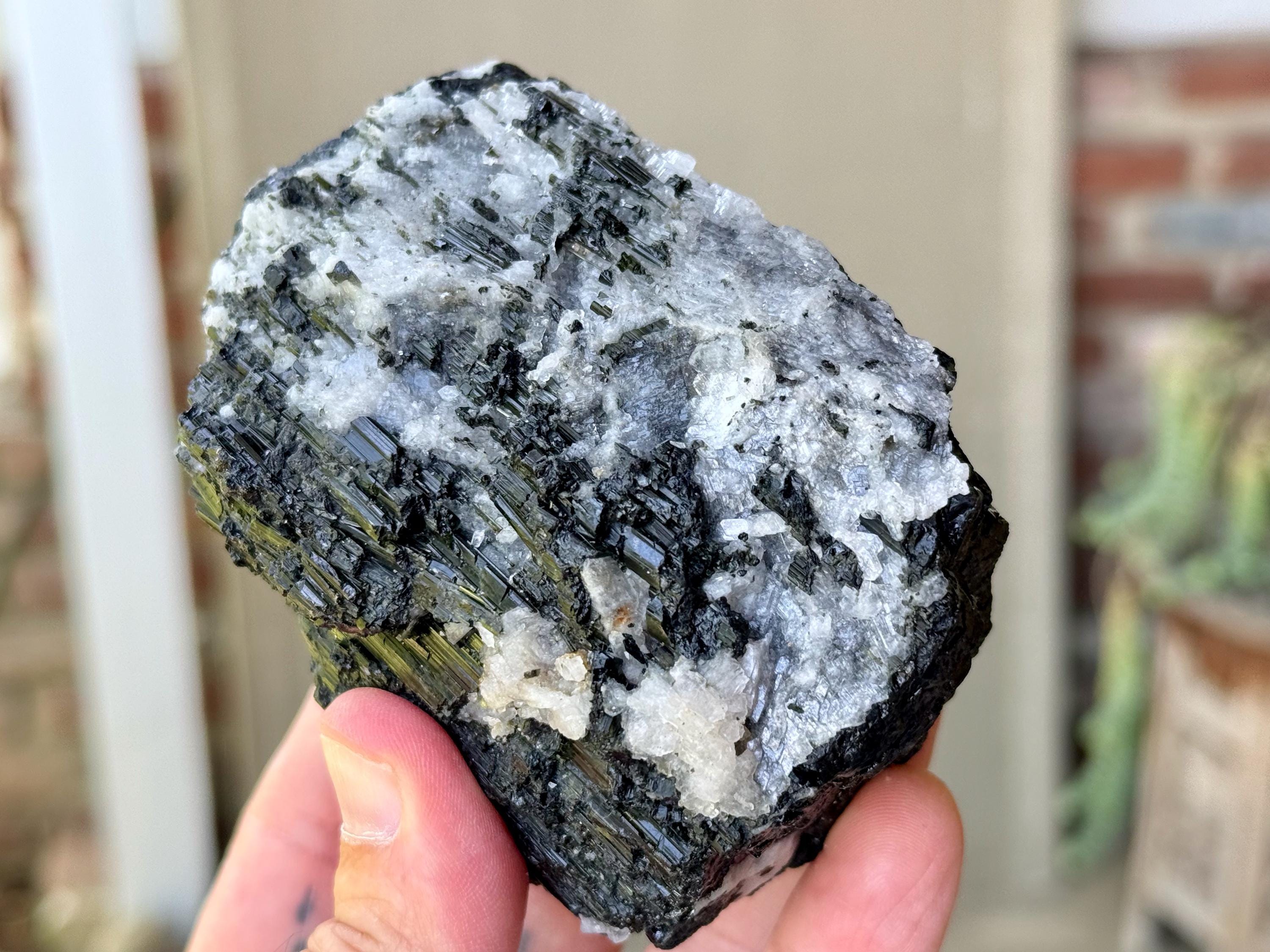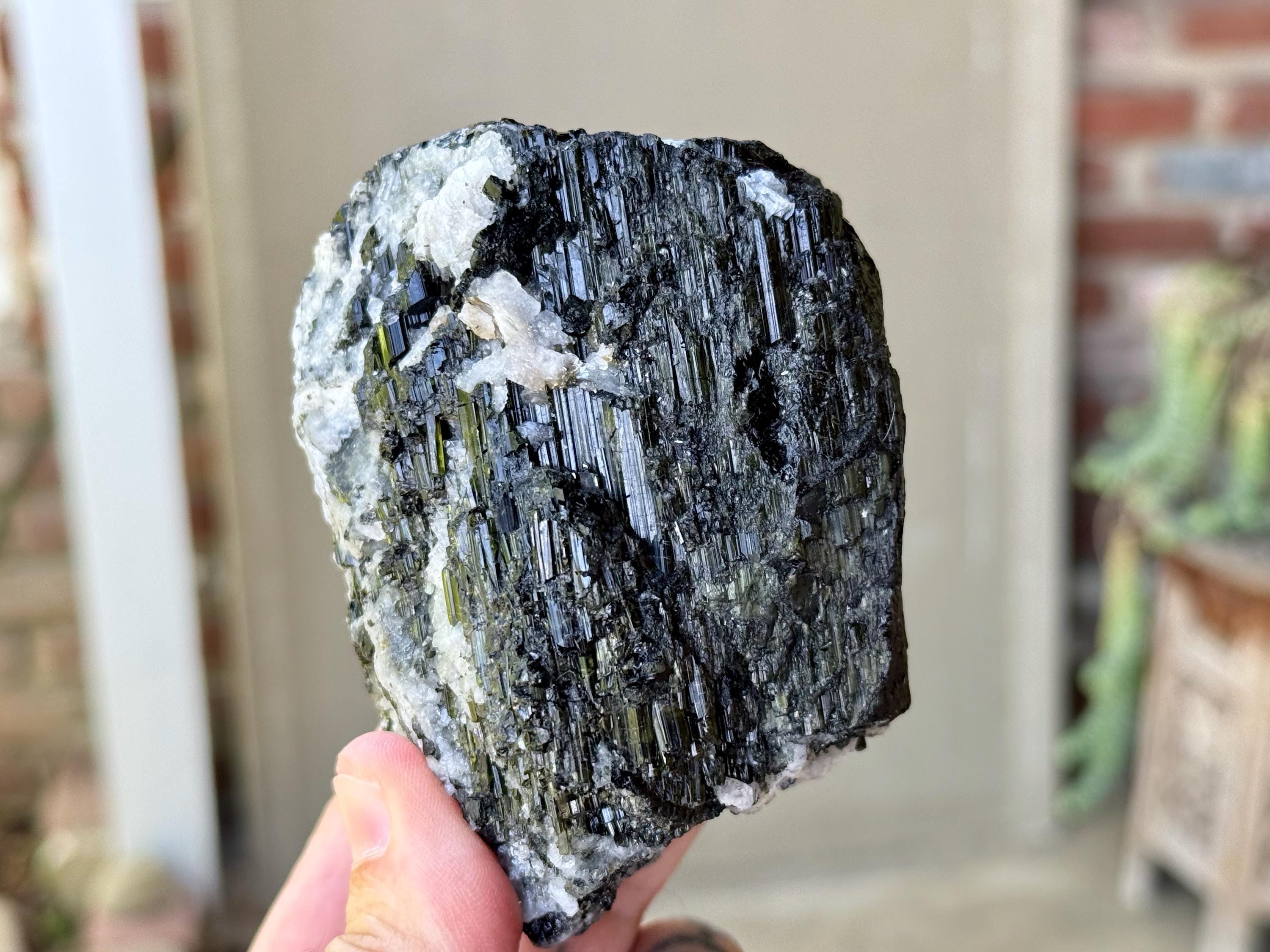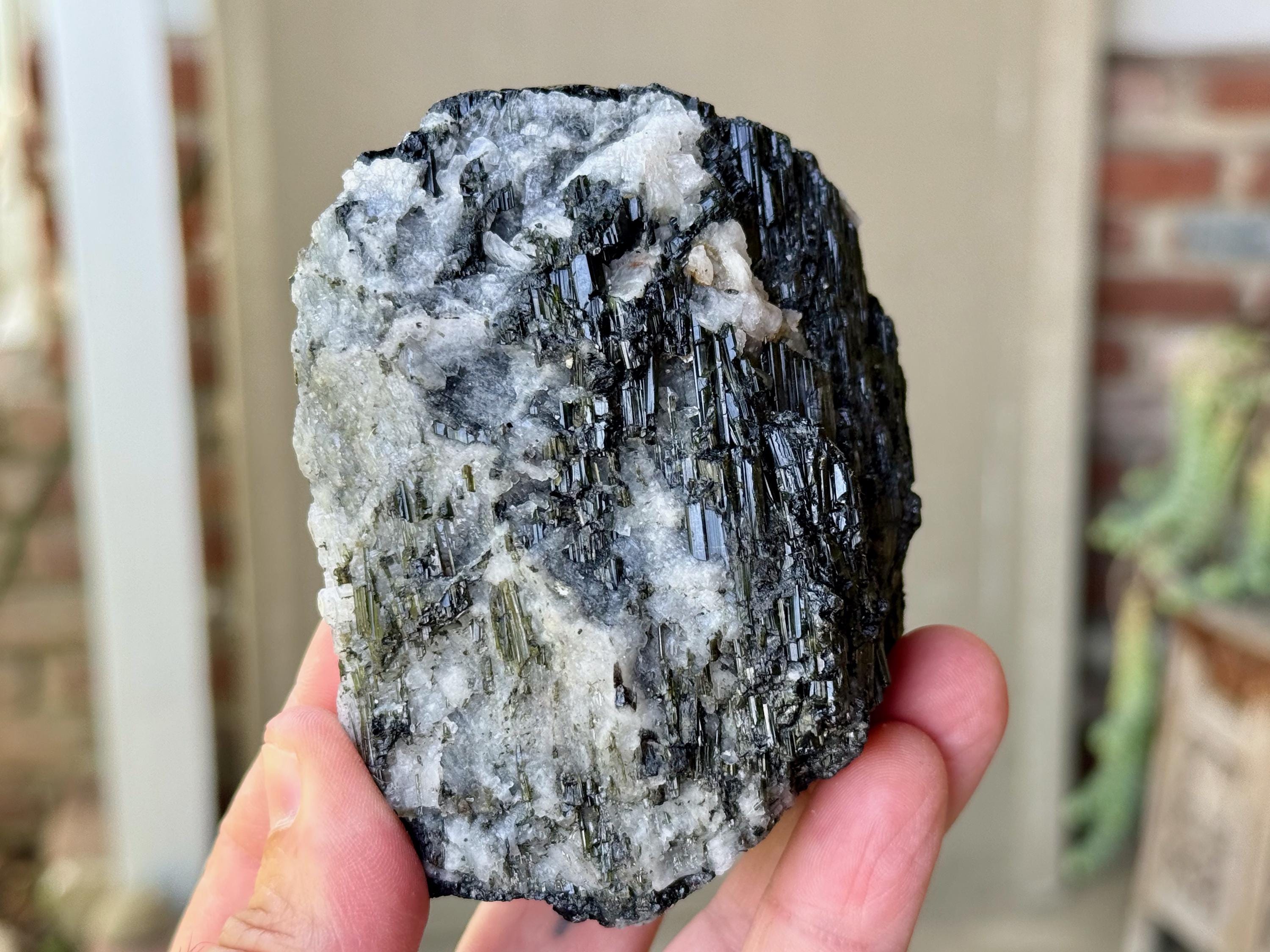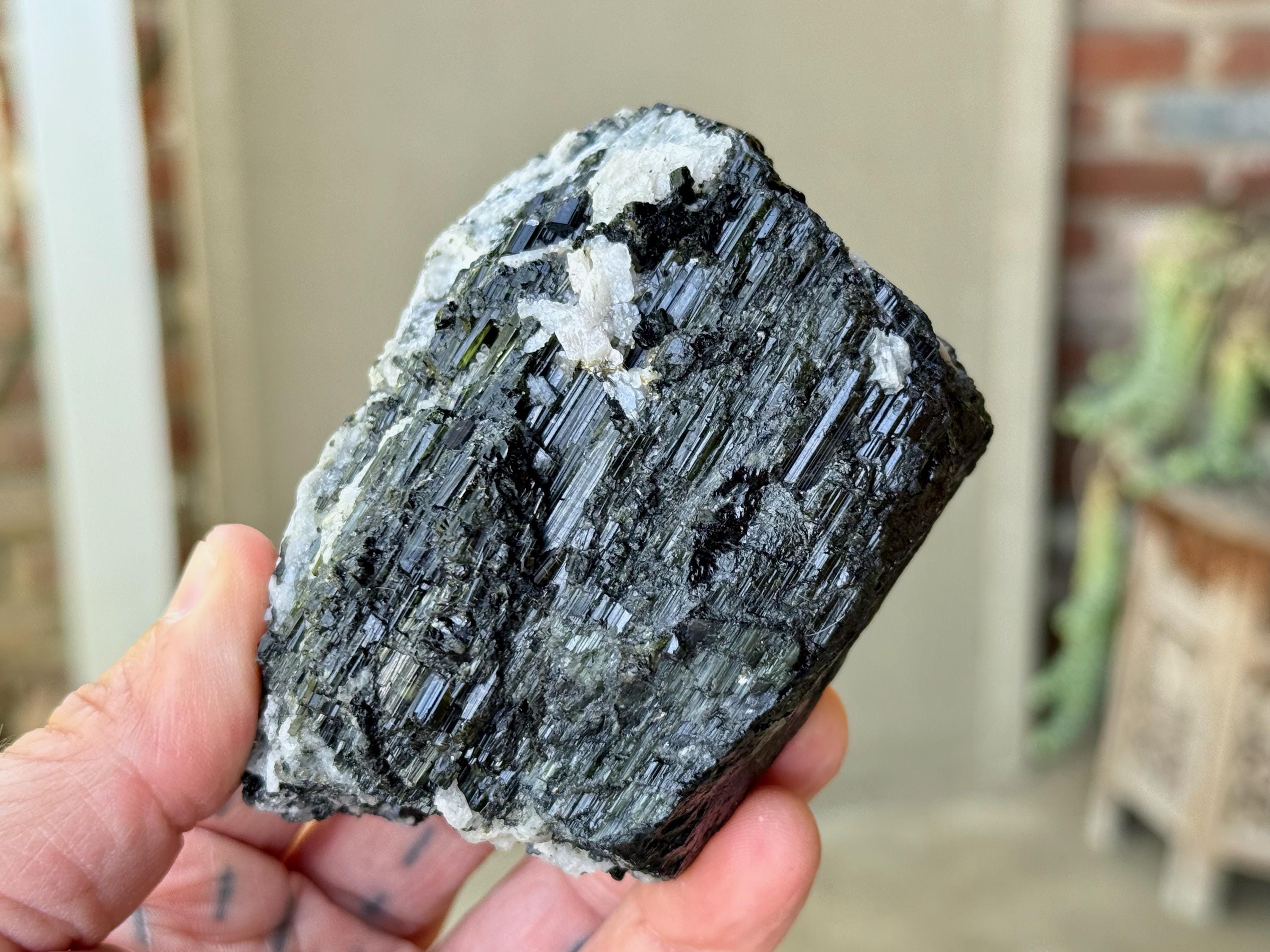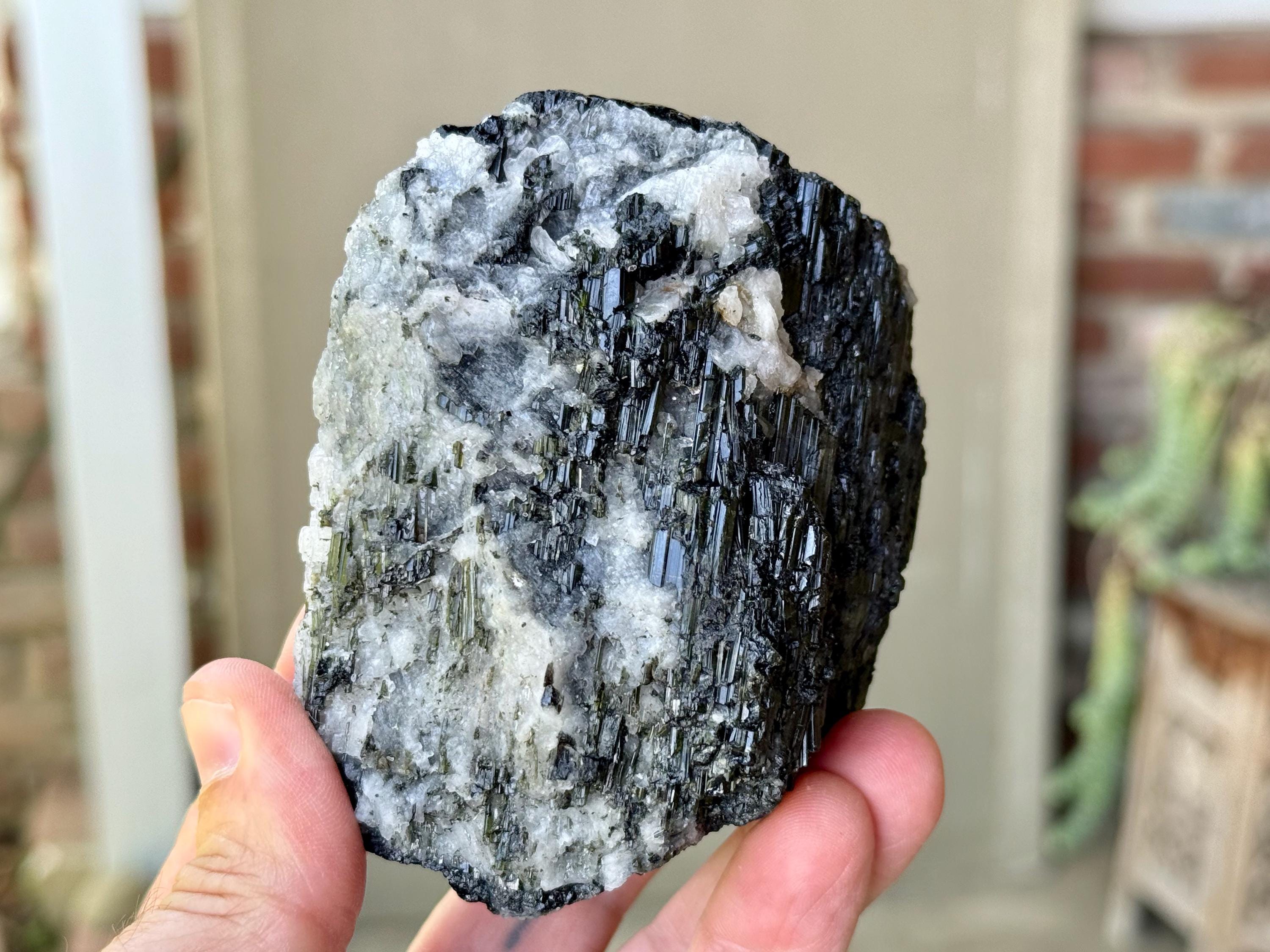 This natural Black Tourmaline with White Albite comes from a recent find in Coronel Murta, Minas Gerais, Brazil. Black Tourmaline is one of the most powerful protection and grounding stones, as it has the energetic capacity to transmute negative (heavy) energy into positive.