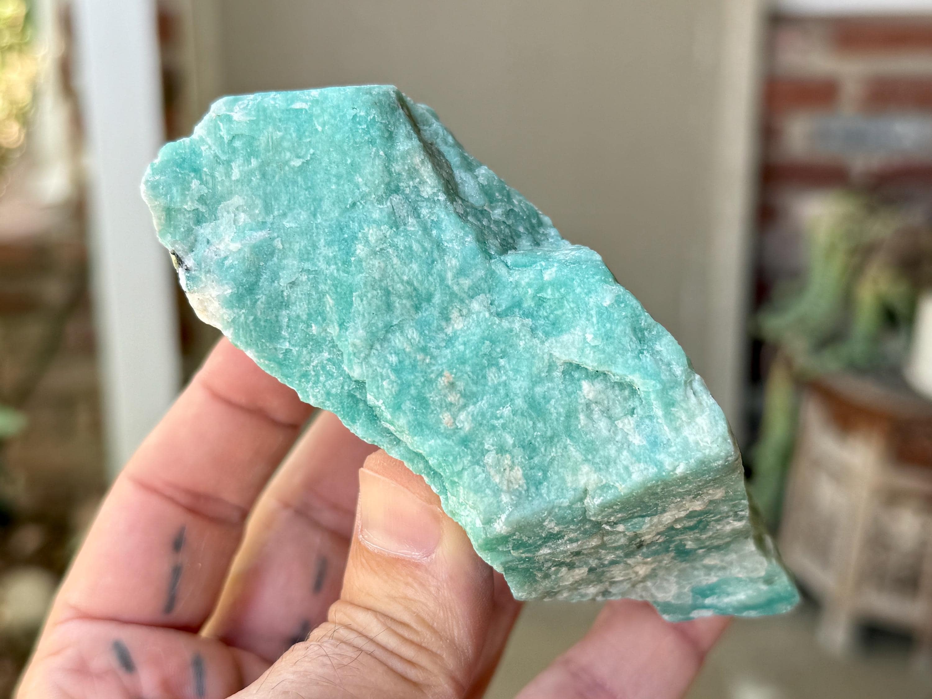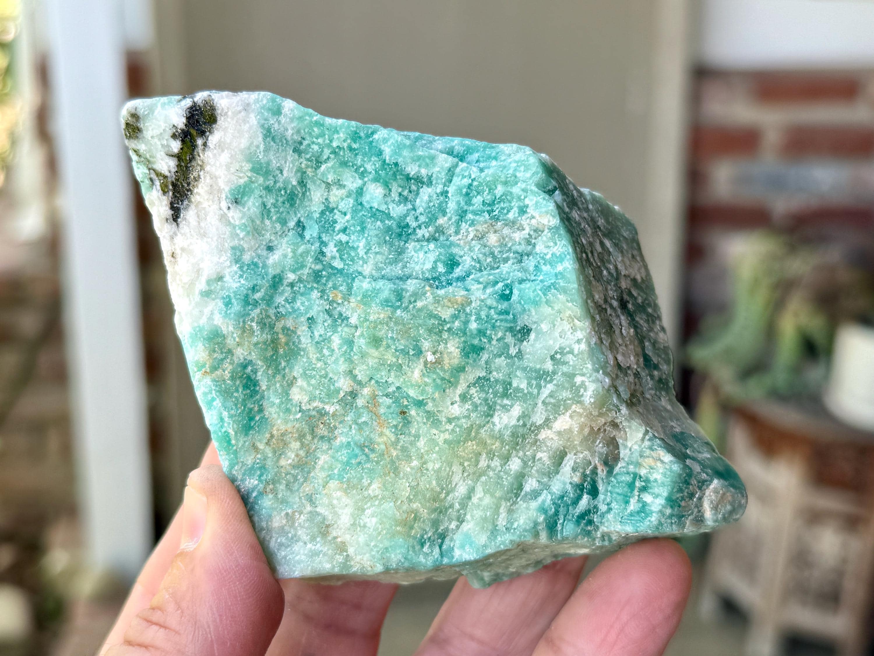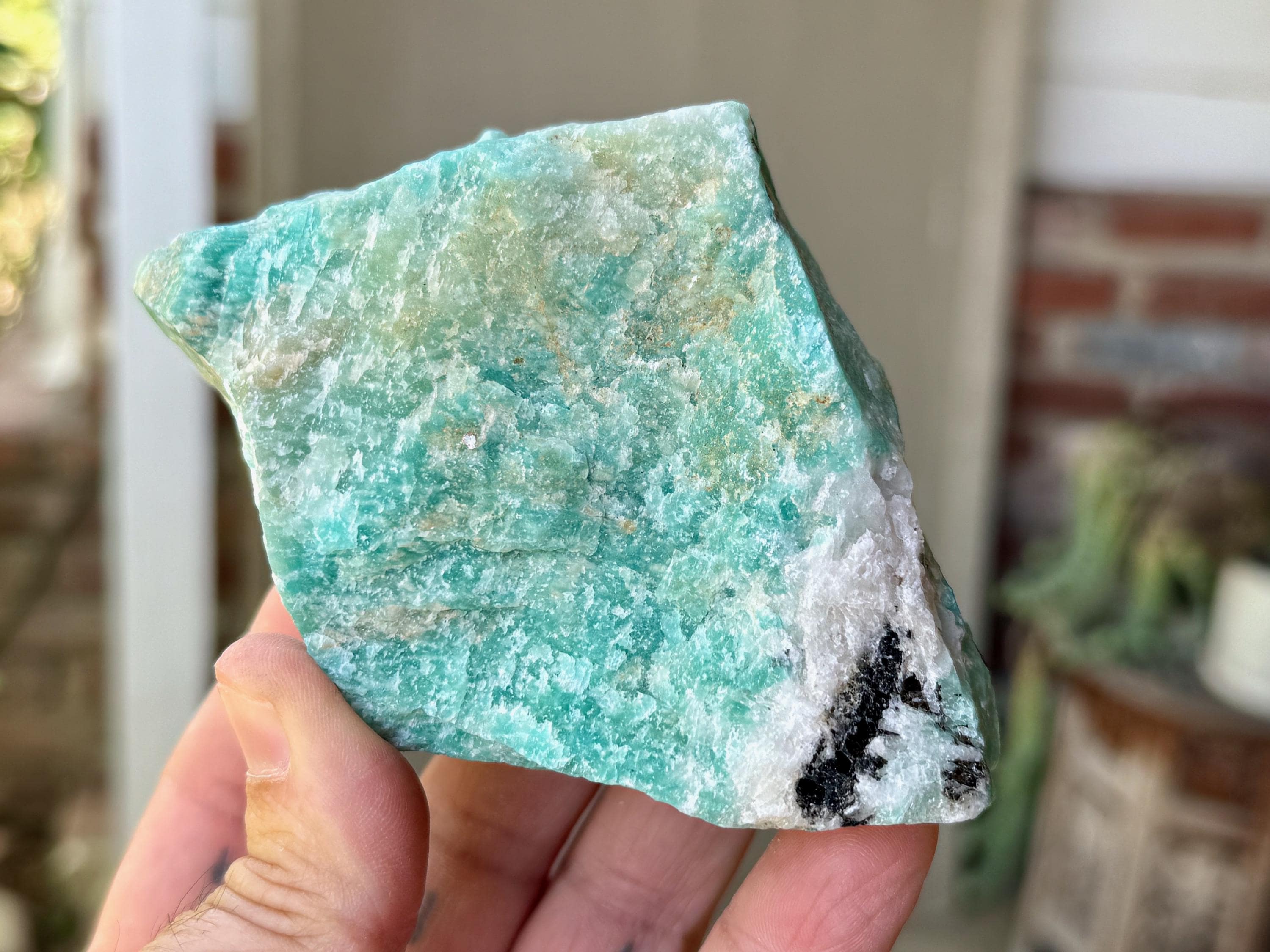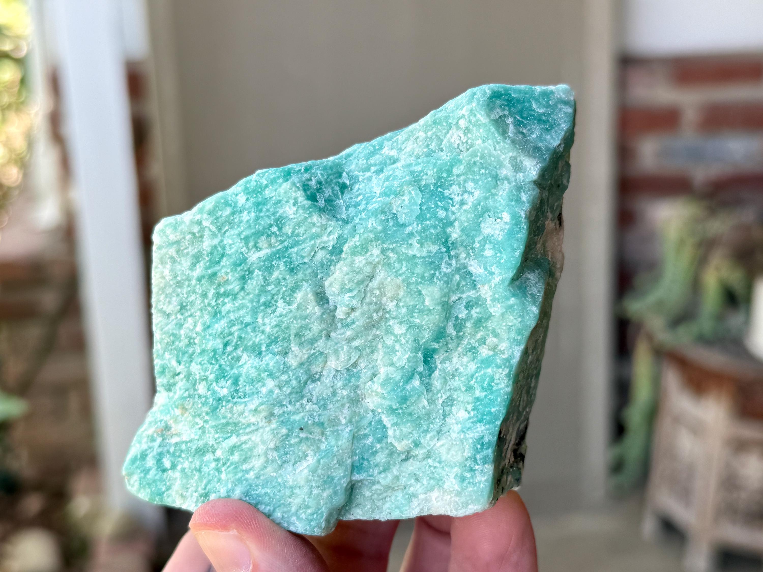 This natural Amazonite comes from a recent find in Bahia, Brazil.