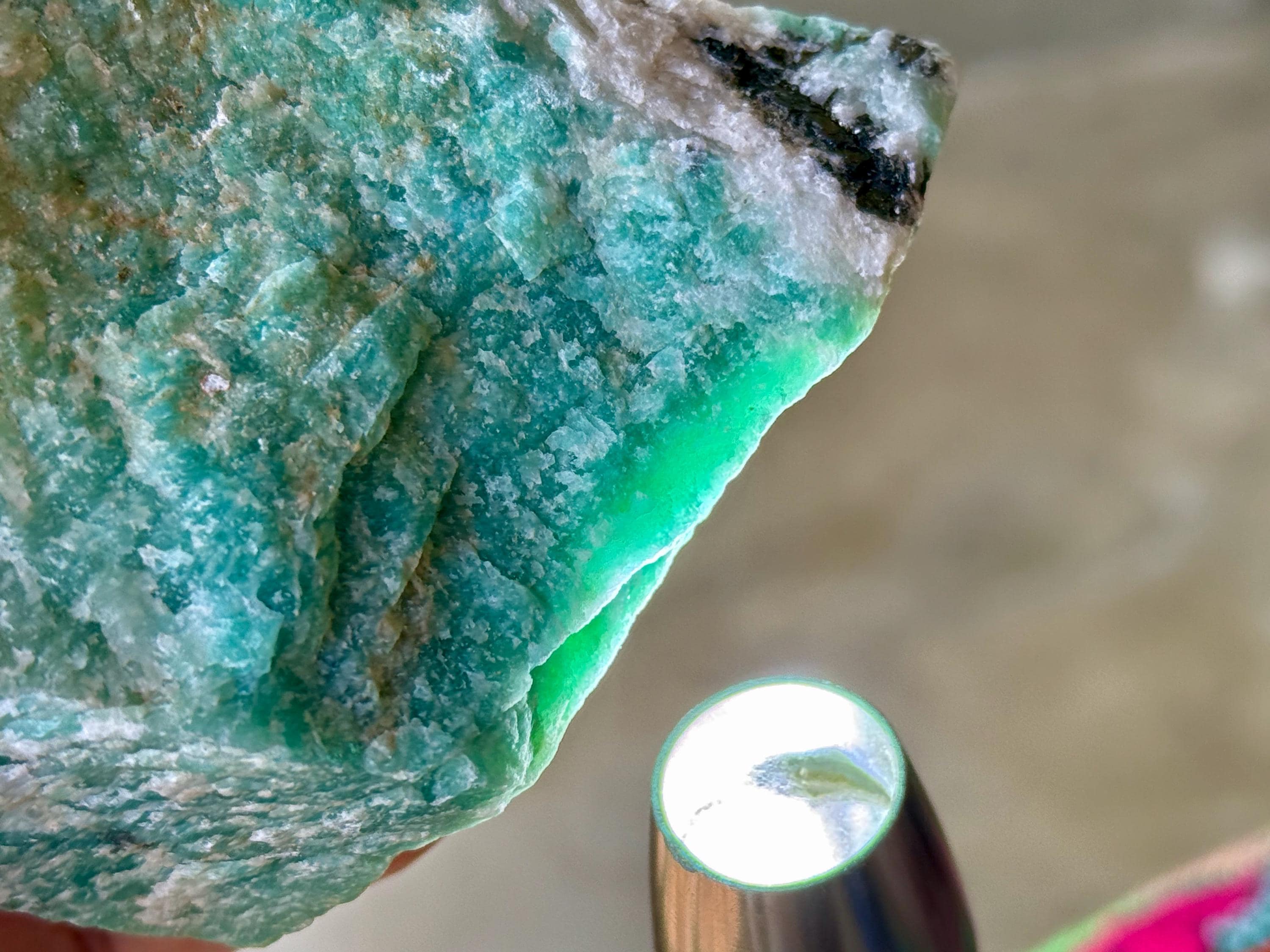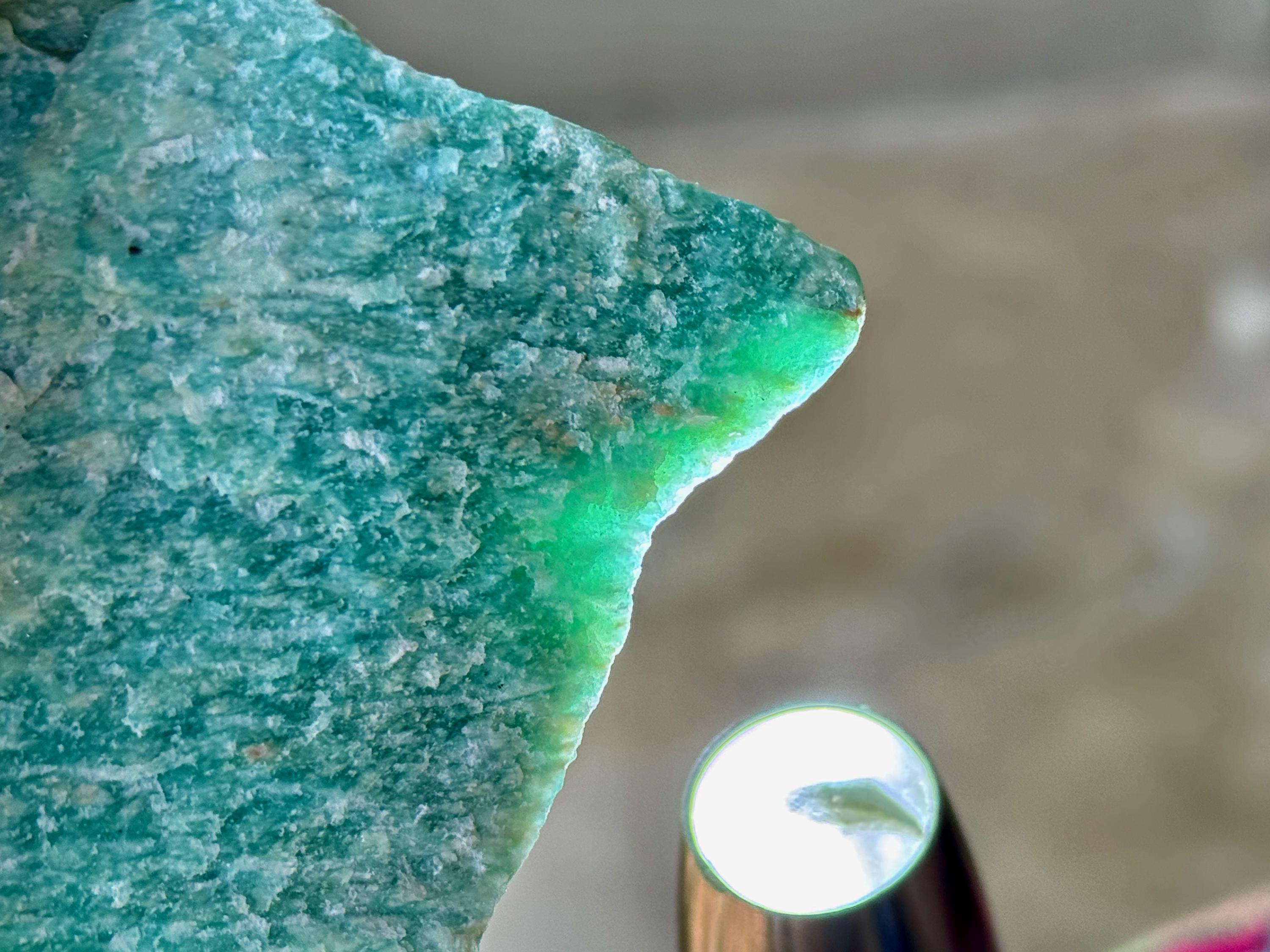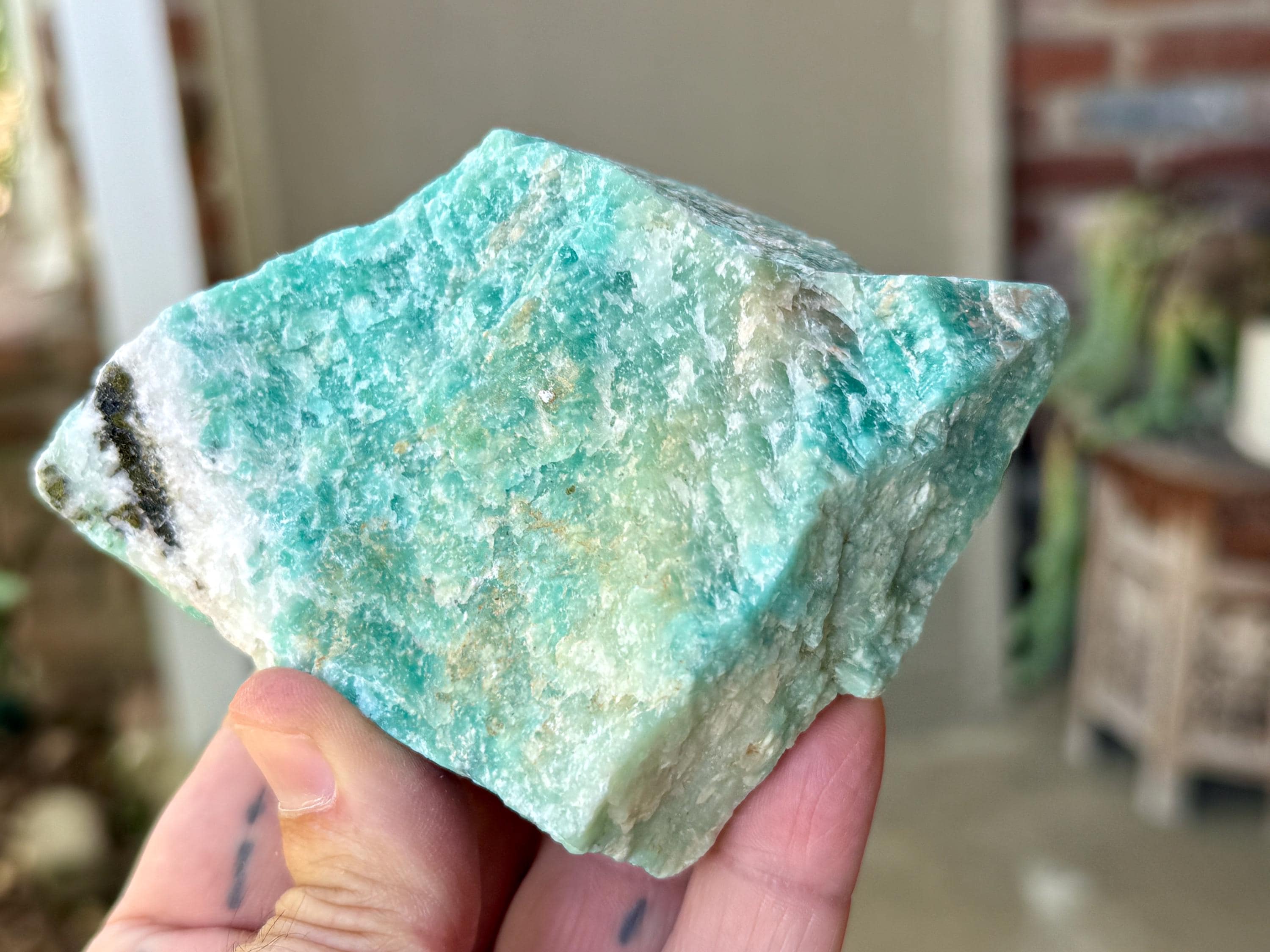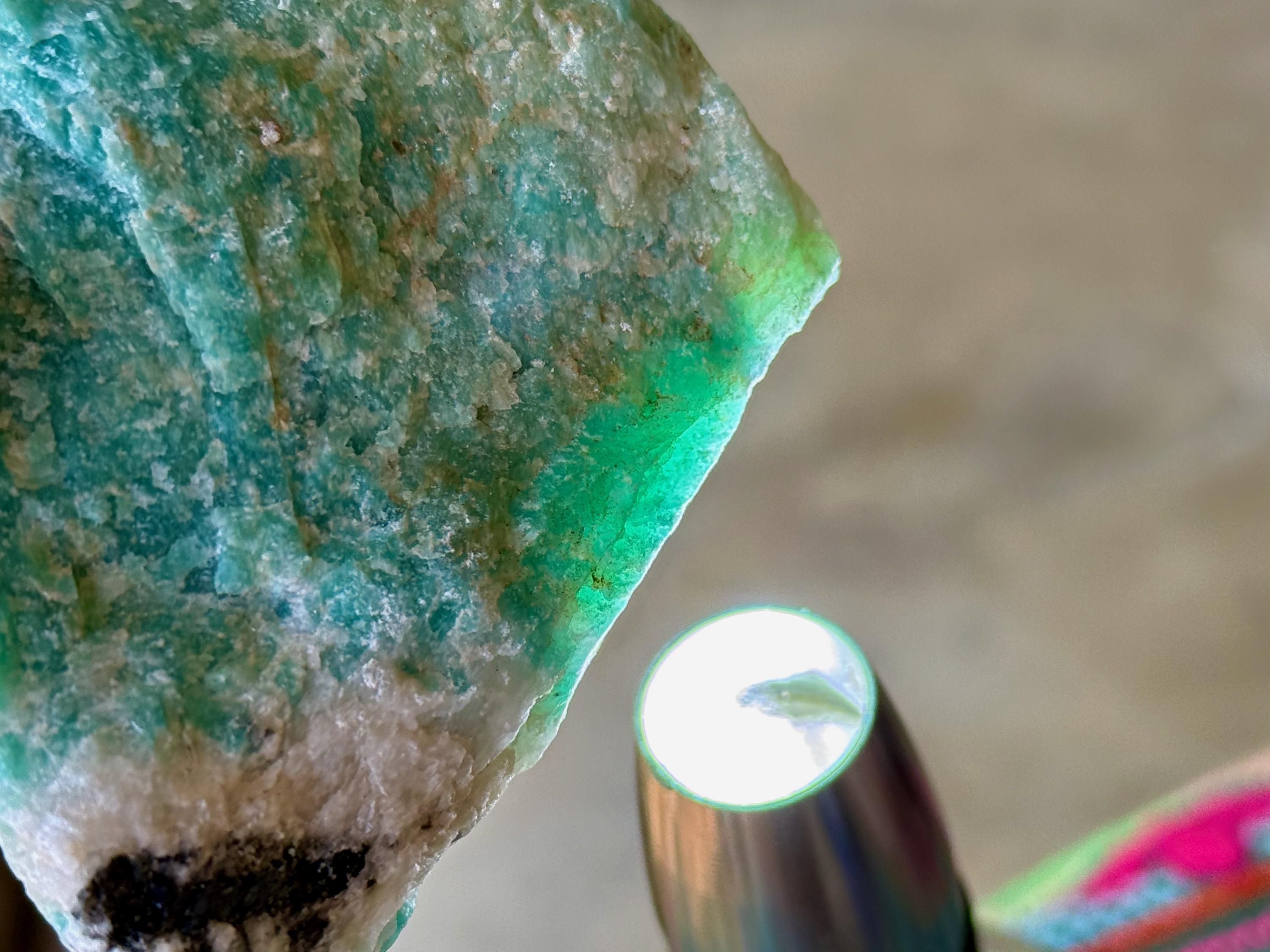 This natural Amazonite comes from a recent find in Bahia, Brazil.