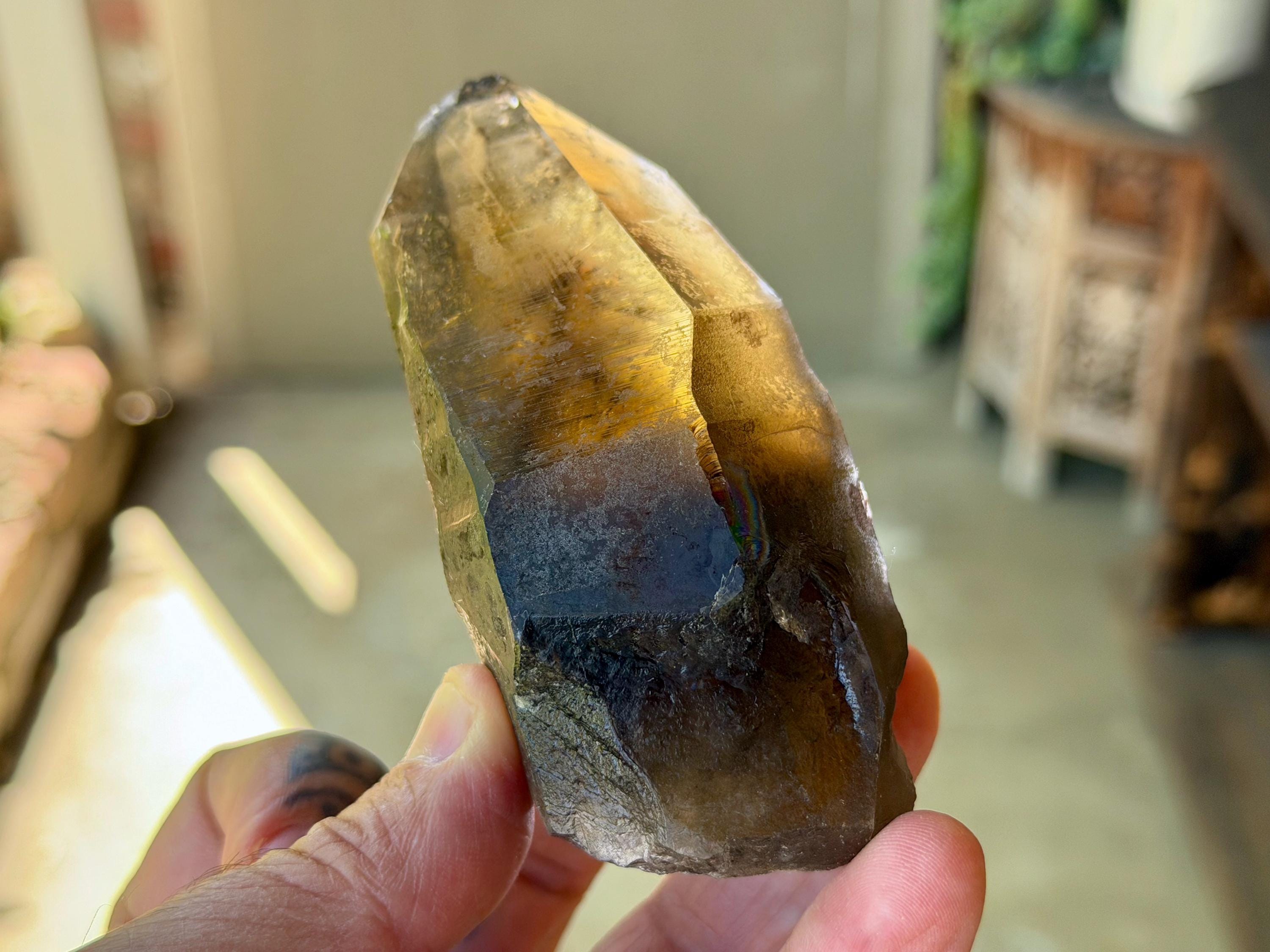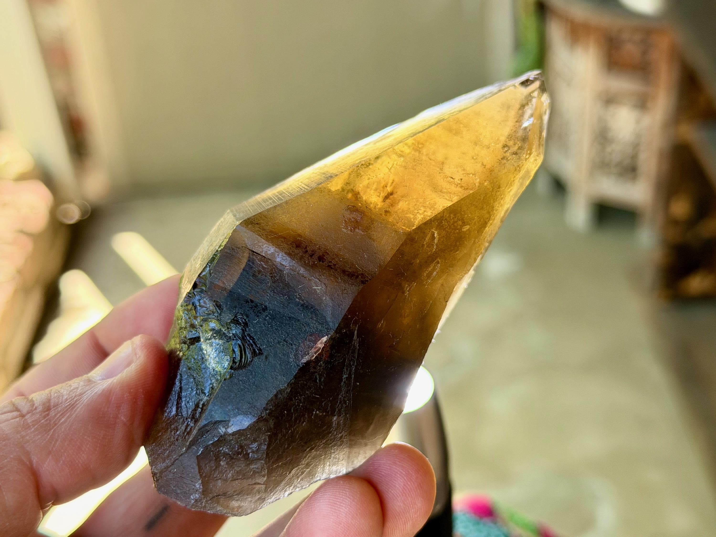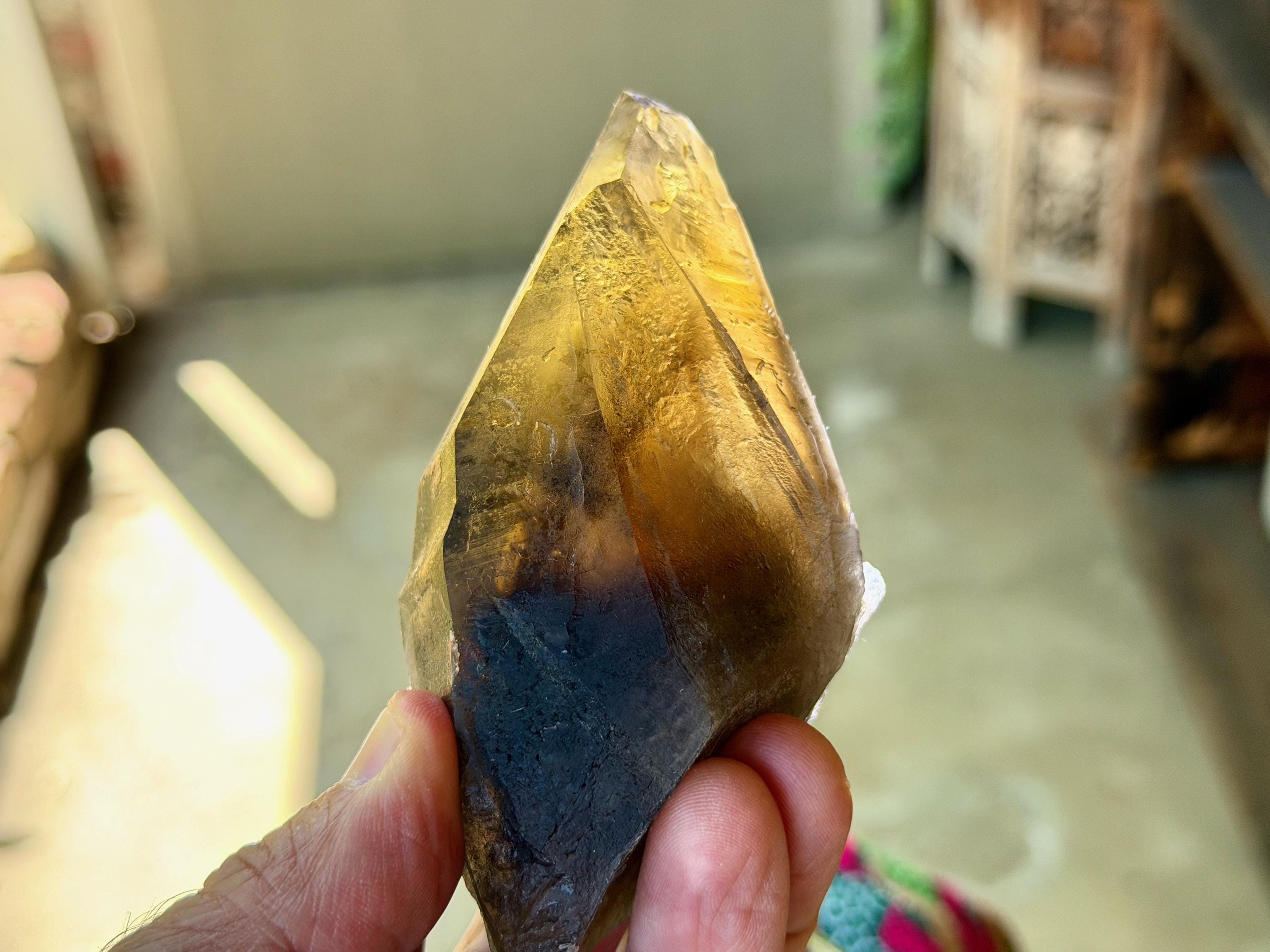 This natural Pele’s Dream Lemurian Citrine comes from a recent (2025) find in Cristalina, Goiás, Brazil.