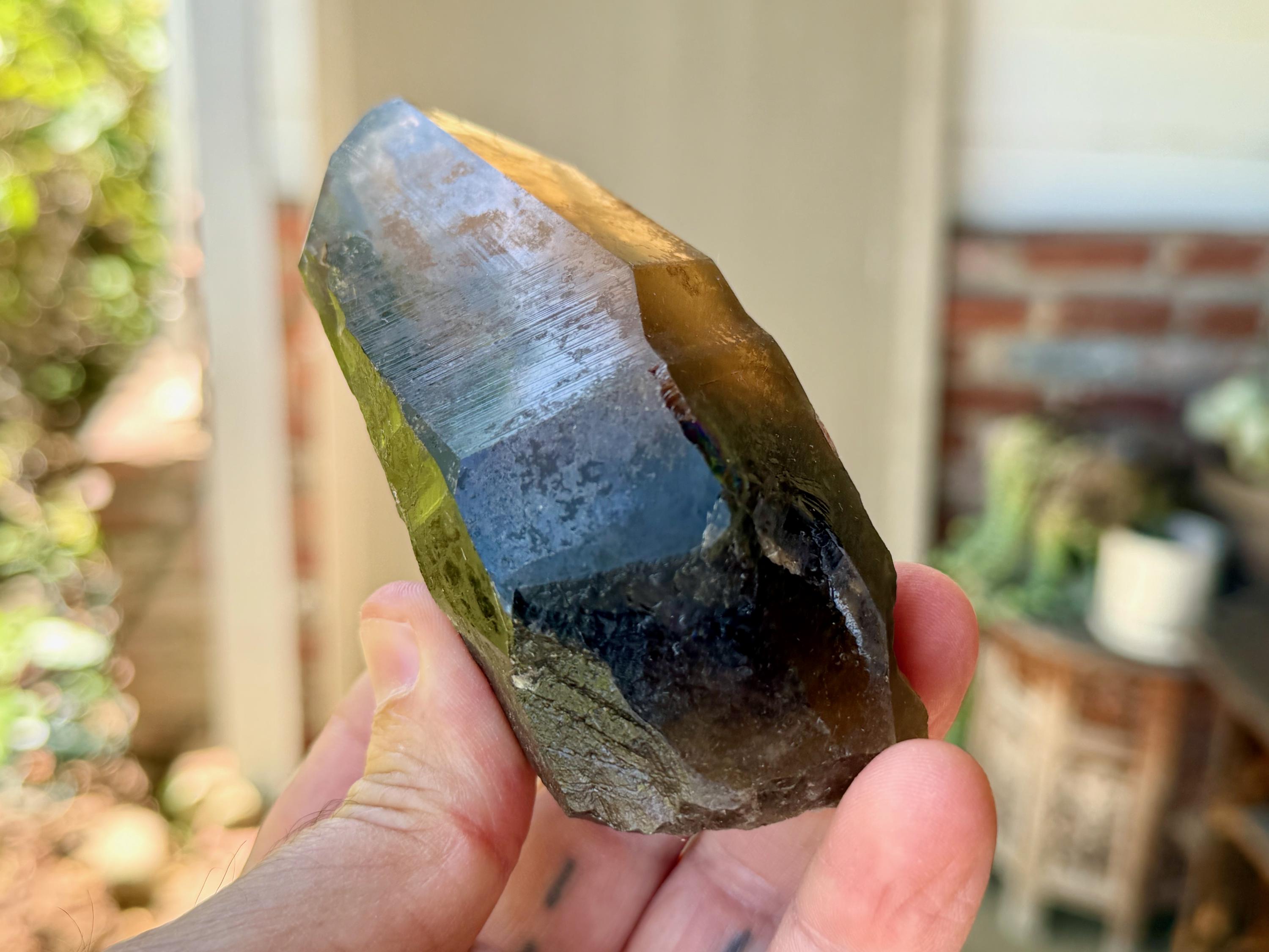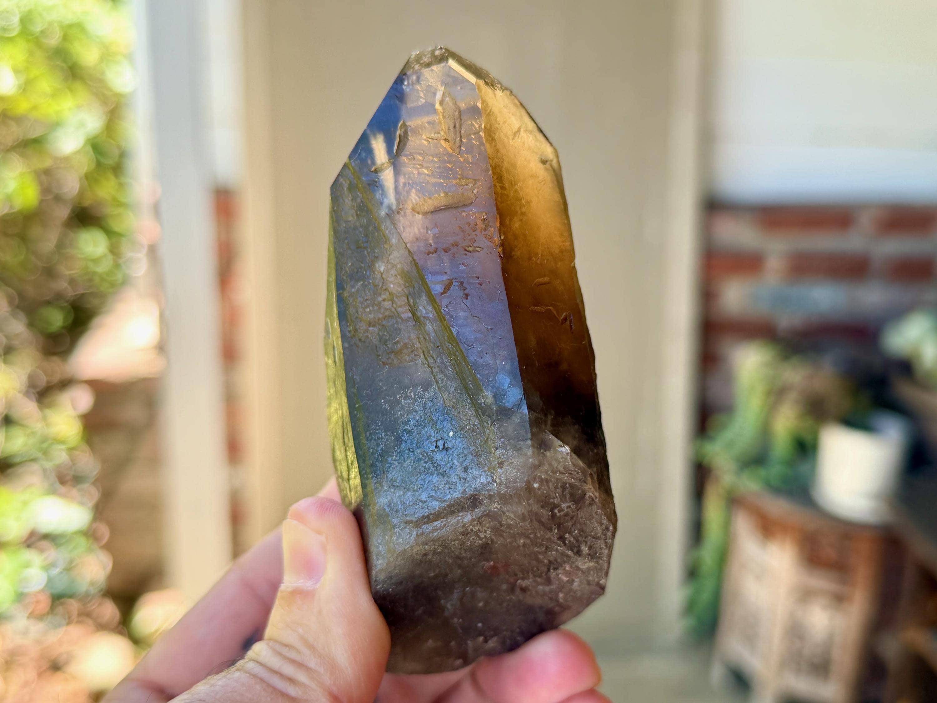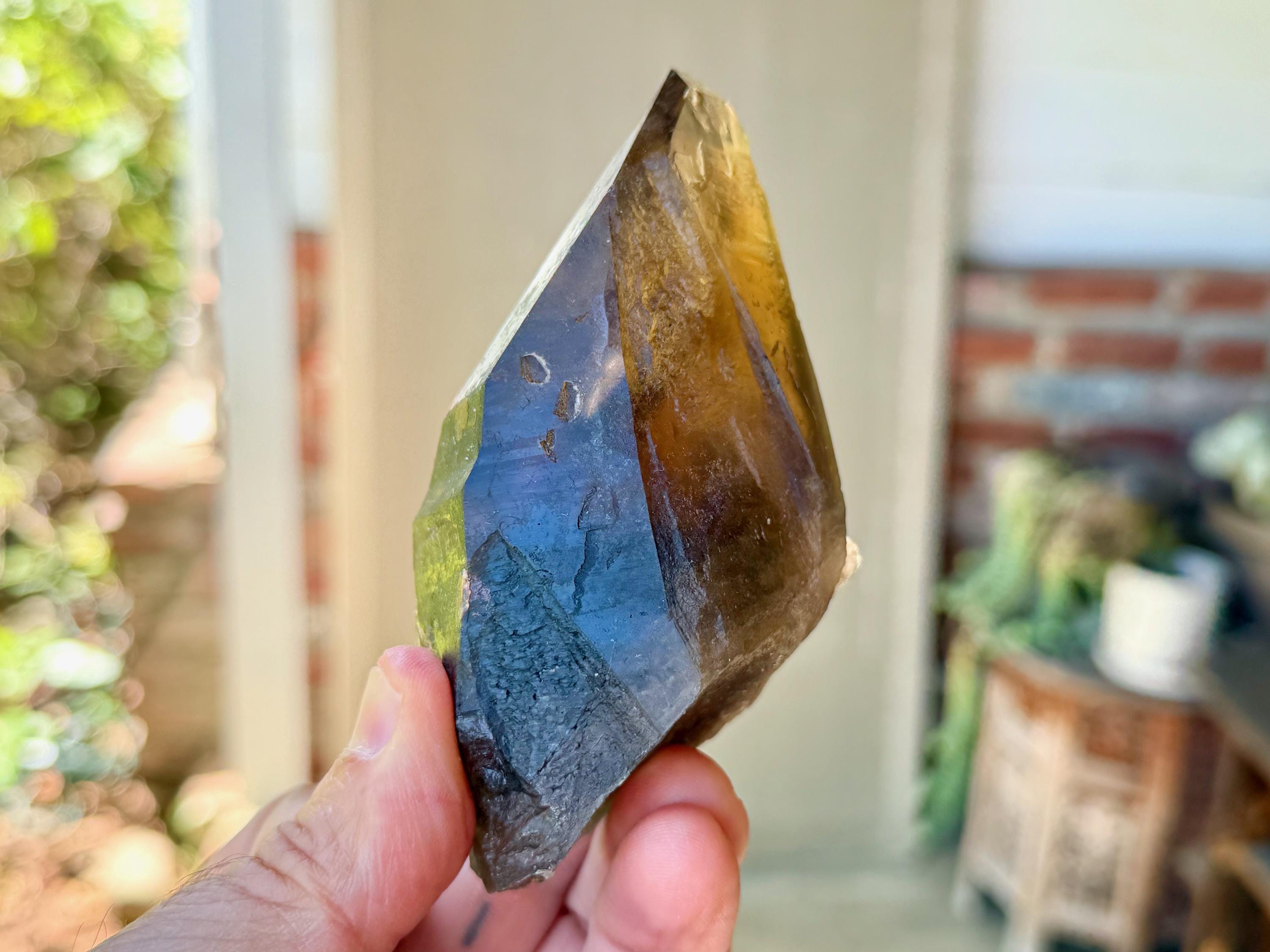 This natural Pele’s Dream Lemurian Citrine comes from a recent (2025) find in Cristalina, Goiás, Brazil.
