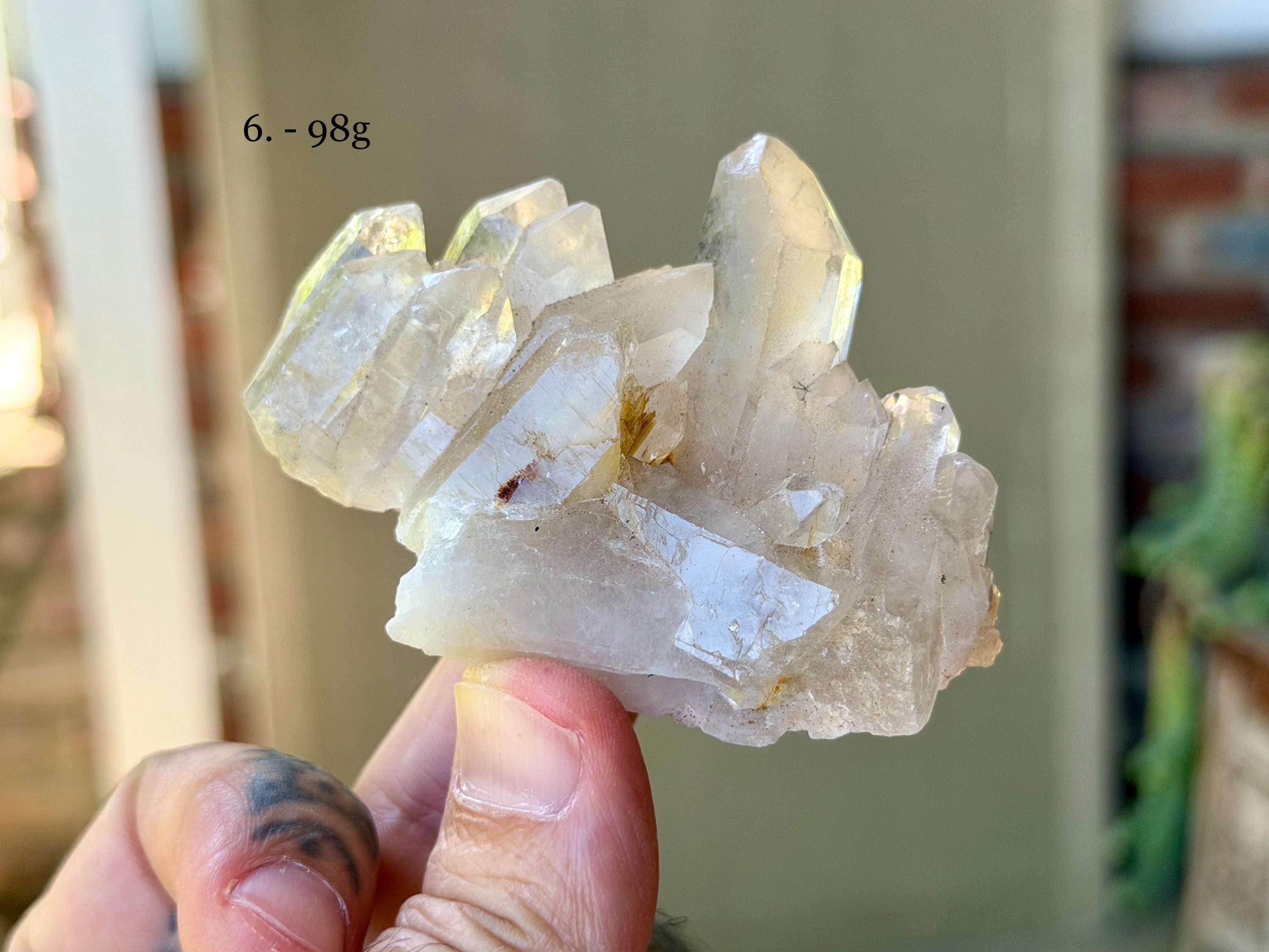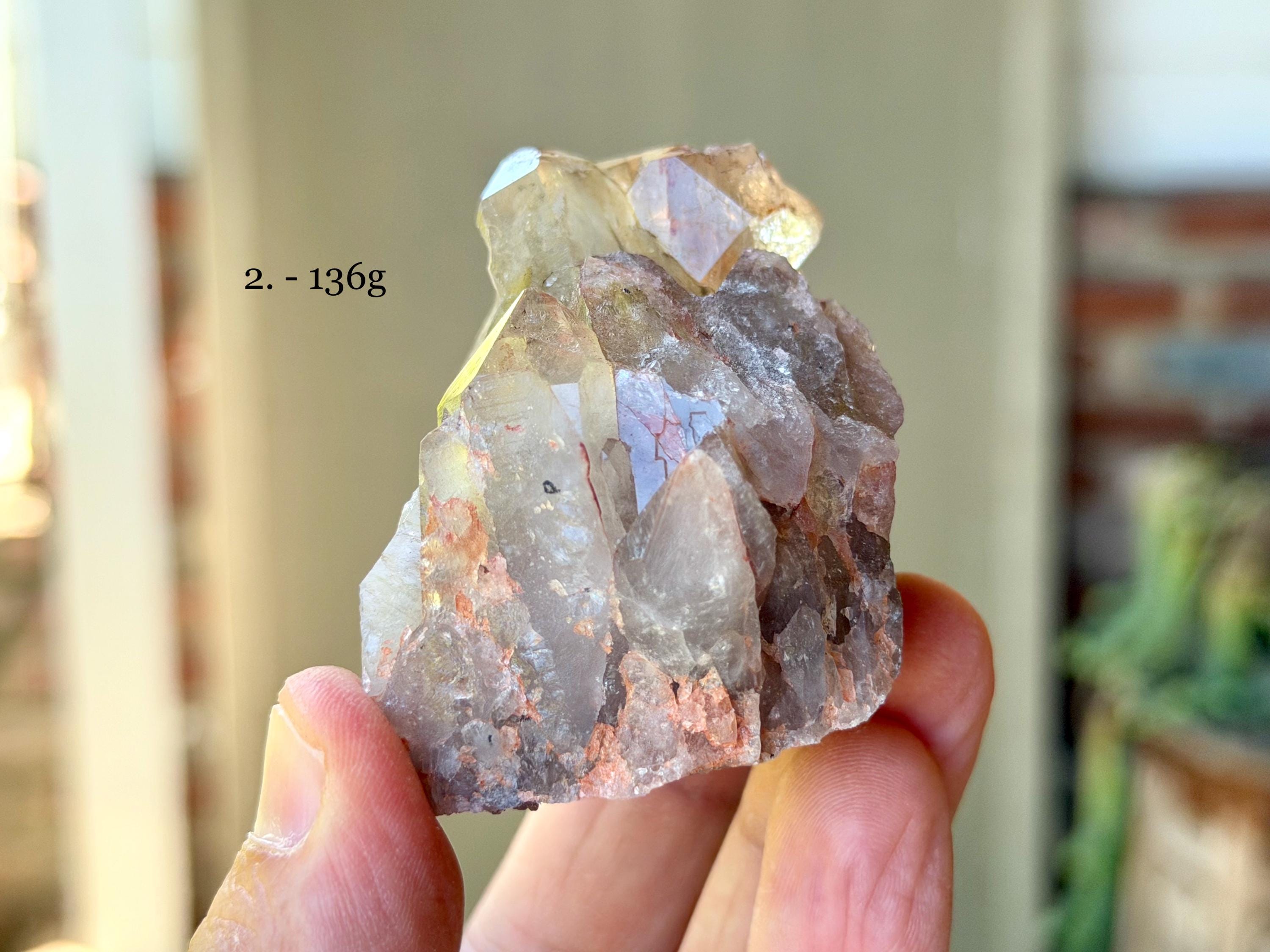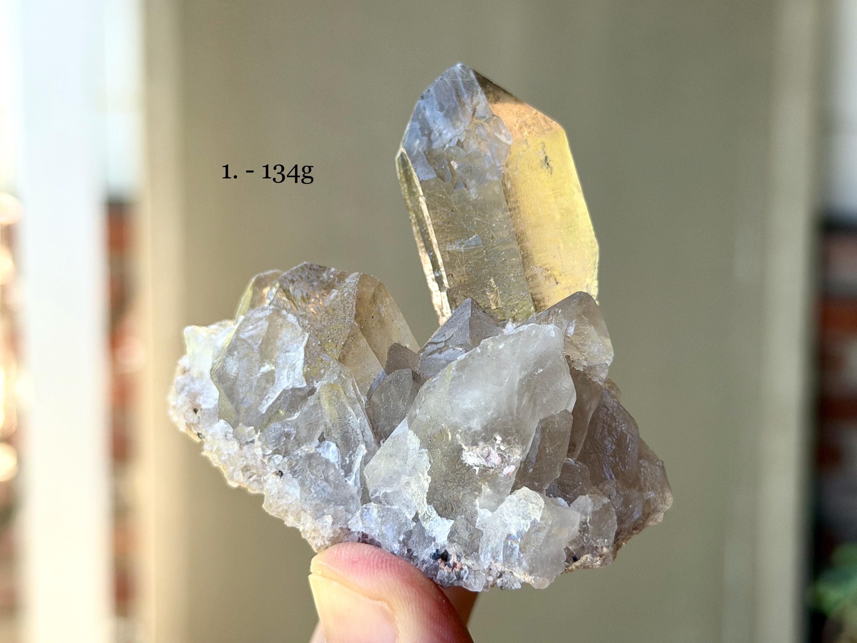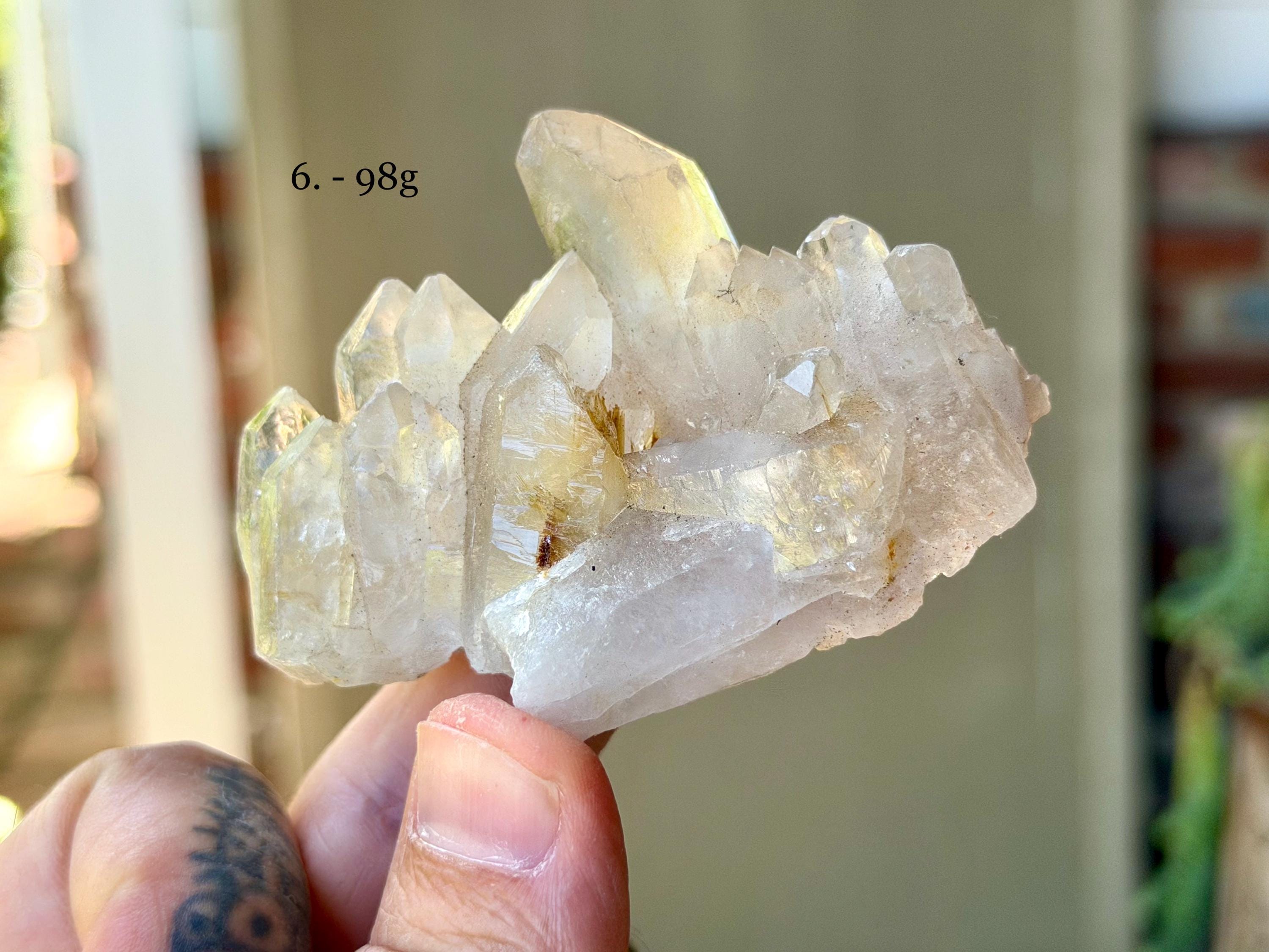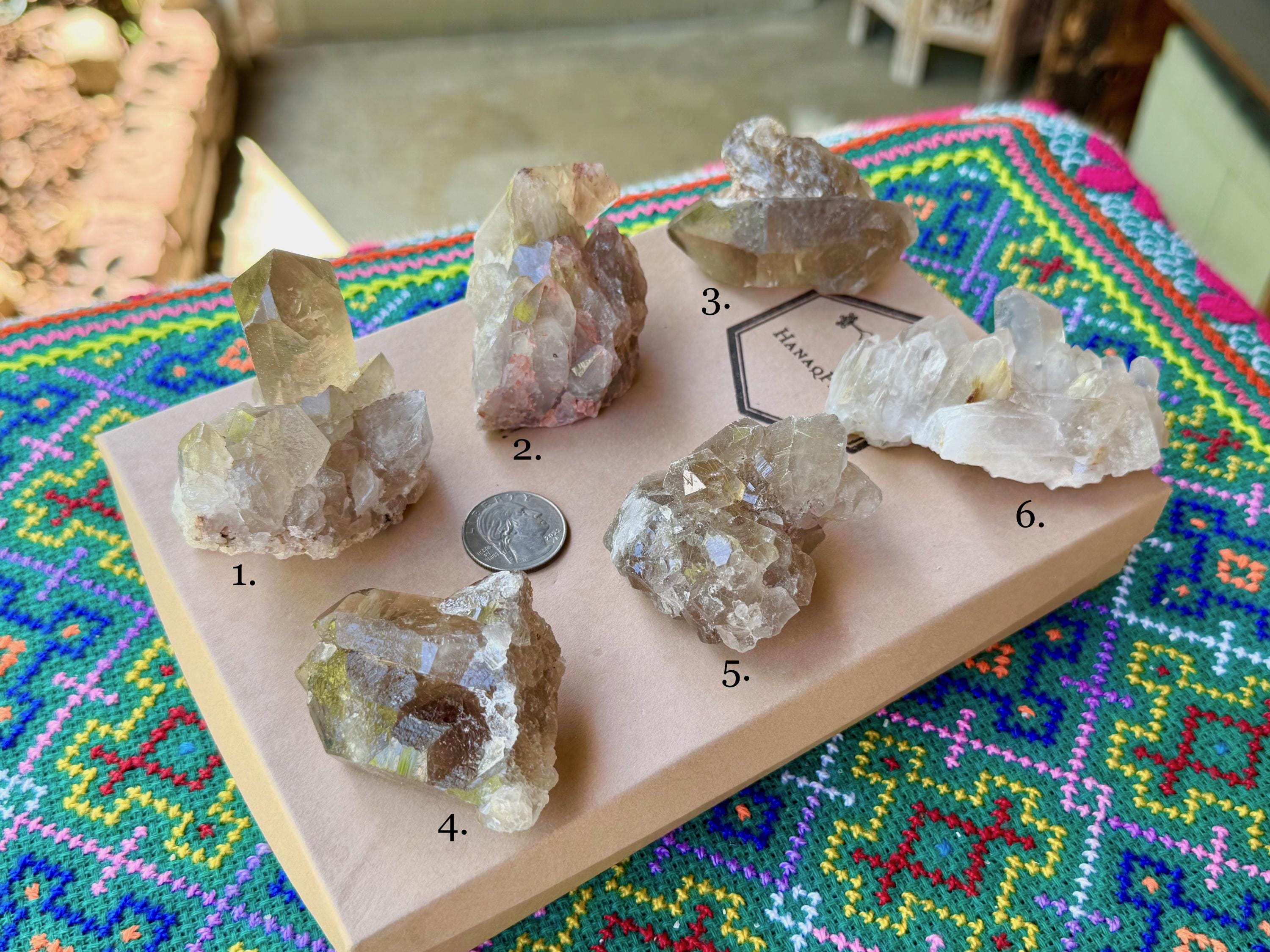 Simply select the crystal(s) of your preference from the dropdown menu (#1-6). The crystals are numbered in Photos 1-2, as well as in each subsequent photo. Each photo in the dropdown correlates to the actual crystal purchased. The weights for each are noted in the photos.
