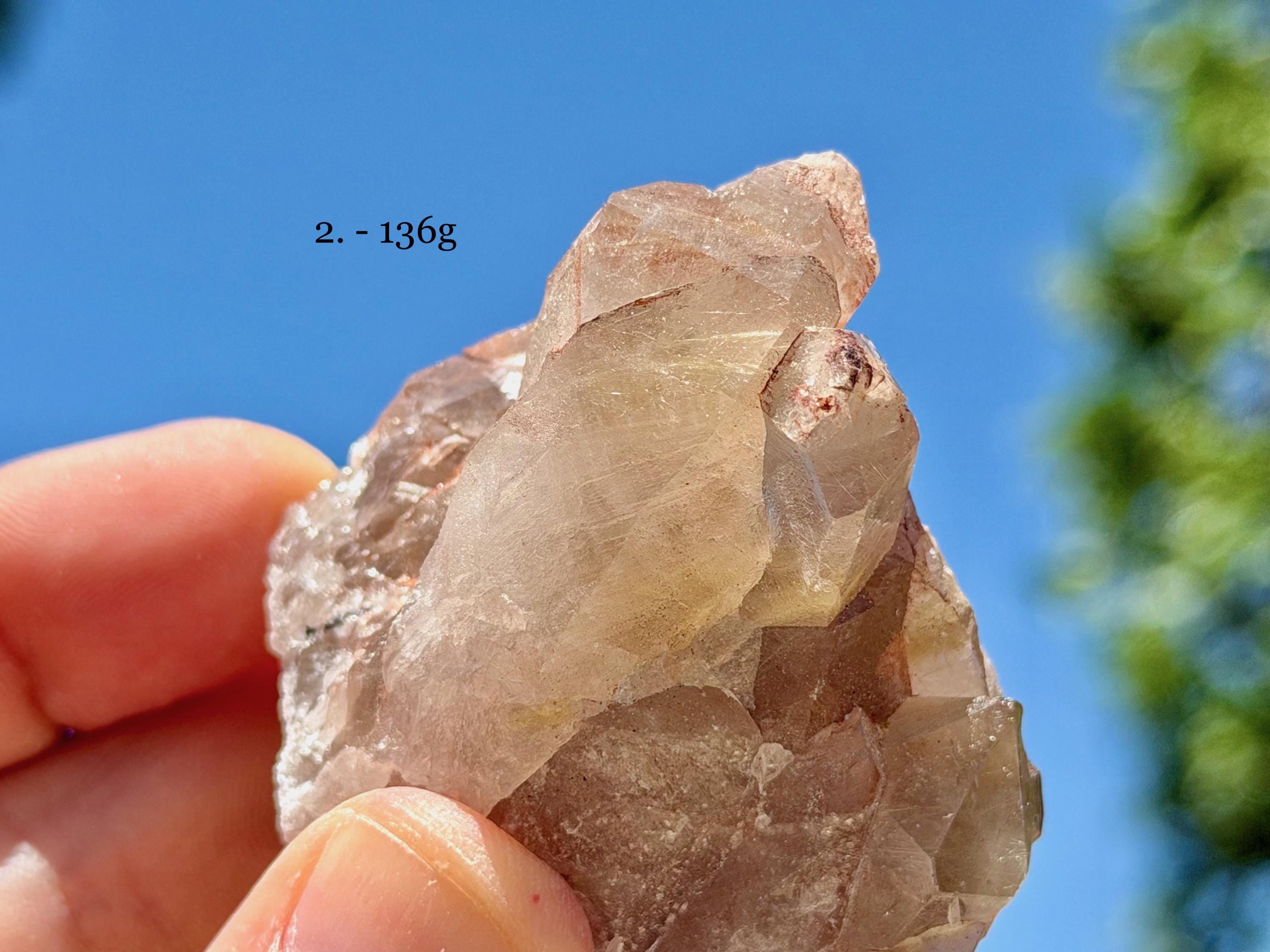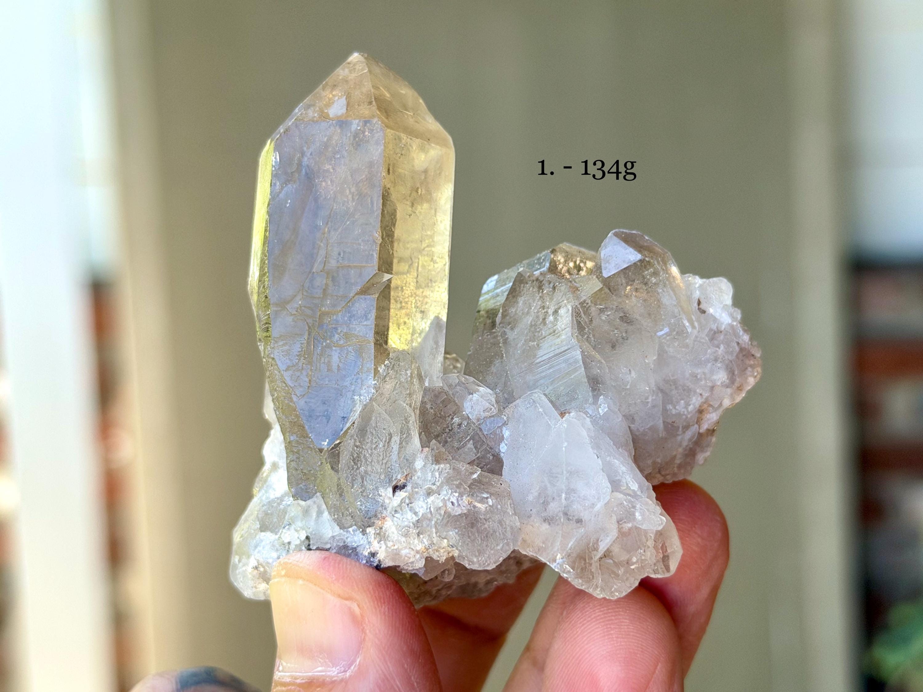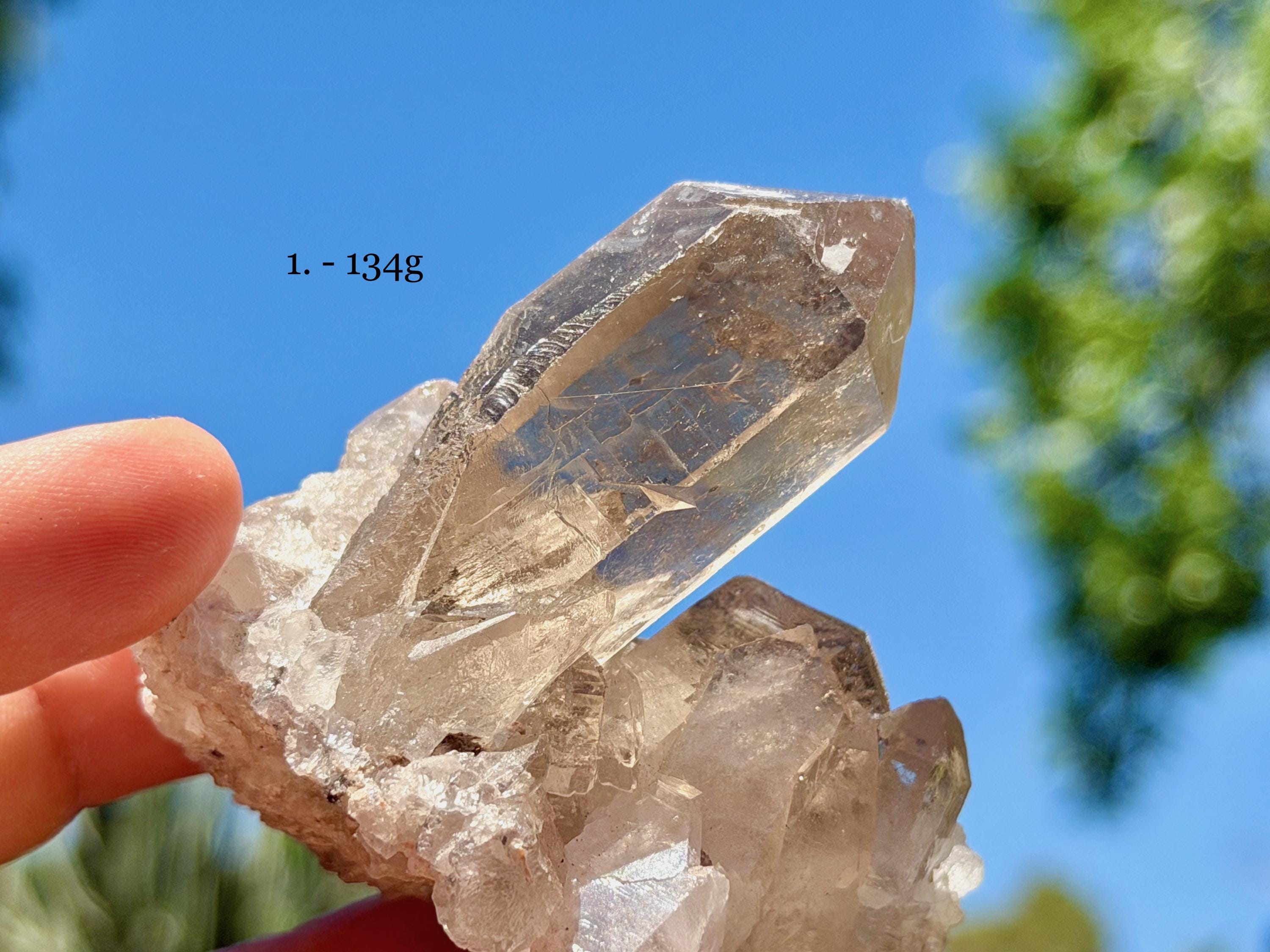 Each crystal is between 2" - 2.5" (5 cm - 7 cm) tall and weighs between 76g - 136g.