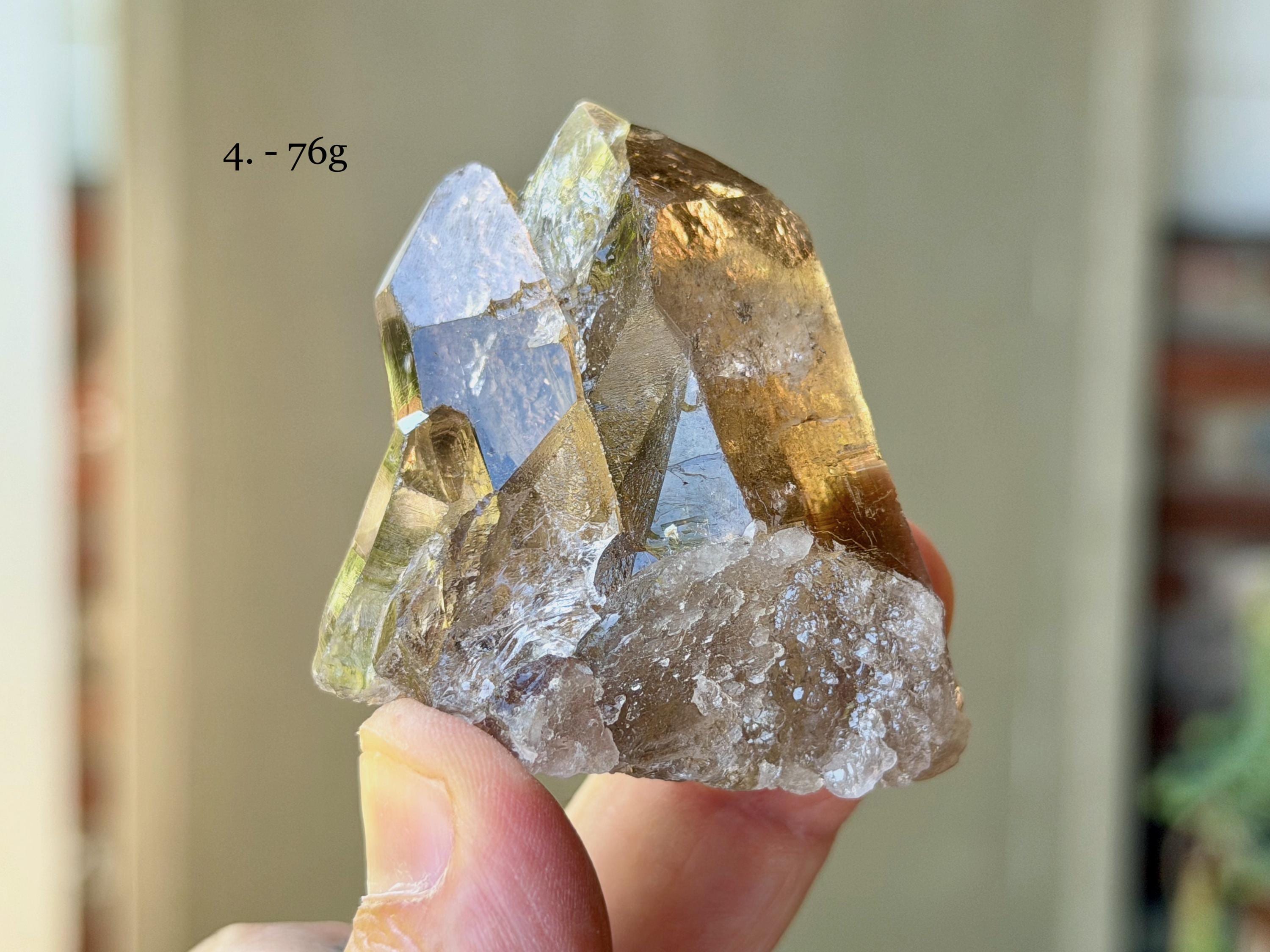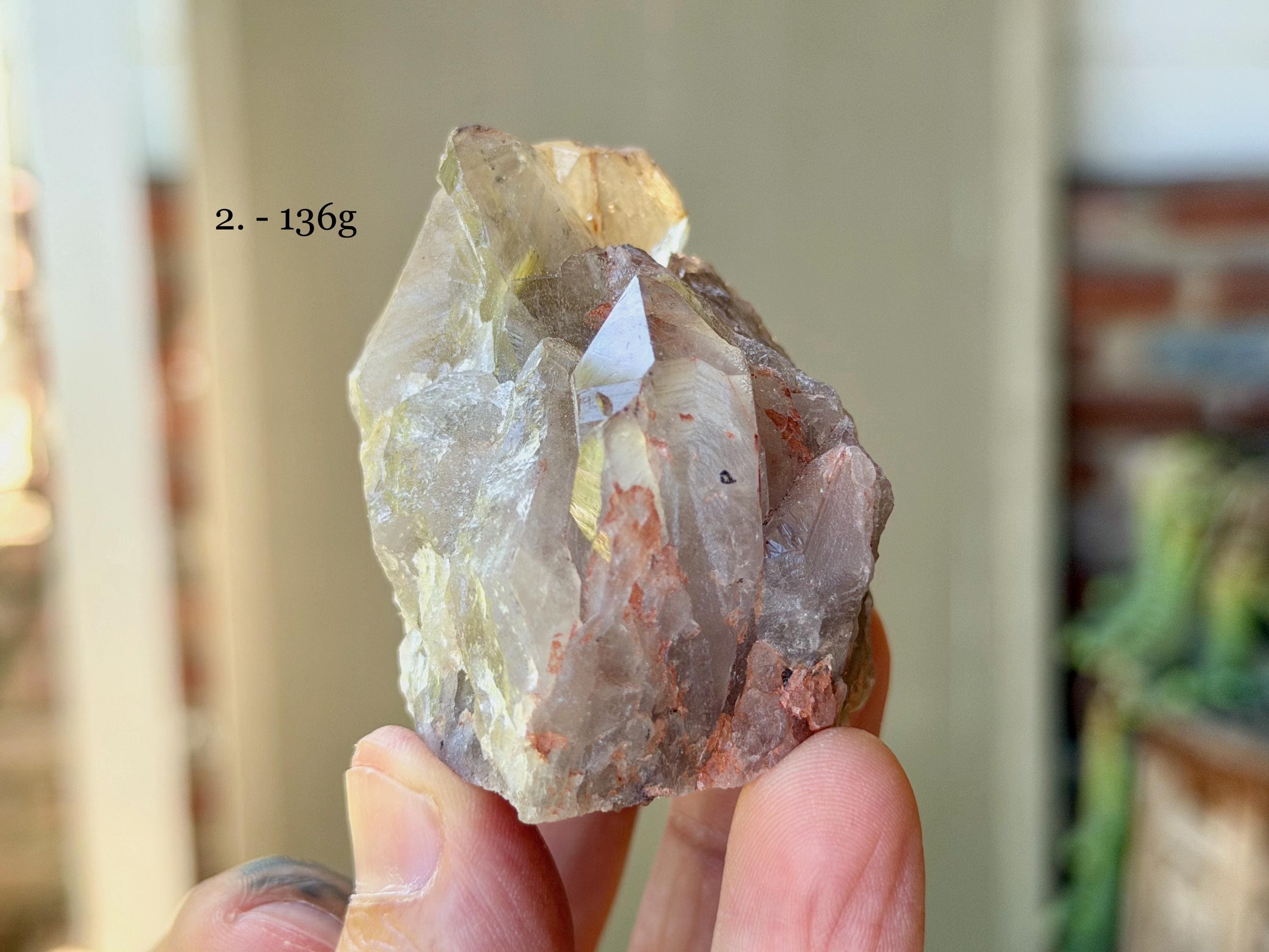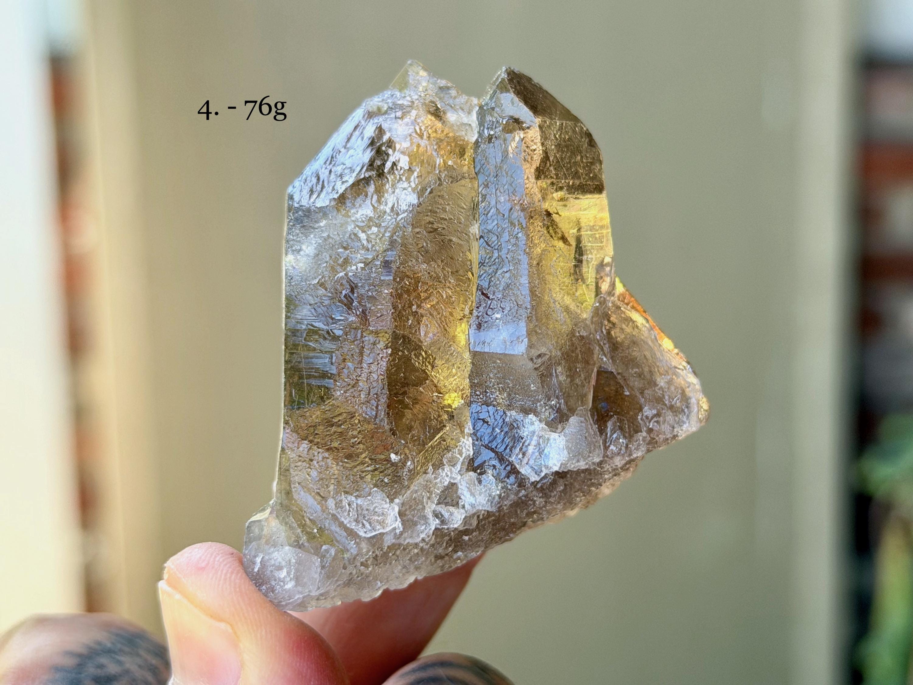 Each crystal is between 2" - 2.5" (5 cm - 7 cm) tall and weighs between 76g - 136g.