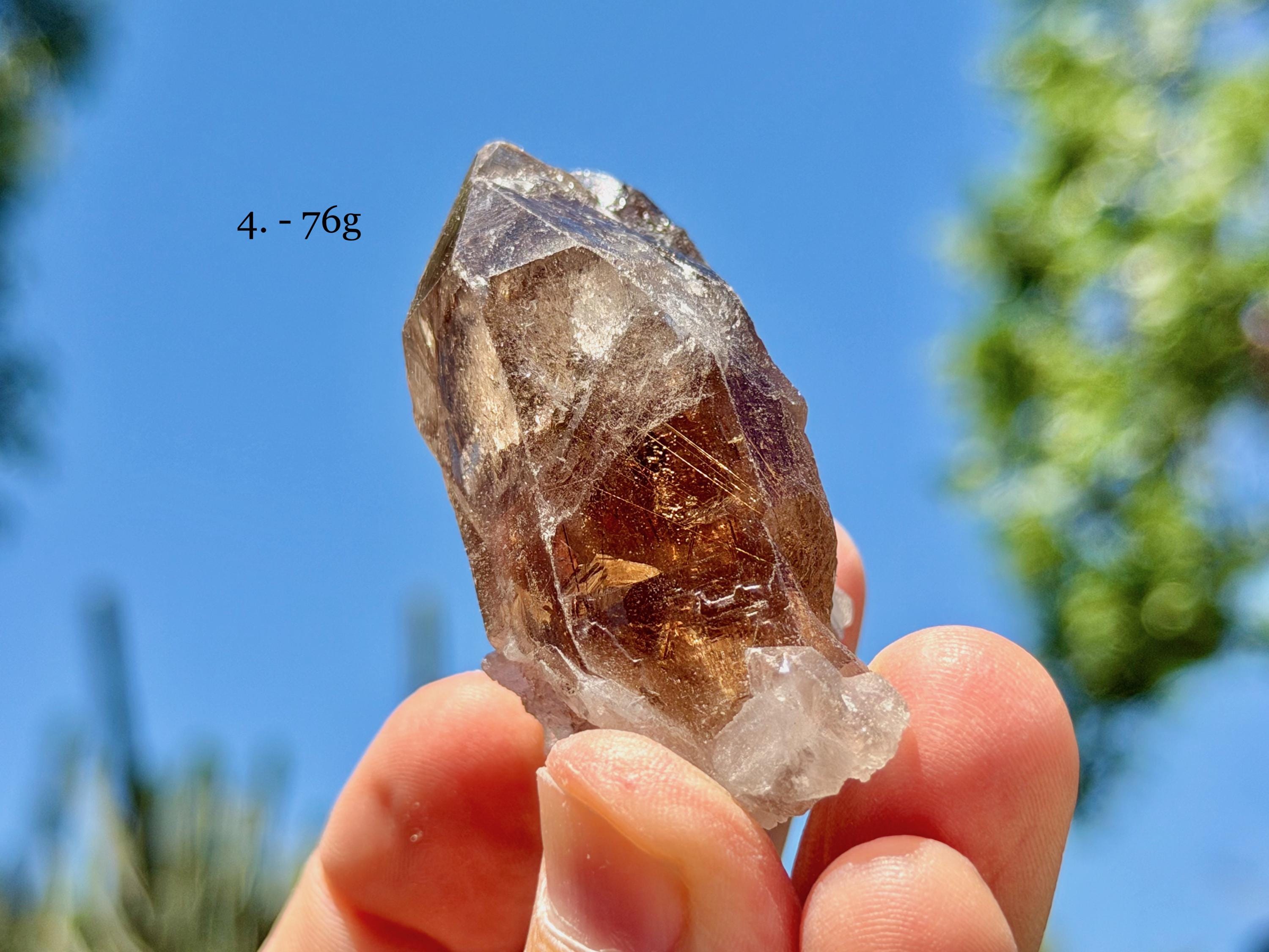 These natural Golden Rutile Smoky Quartz crystals come from the Novo Horizonte region of Bahia, Brazil. Each selection is numbered, simply select your preference(s) from the dropdown menu.