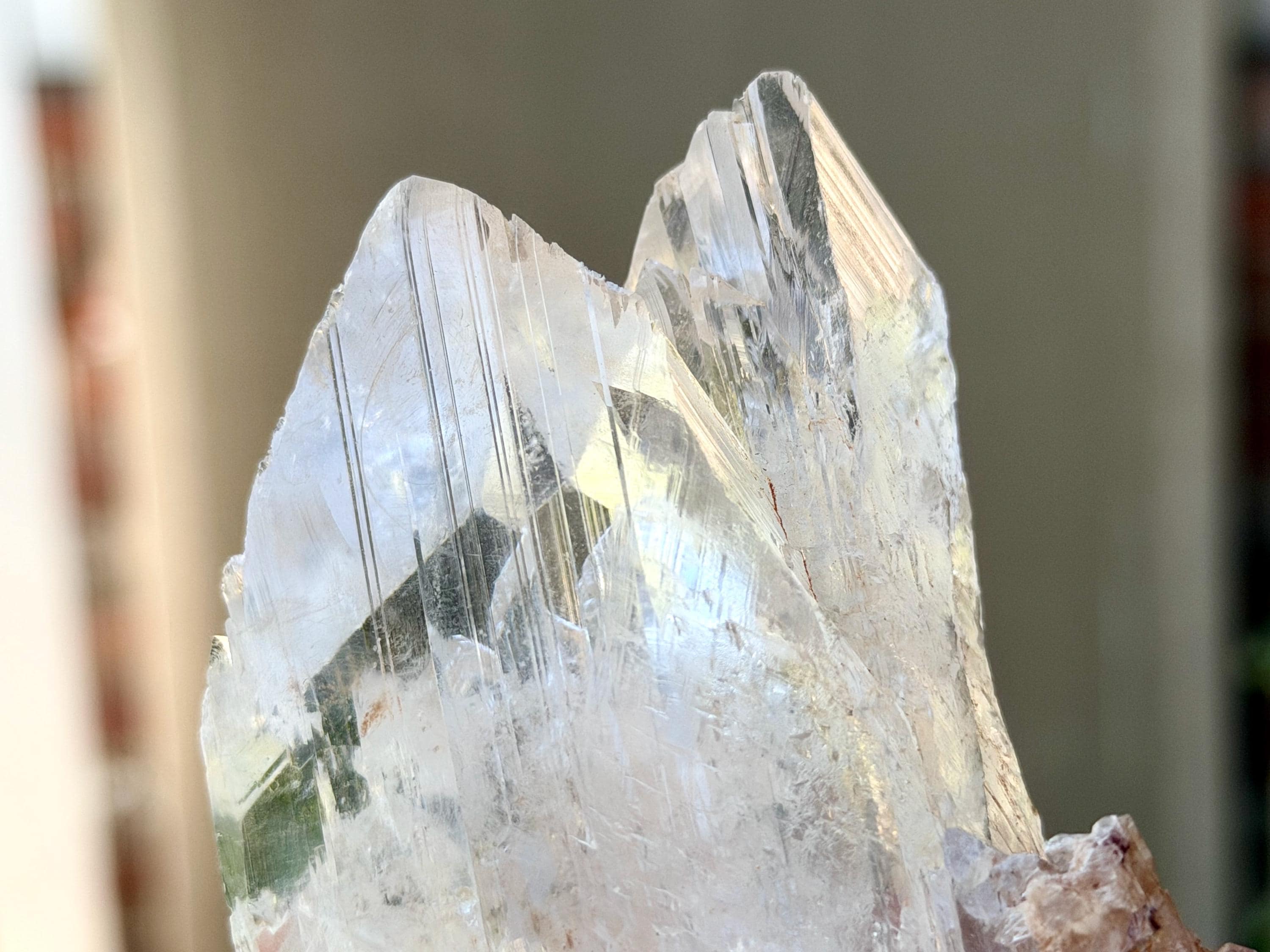 This crystal is entirely Selenite, with just a small amount of matrix at the base. The terminations are excellent. Absolutely stunning!