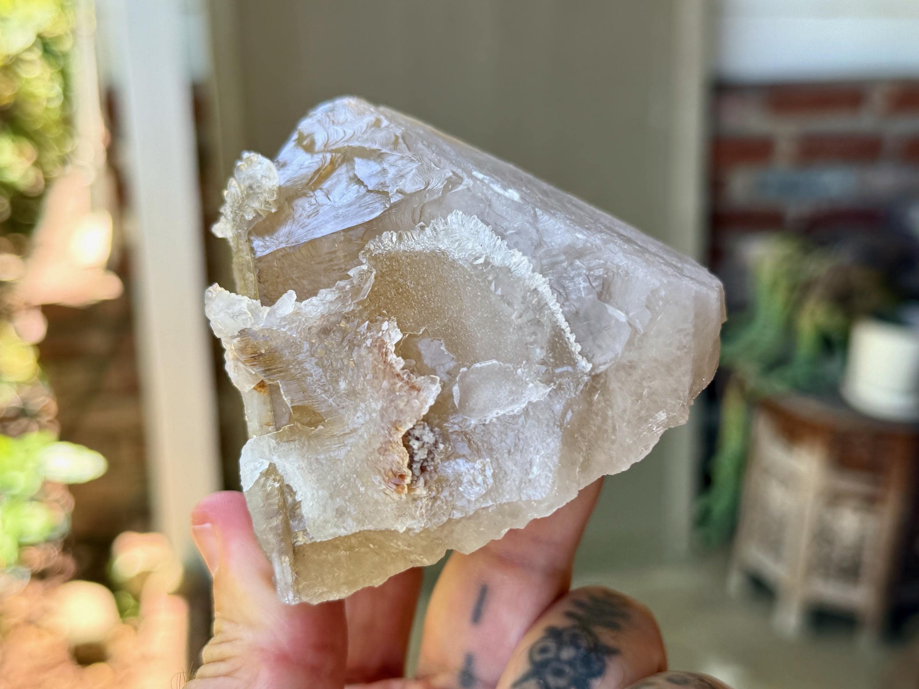 While Rose Quartz, as most of us know it, is quite common in slab form and can be found at any New Age store (in tumbled stones, etc), crystallized Rose Quartz (also known as Canga Rosa or Canga Rose Quartz) is extremely rare. In addition to its physical beauty, it is considered to be one of the most powerful Heart Chakra crystals, purifying and opening the heart on all levels. It carries an energy of divine love, tenderness and sensuality.