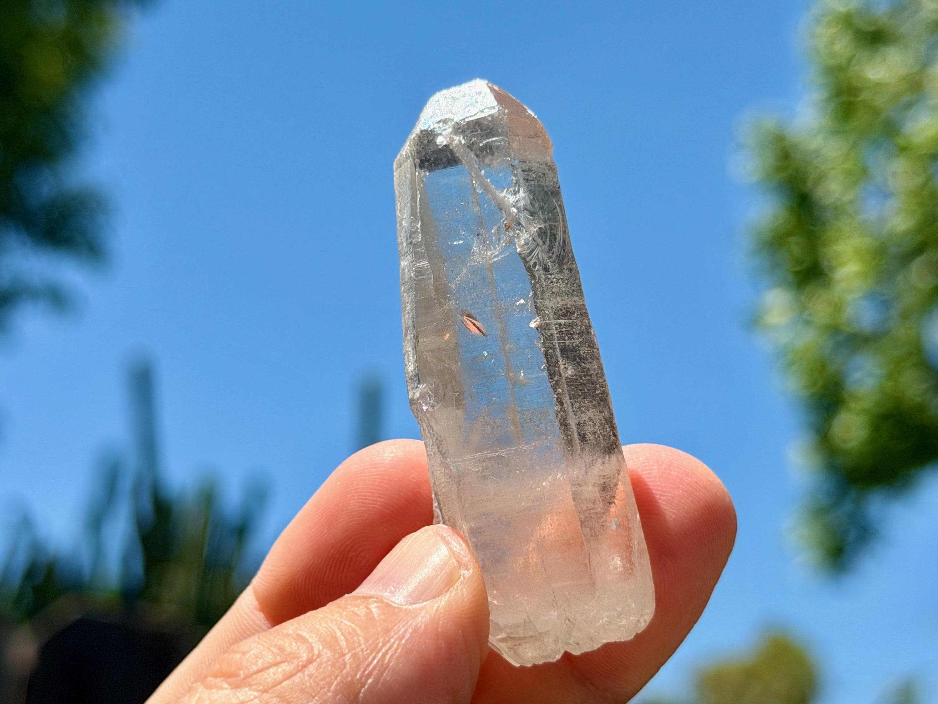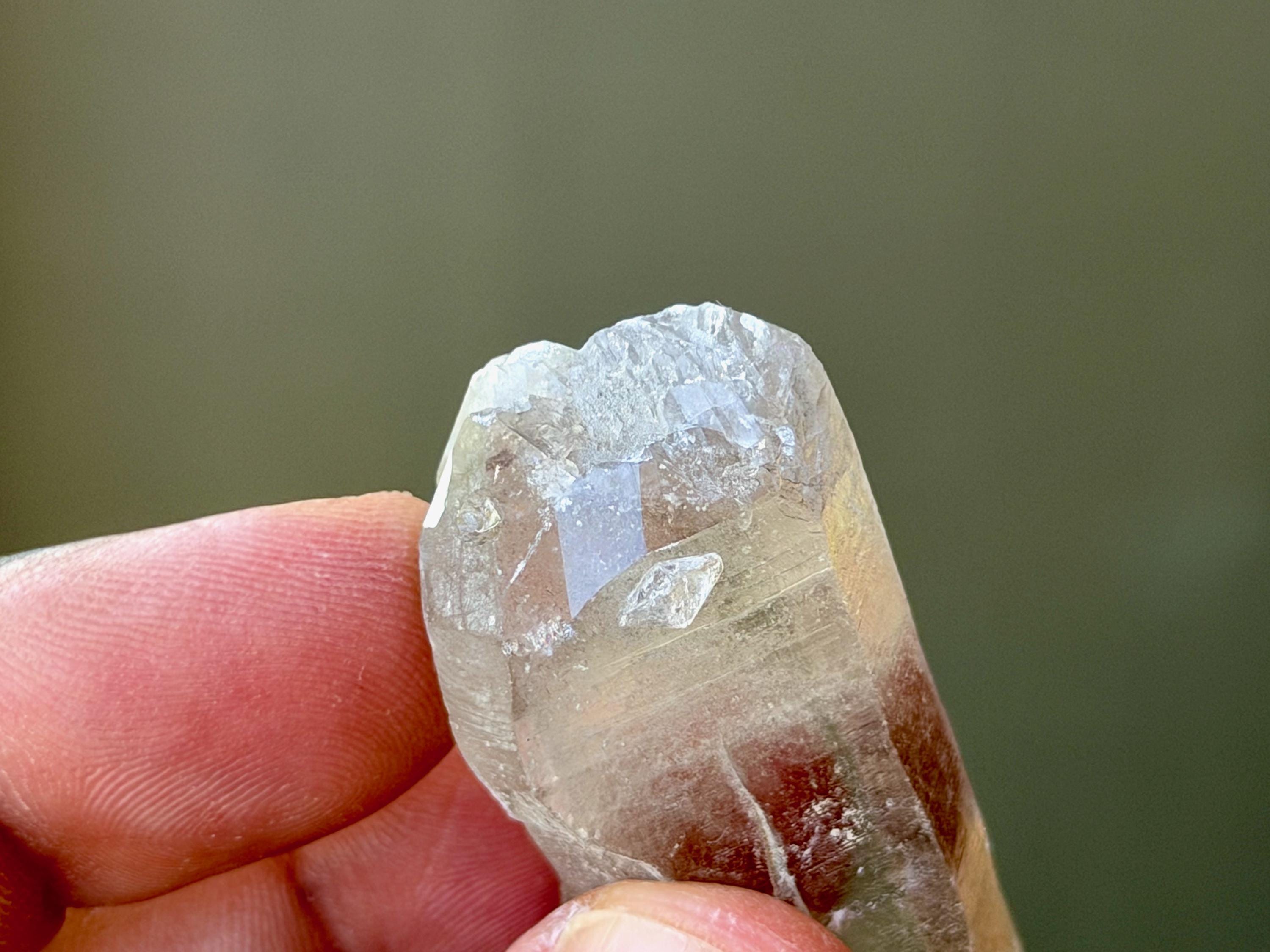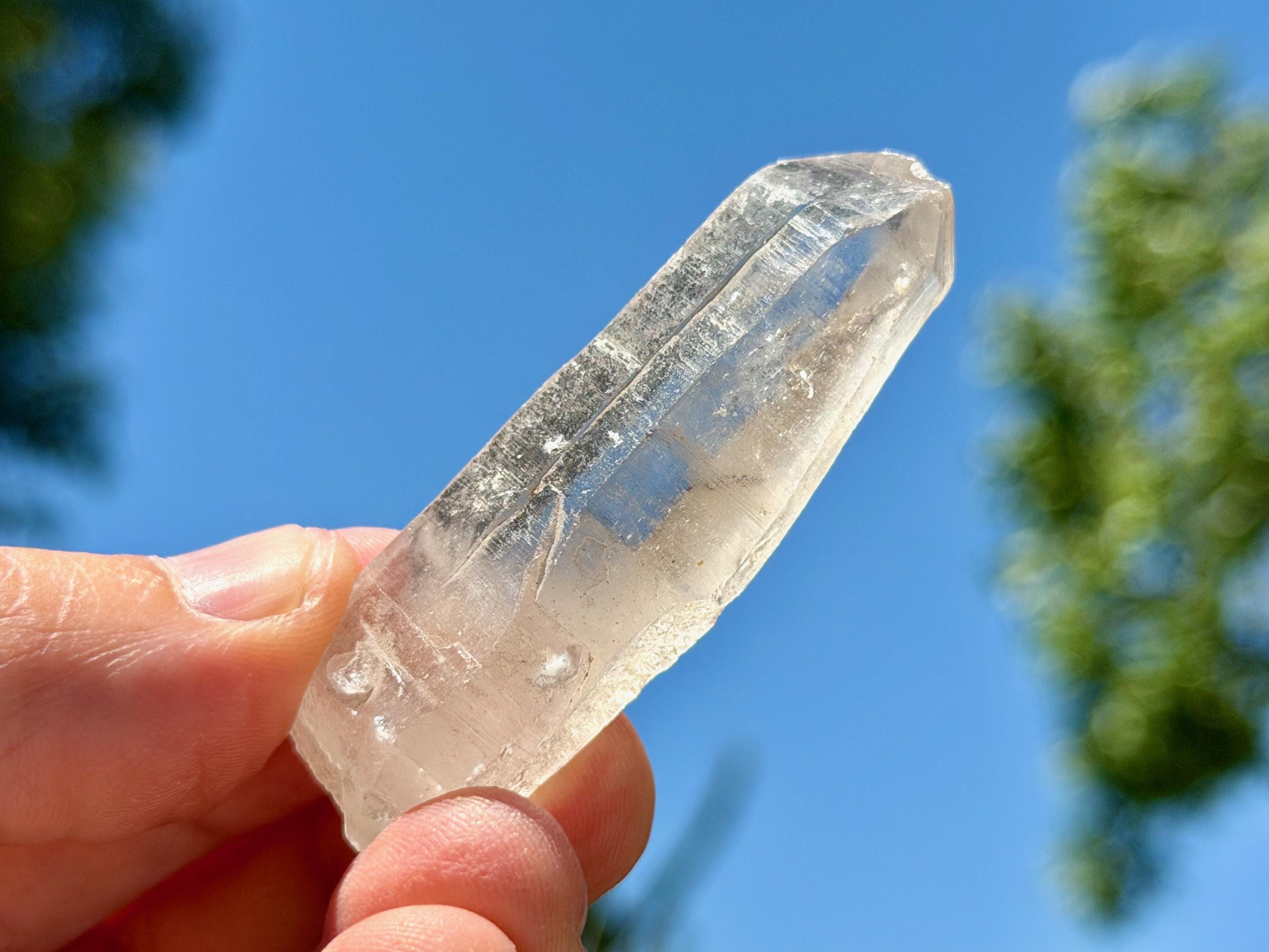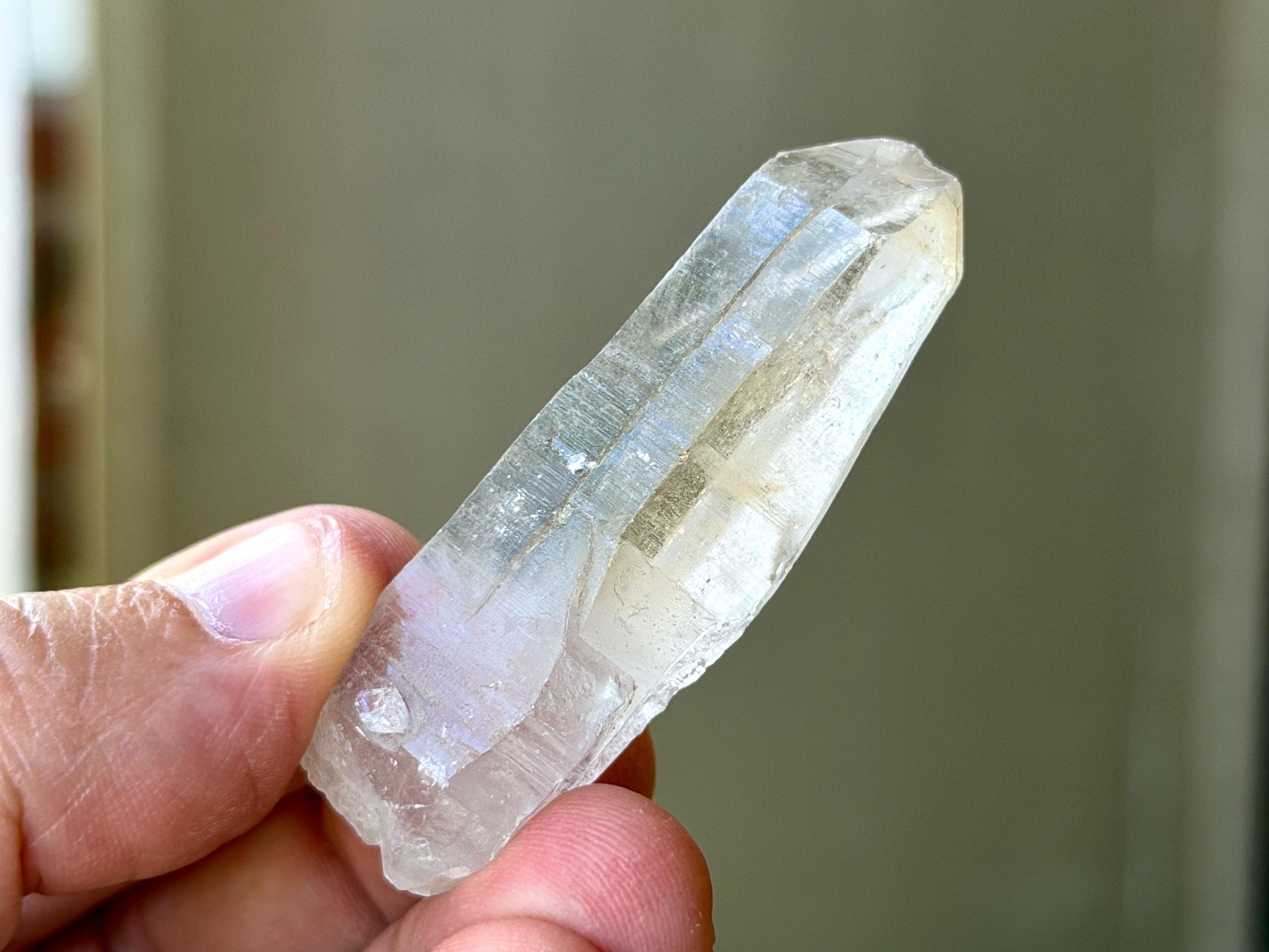 *Please note this crystal is clear and colorless. Any yellow hues in the photos are from the natural sunlight and surrounding environment reflecting off the crystal.