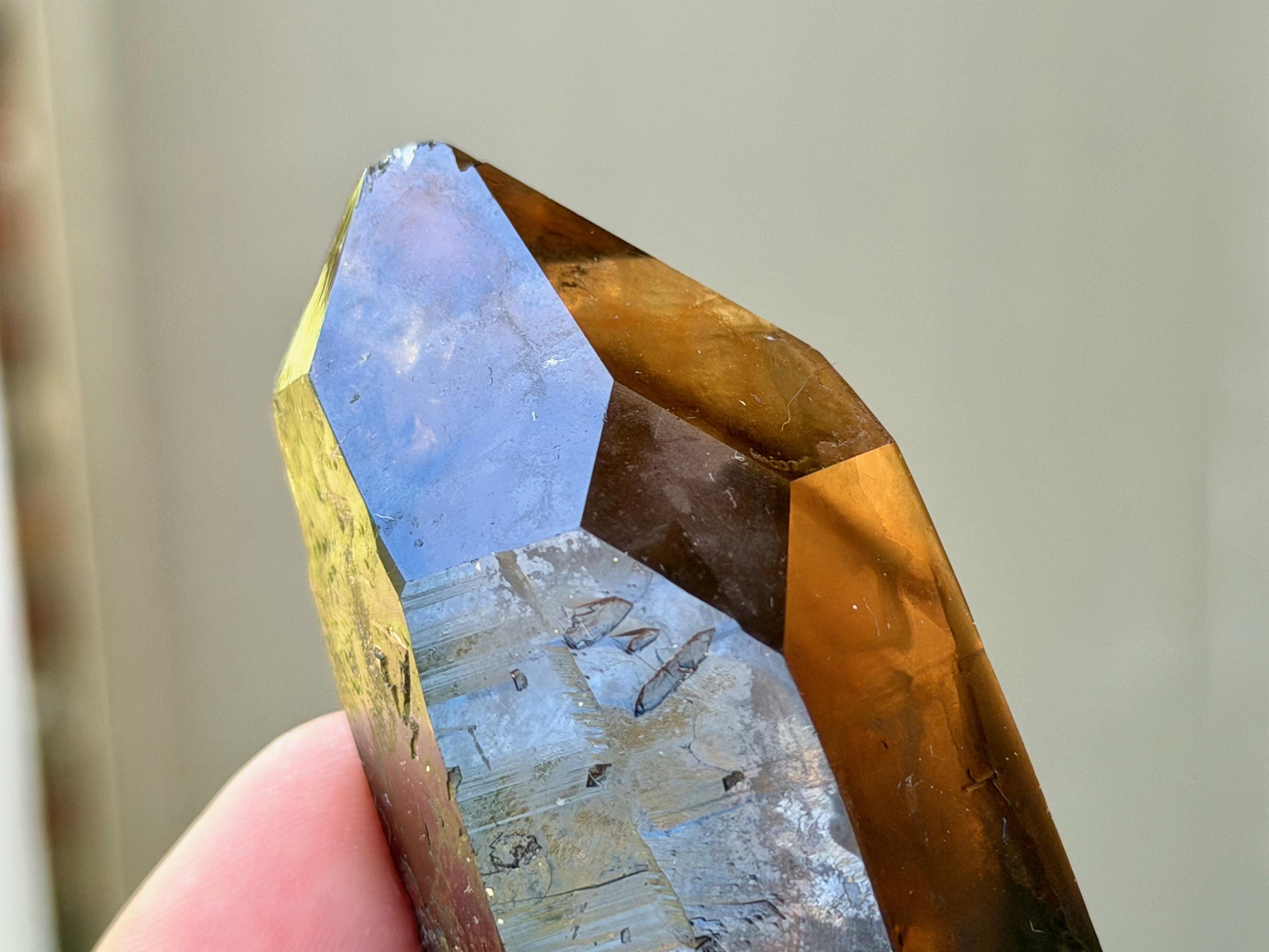 This natural Pele’s Dream Lemurian Citrine comes from a recent (2025) find in Cristalina, Goiás, Brazil.