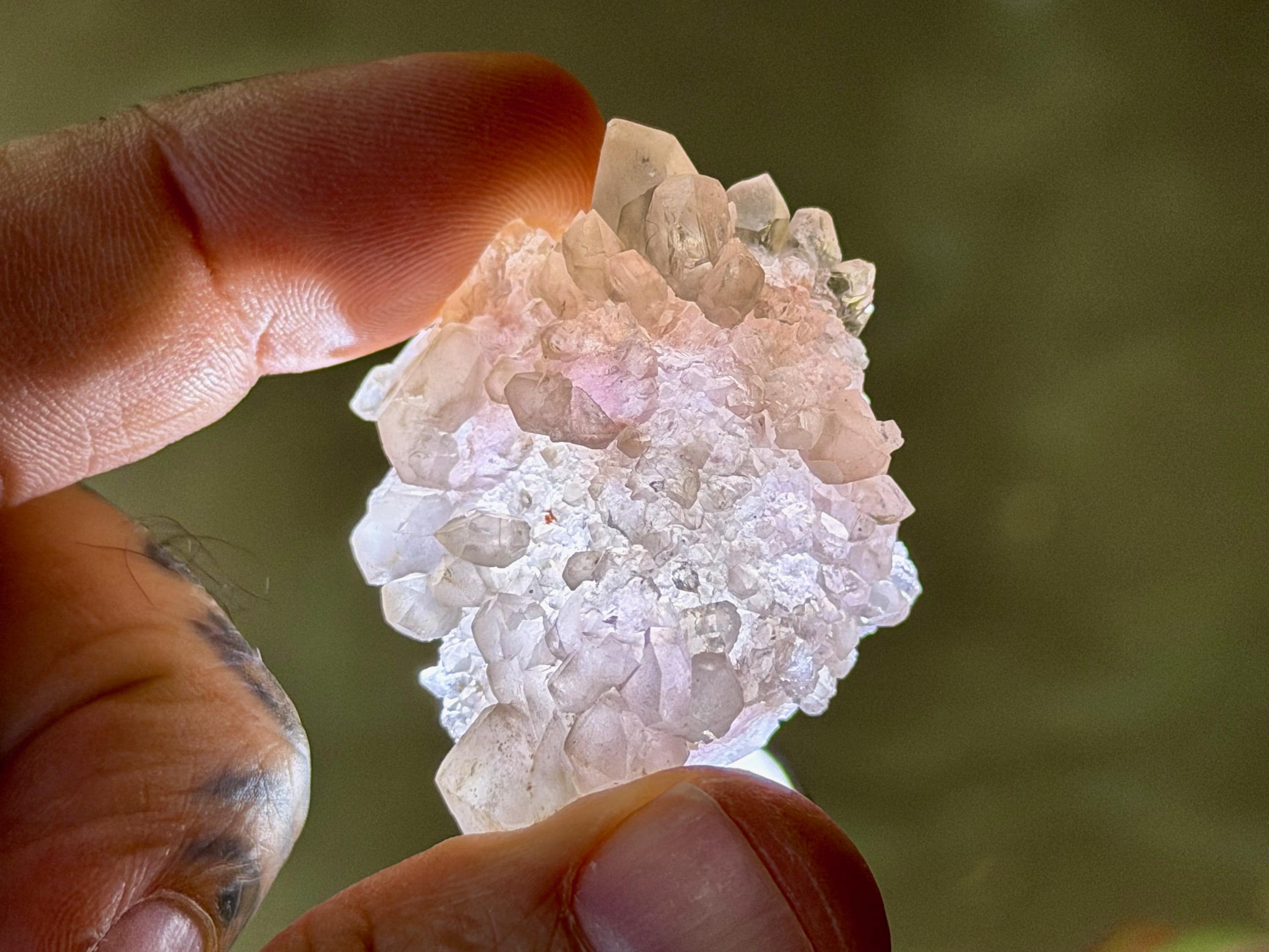 While Rose Quartz, as most of us know it, is quite common in slab form and can be found in any New Age store (in tumbled stones, etc), crystallized Rose Quartz (also known as Canga Rosa or Canga Rose Quartz) is extremely rare. In addition to its physical beauty, it is considered to be one of the most powerful Heart Chakra crystals, purifying and opening the heart on all levels. It carries an energy of divine love, tenderness and sensuality.