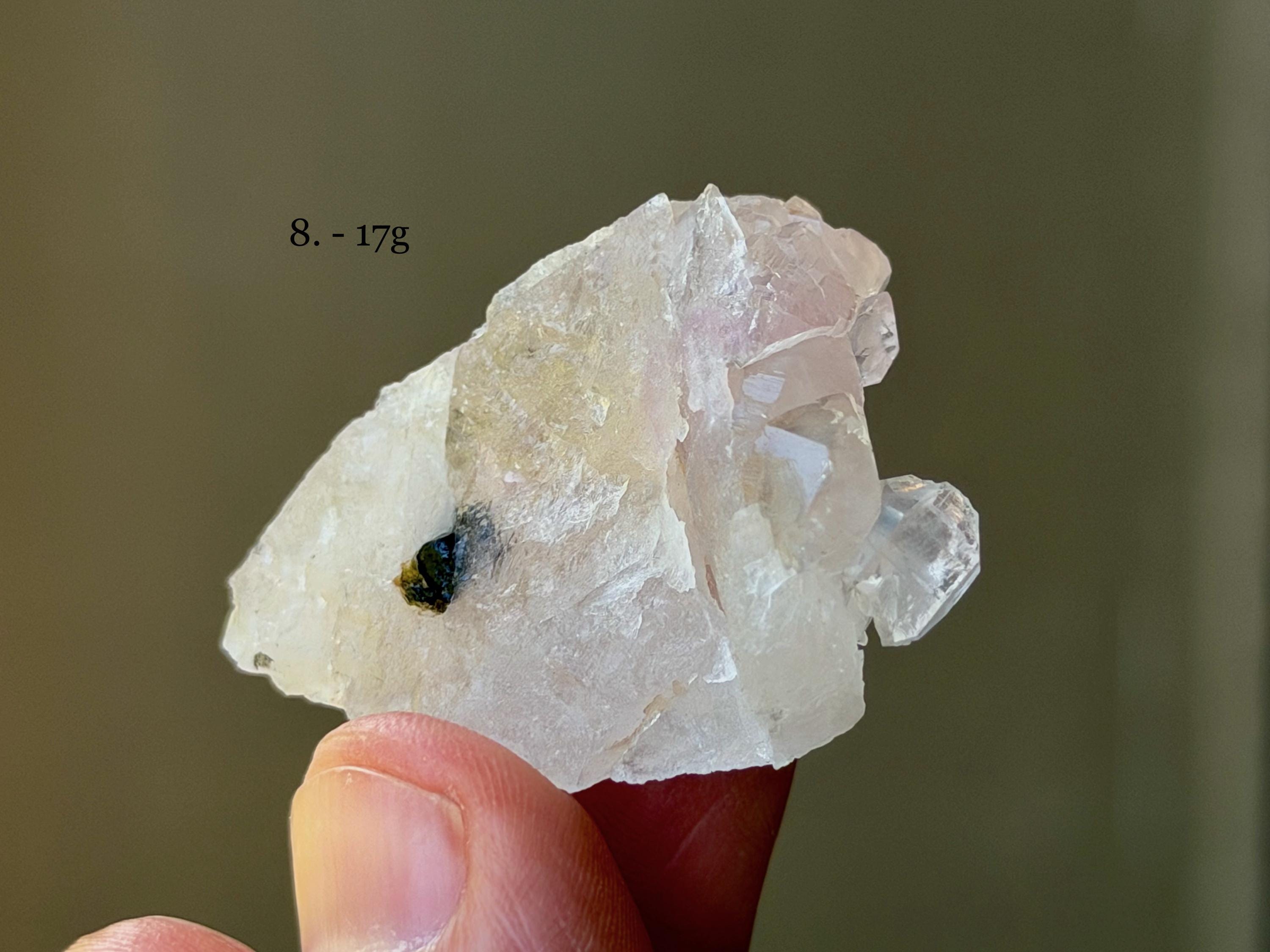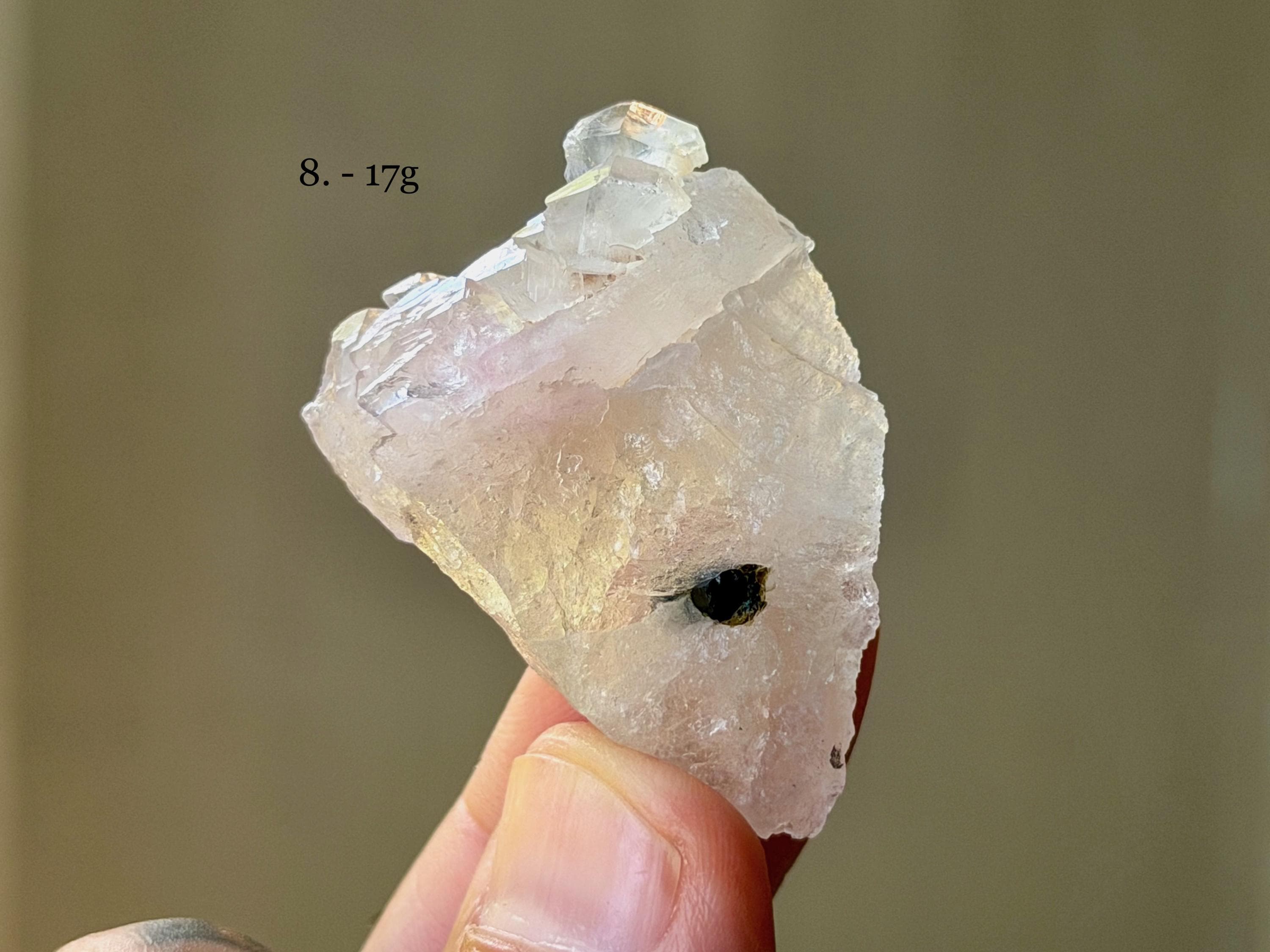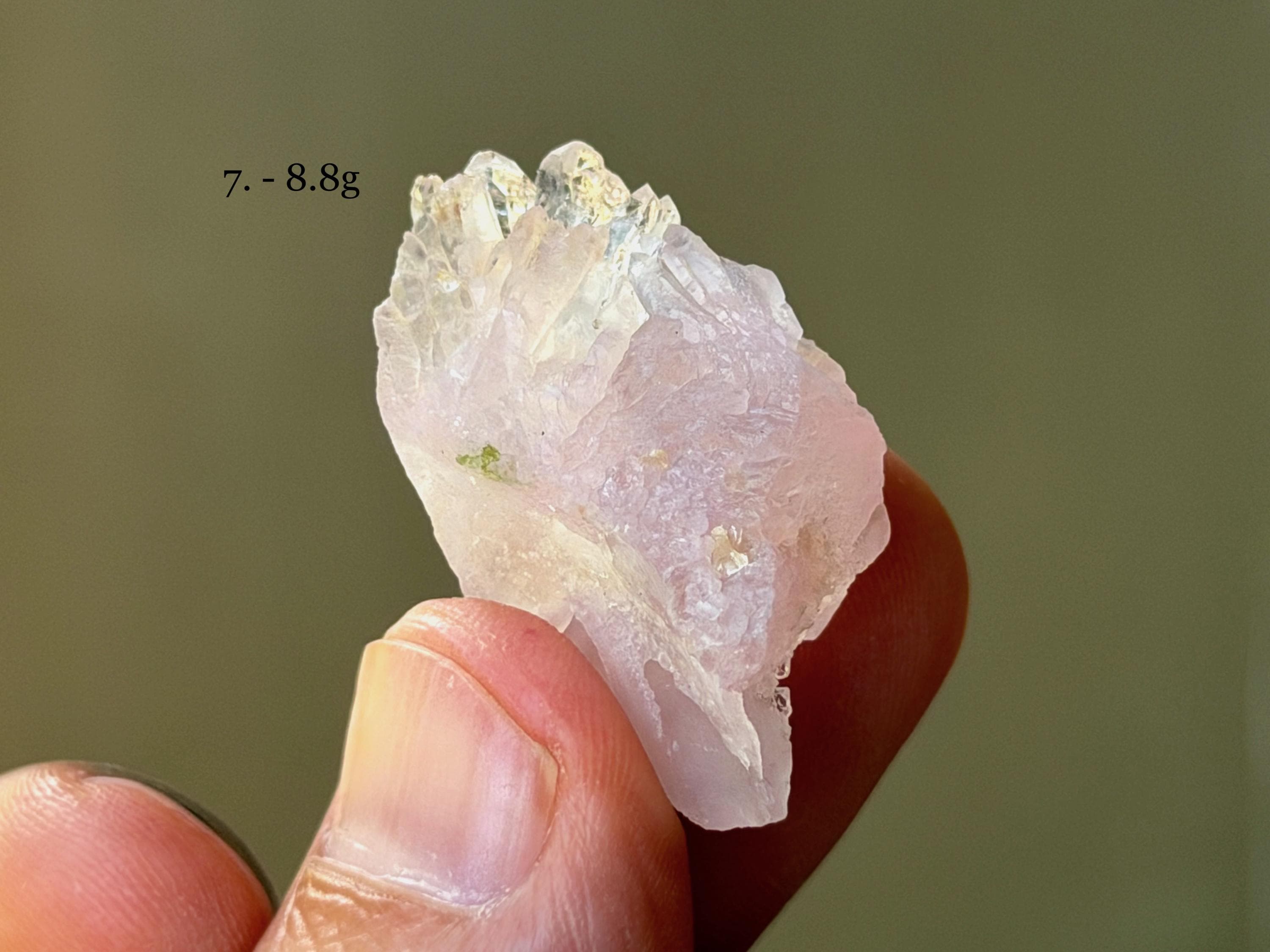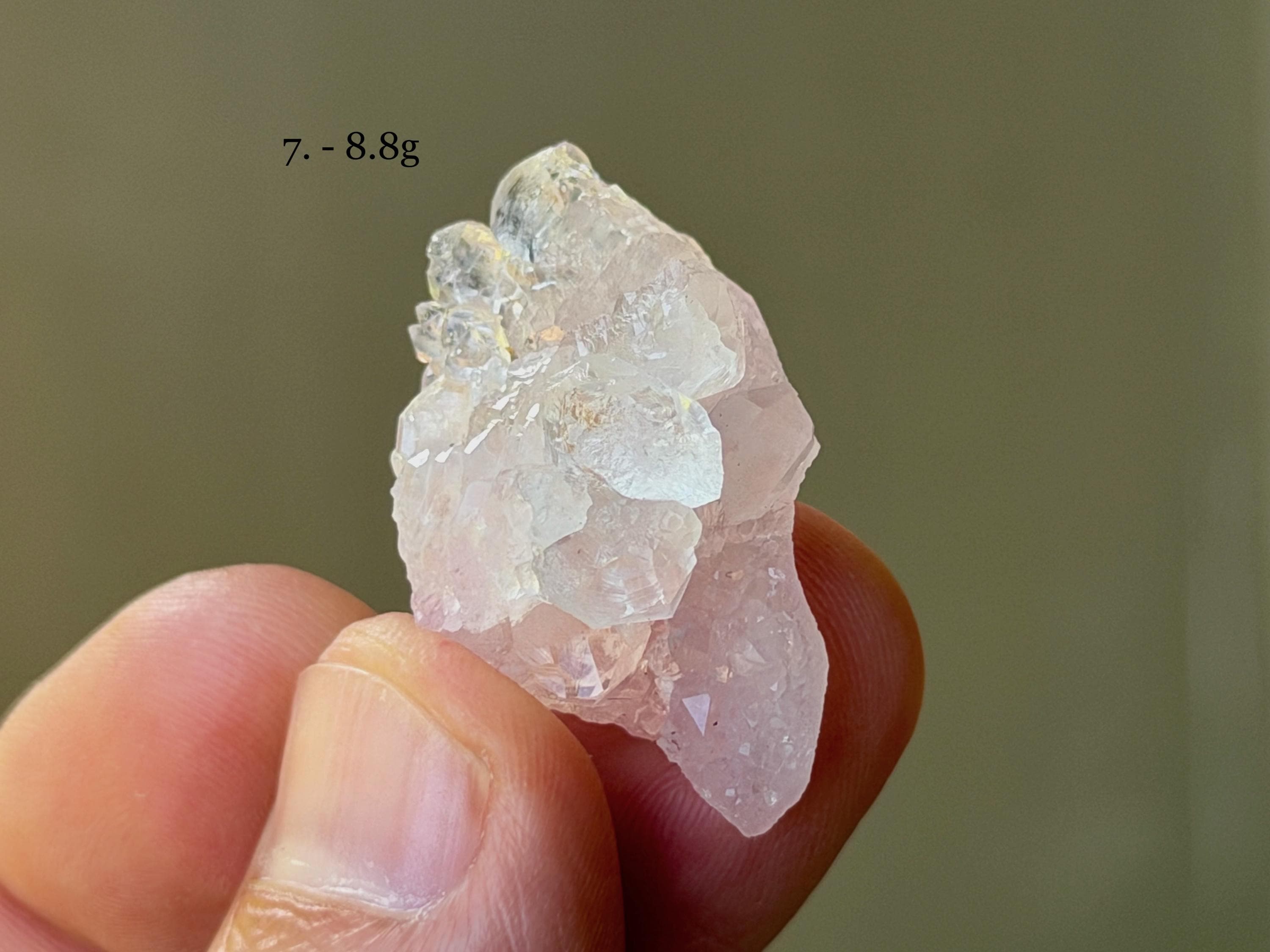 Gentle pink hues and delicate crystalline formations to these exquisite Canga Rose Quartz crystals! Some of these are entirely (or mostly) Canga Rose Quartz, and some are partially Canga Rose Quartz on a matrix of clear Quartz. When backlit, all pass light beautifully.