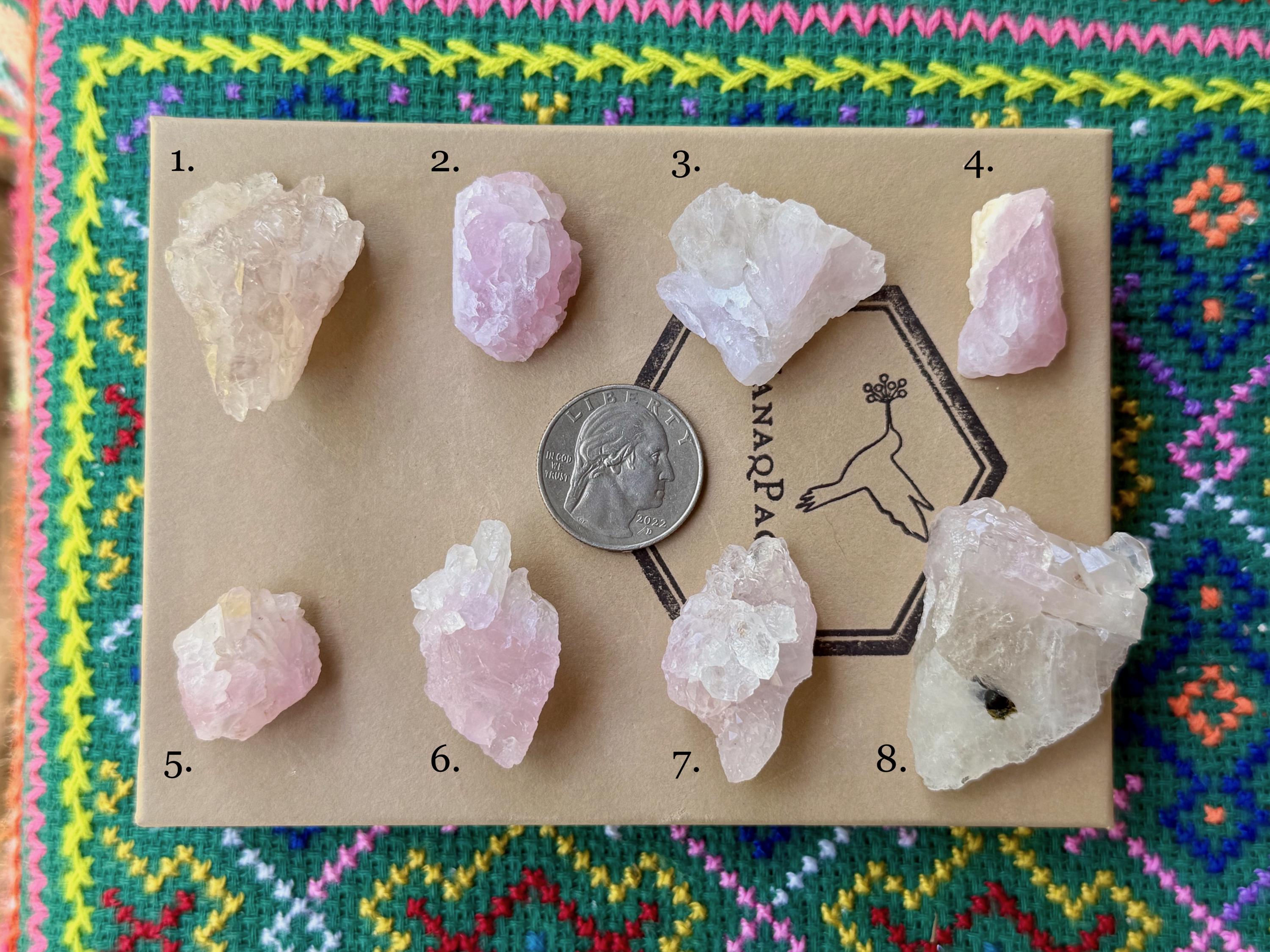These natural Canga Rose Quartz crystals come from a recent (2026) find in Taquaral, Brazil. Each selection is numbered, simply select the one(s) you'd like from the dropdown.