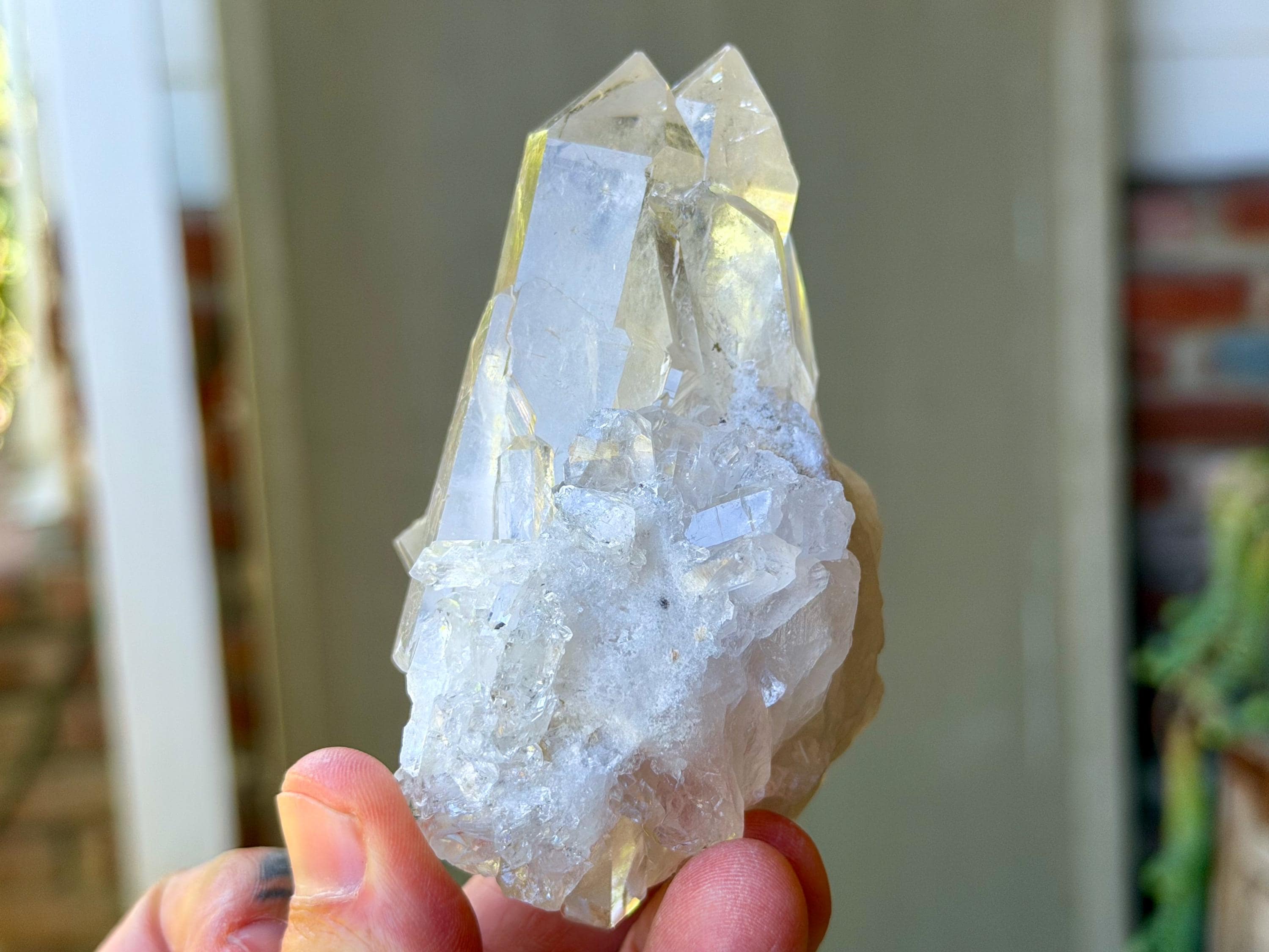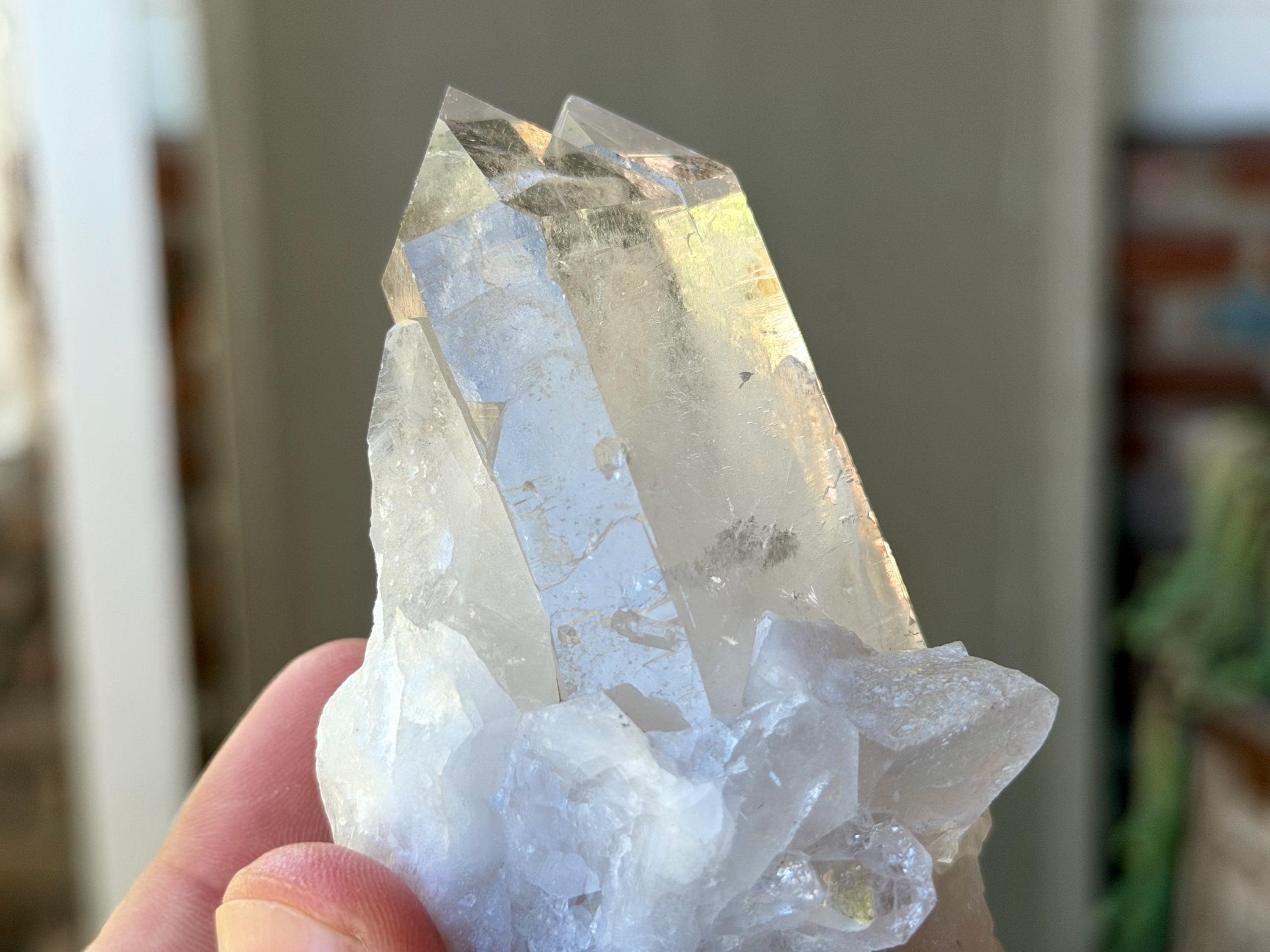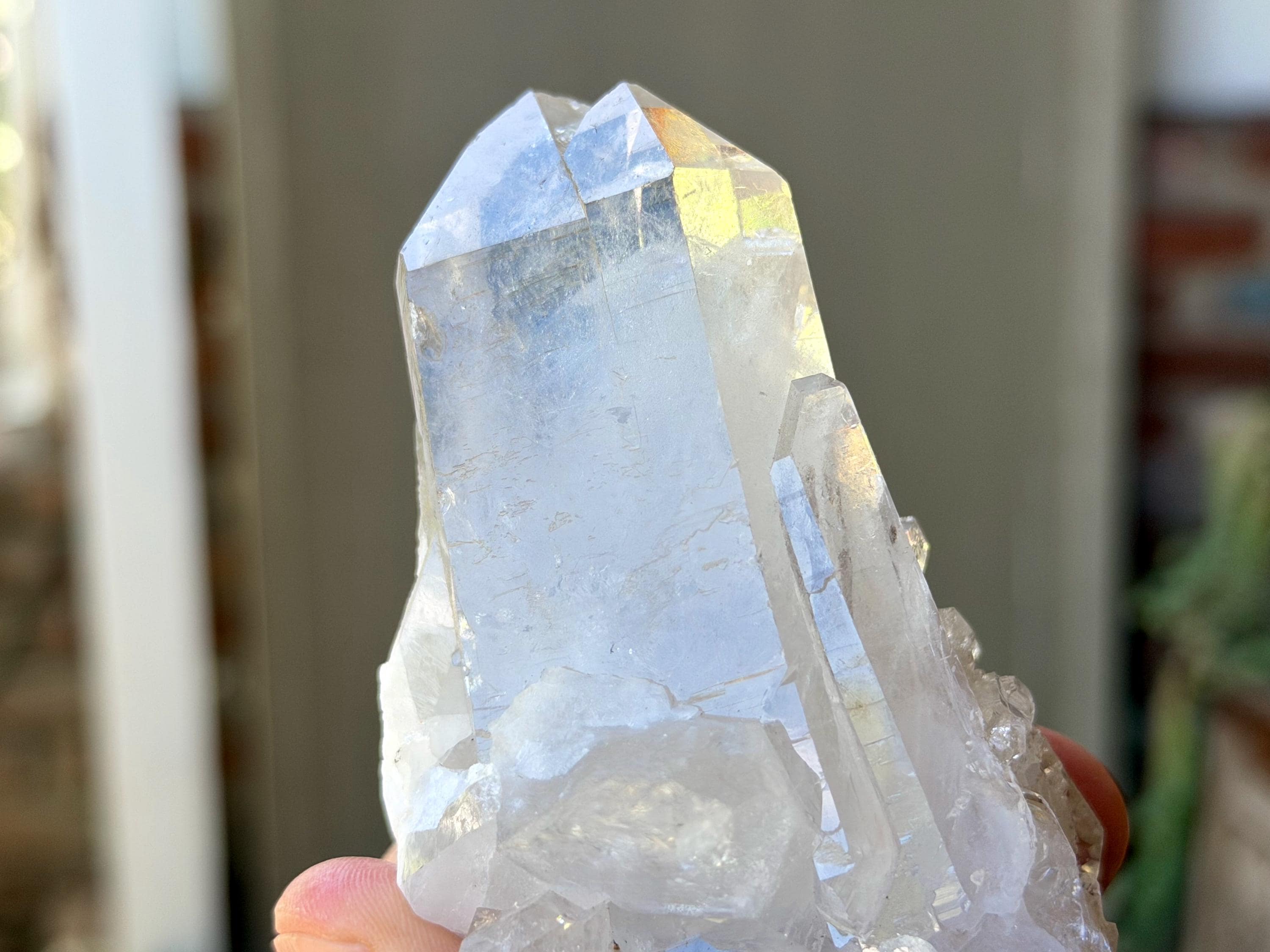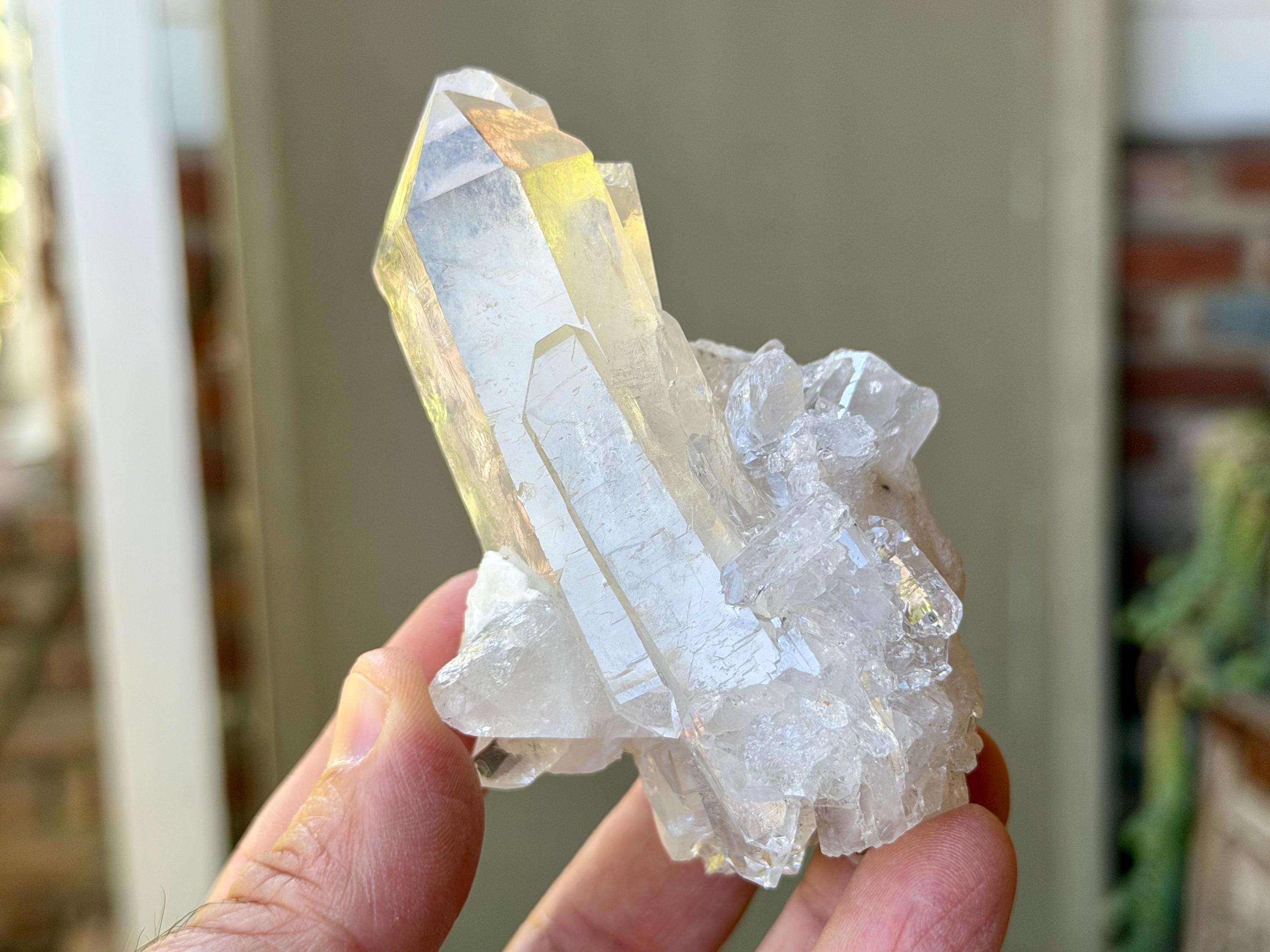 This crystal features a primary crystal in the center, with a bit of a cluster formation at the base. The Starbrary markings are mild and sparse on the primary crystal, however we can see them on the broad sides.