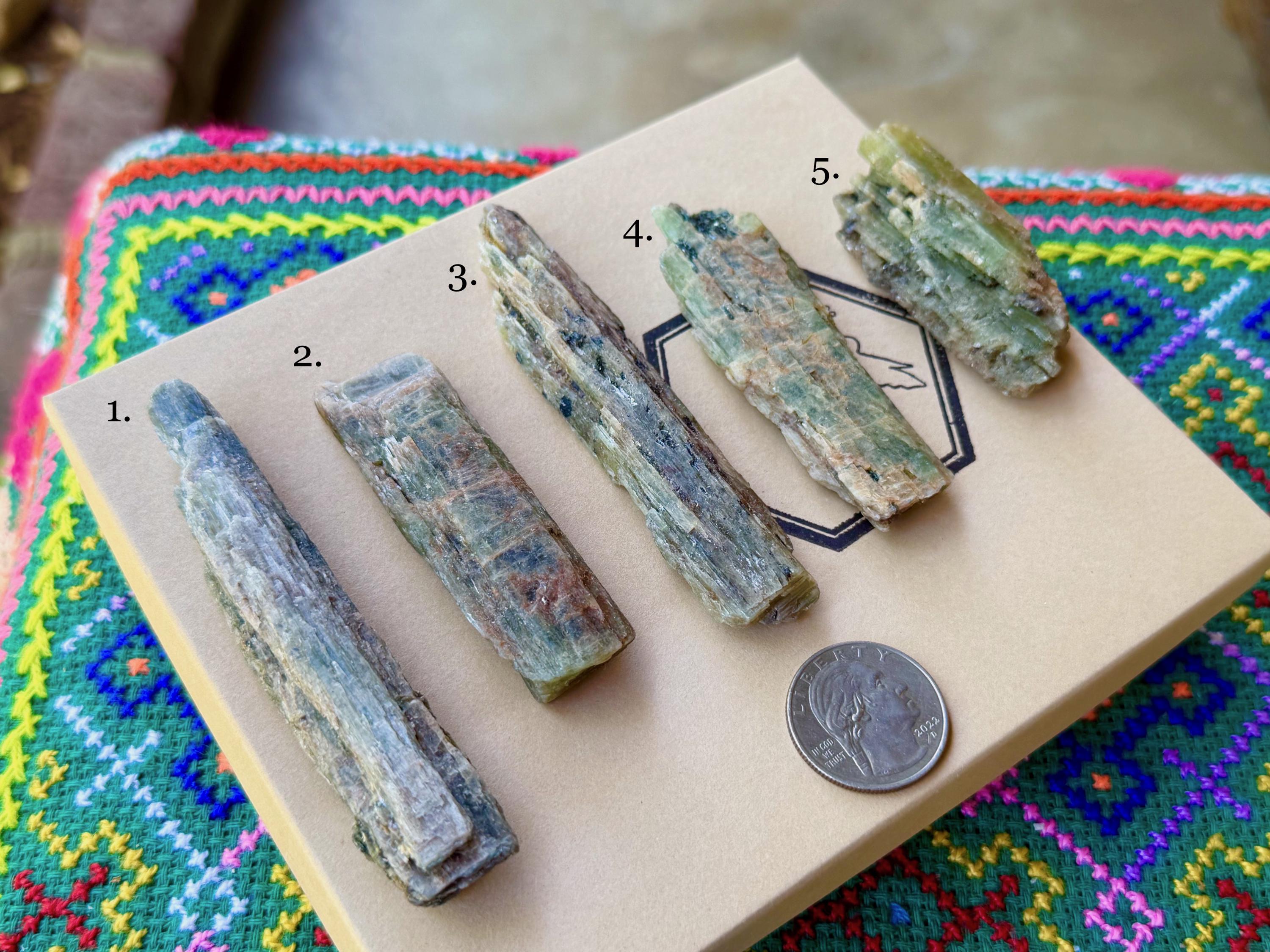 These natural Green Kyanite crystals come from an old find in Bahia, Brazil.