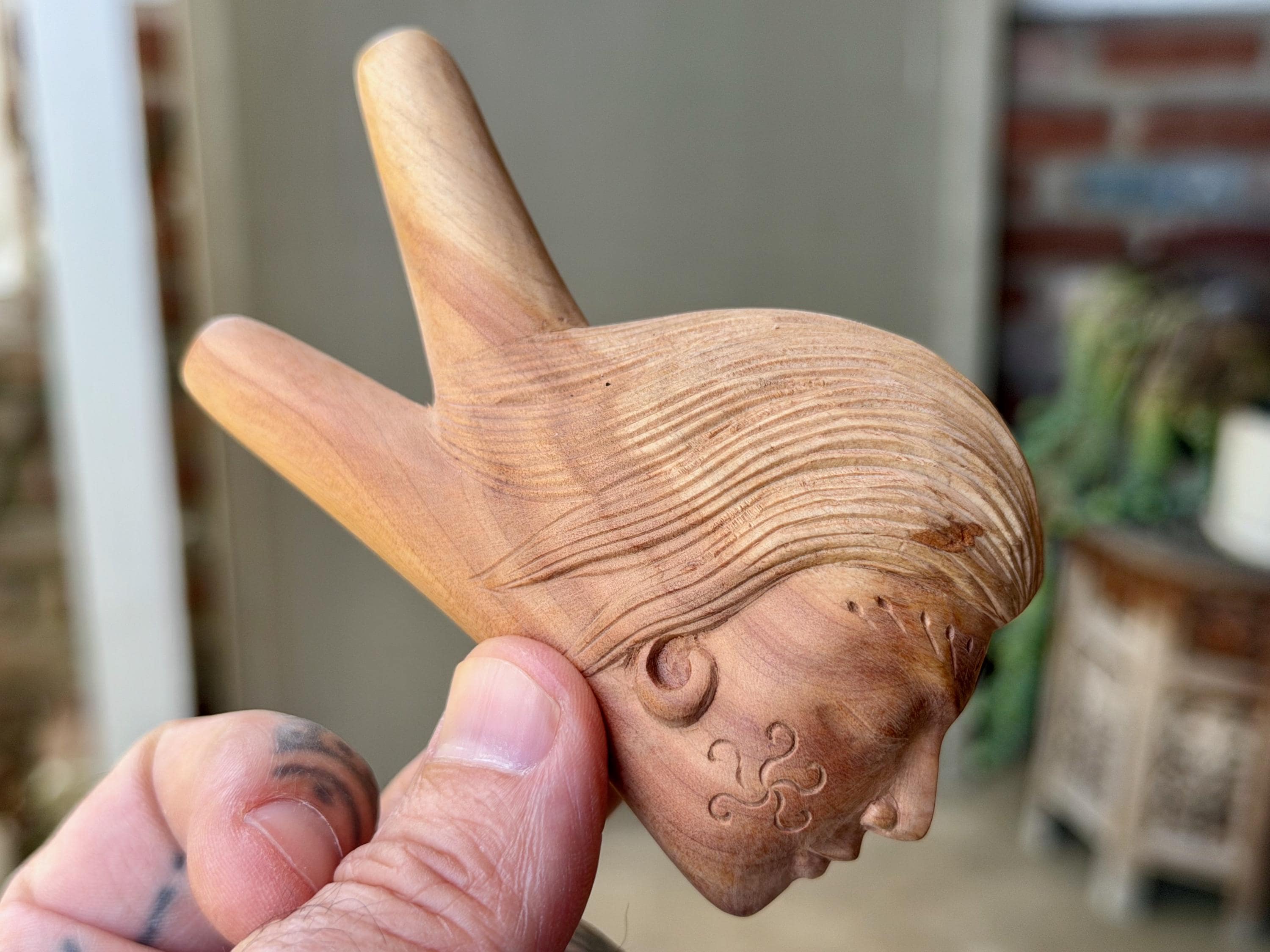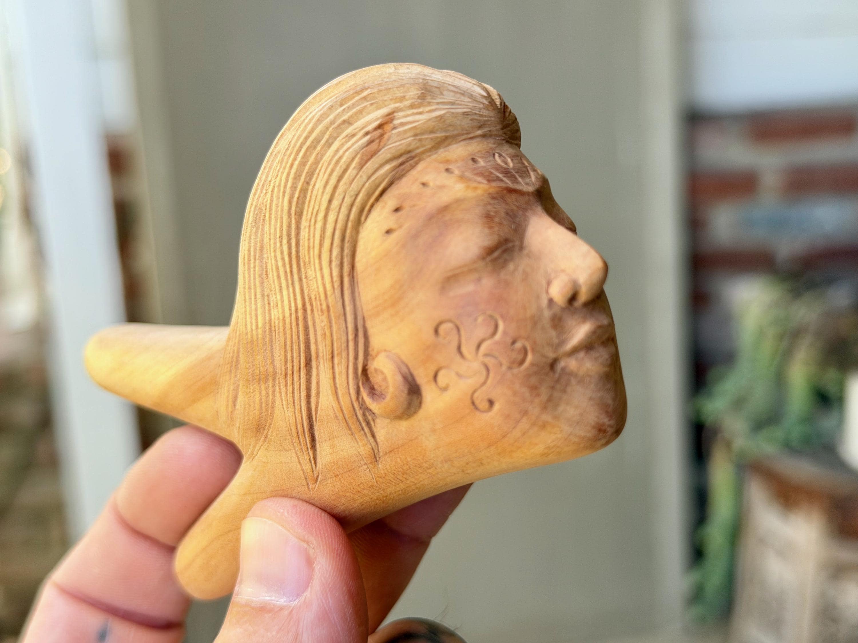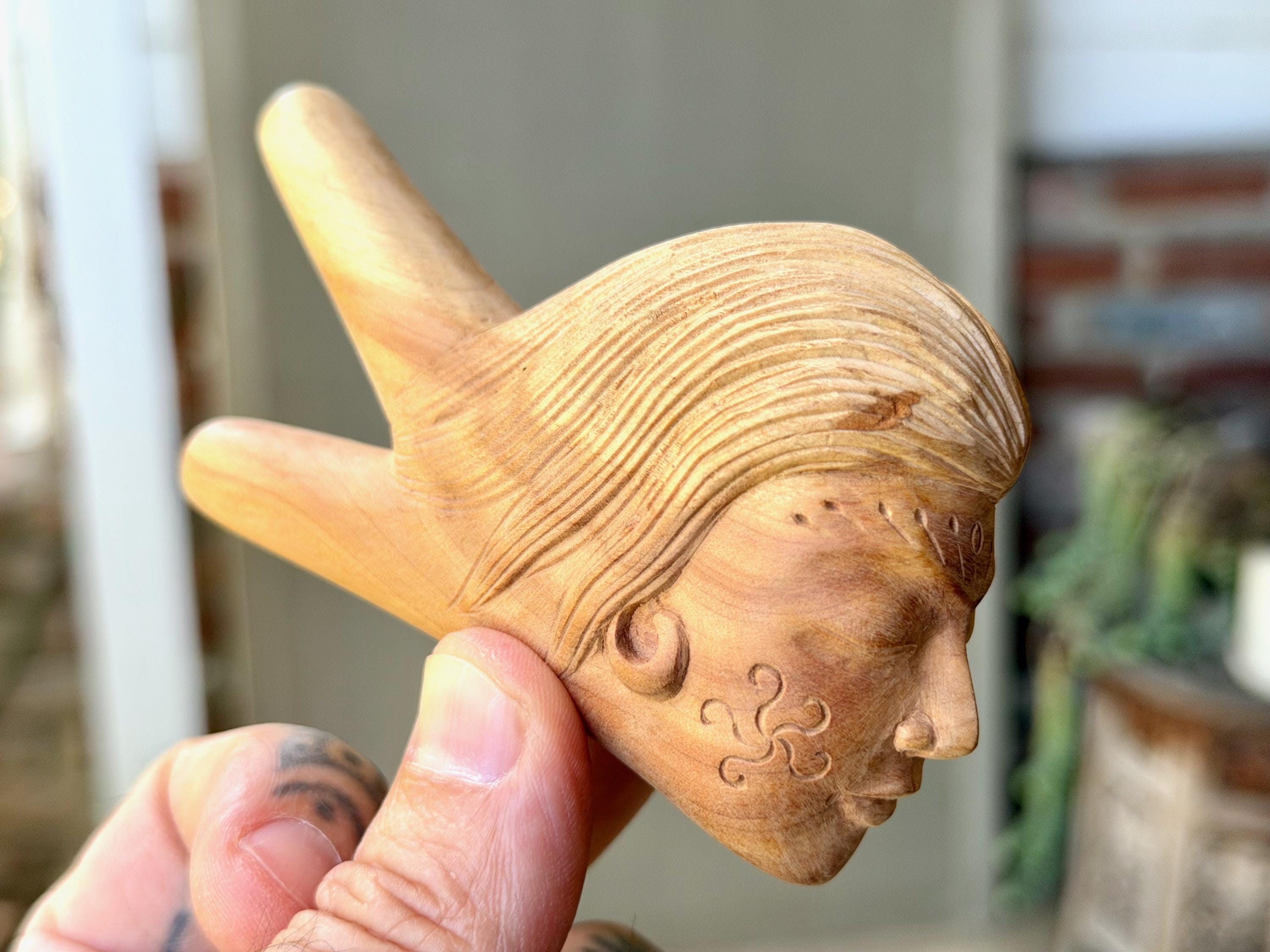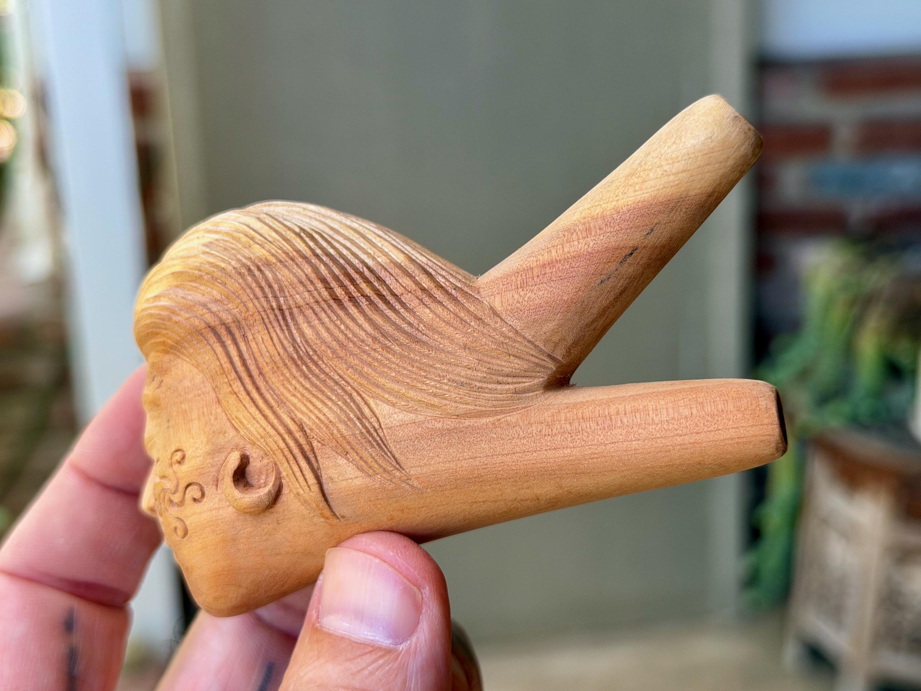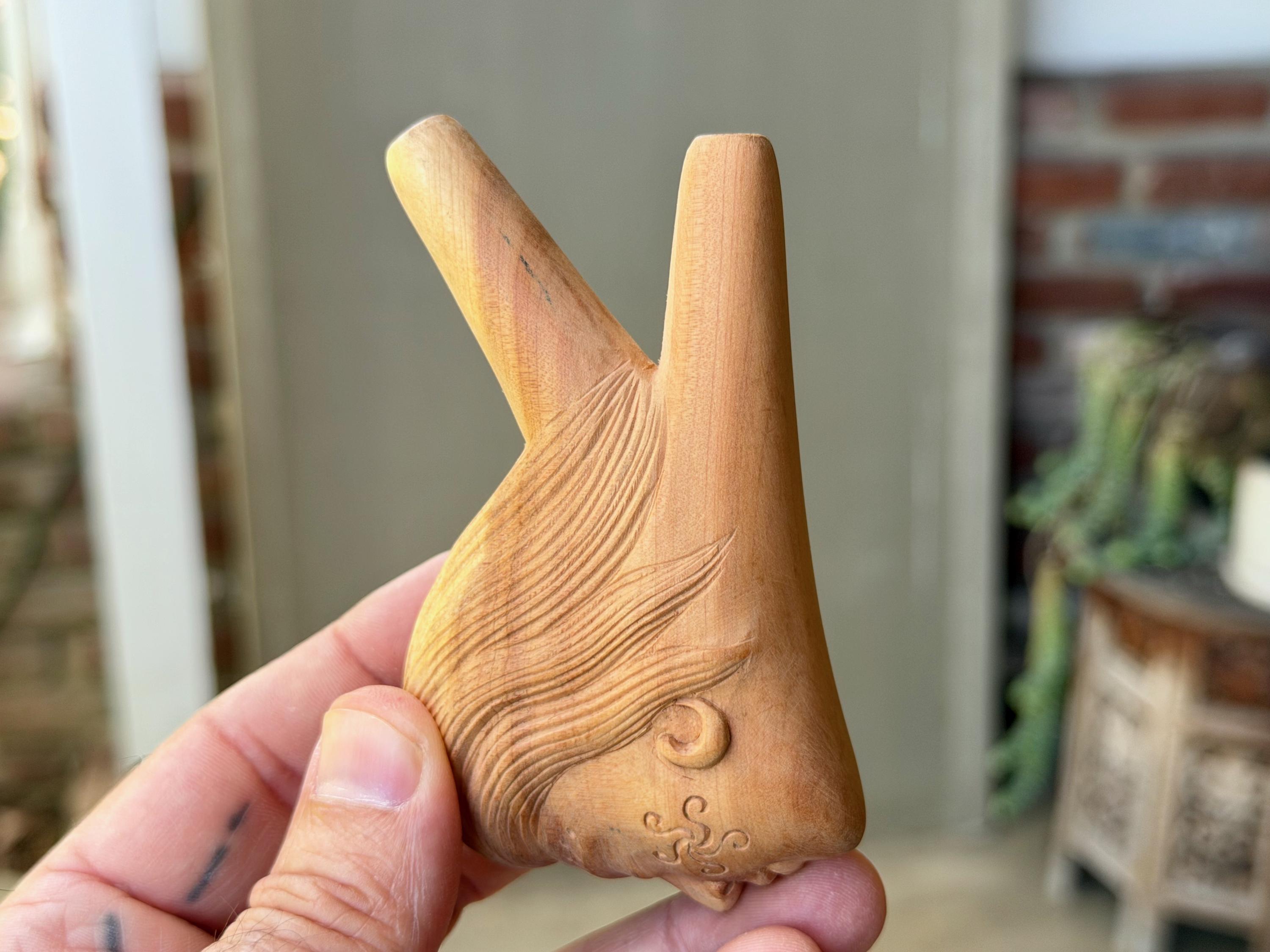 This exquisite Divine Feminine kuripe — used for self-administering hapé — was hand carved from solid, native Cemara Wood.