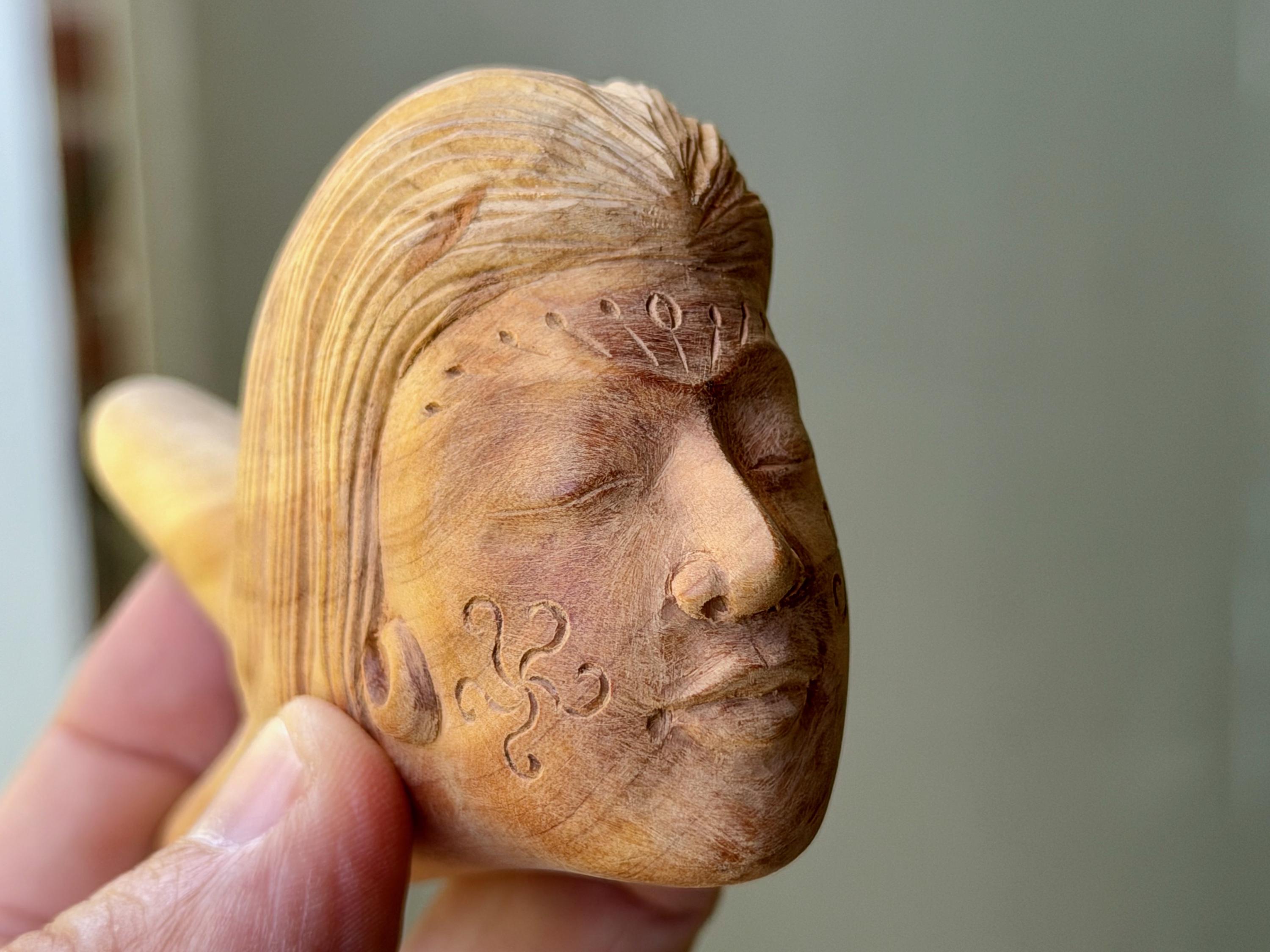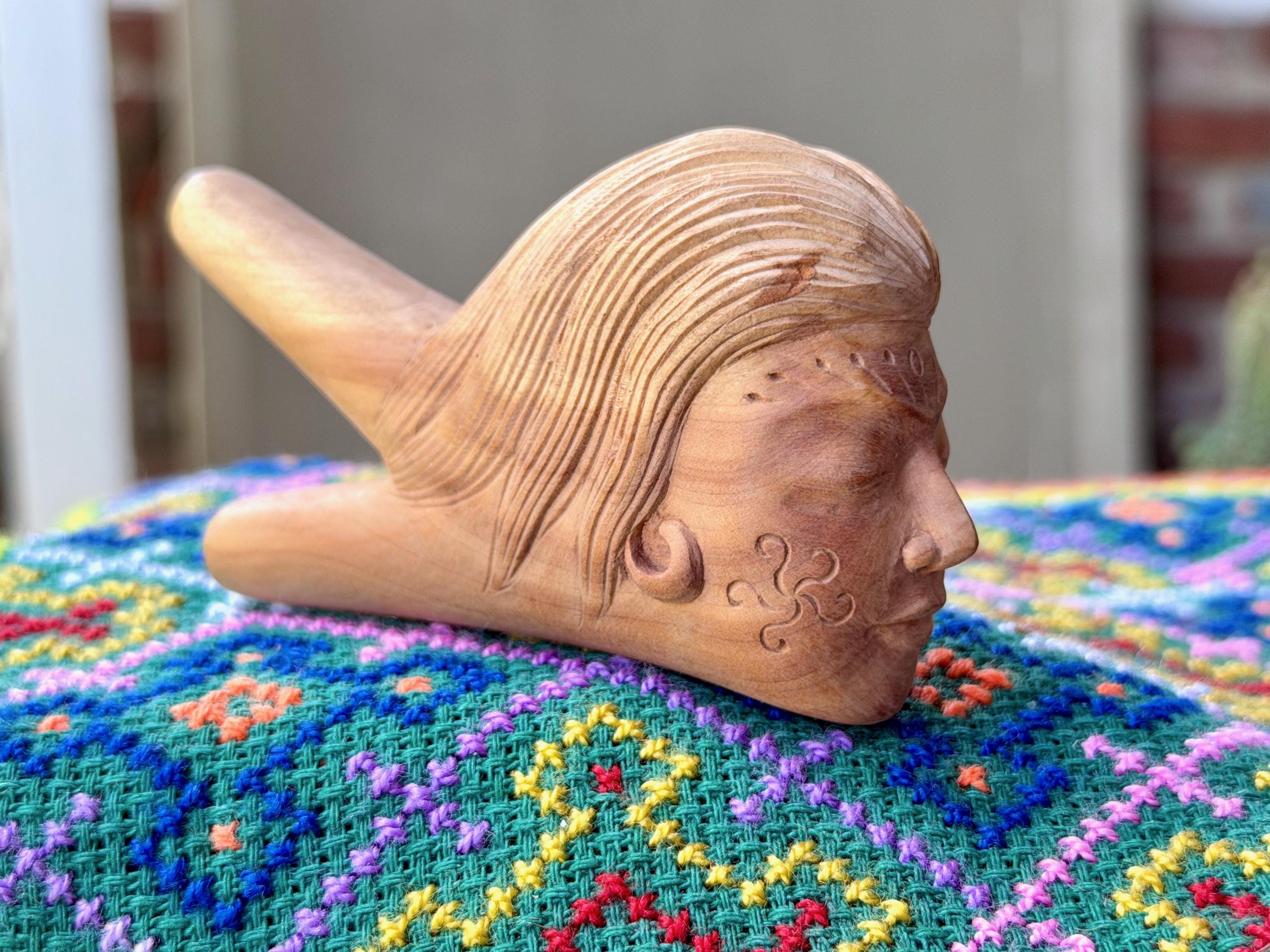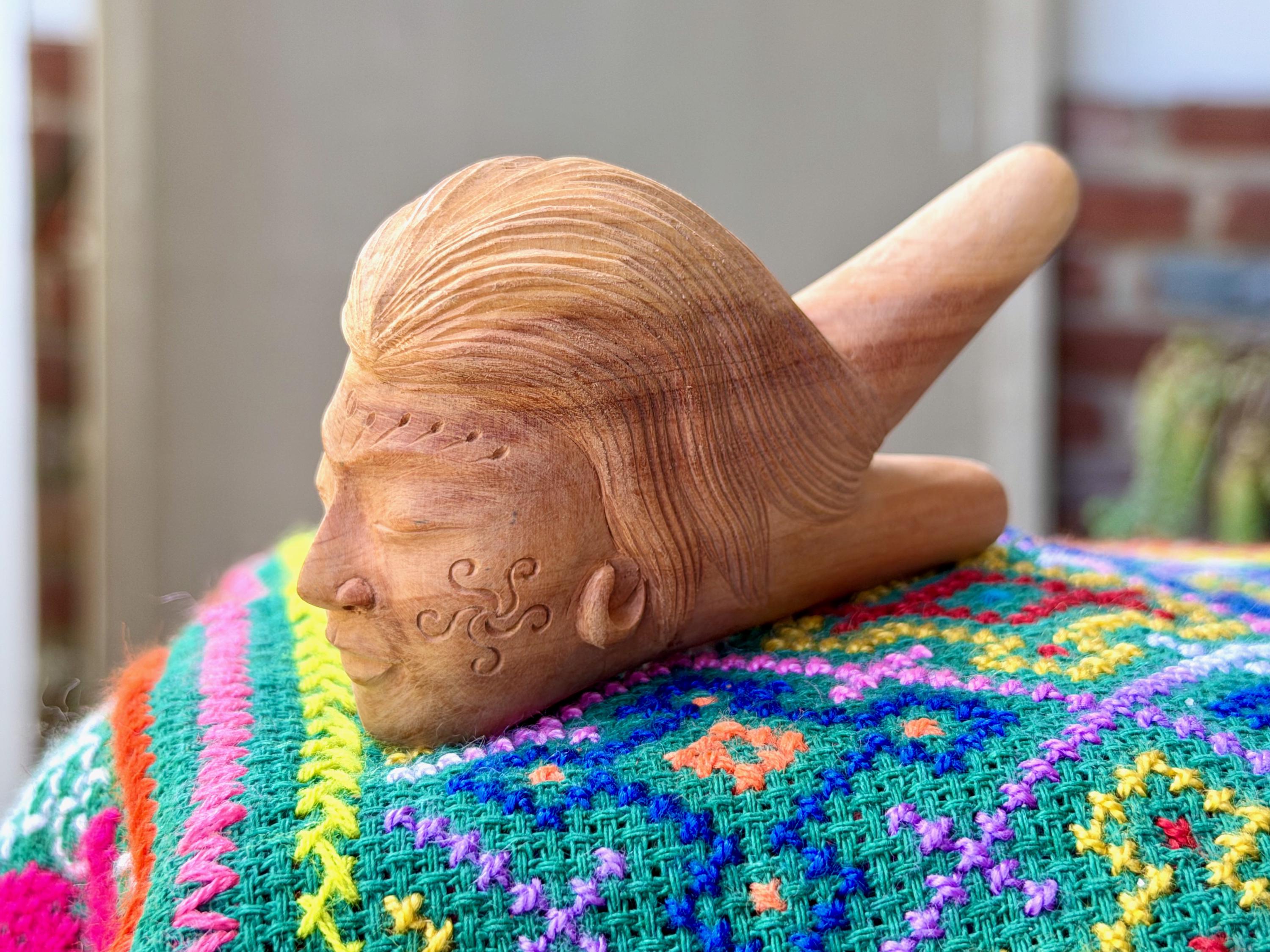 Exquisite craftsmanship went into the carving of this beautiful Divine Feminine kuripe, representing "La Madre." It was handmade from a single piece of native, mildly fragrant, Cemara Wood. Incredible beauty and excellent functionality.