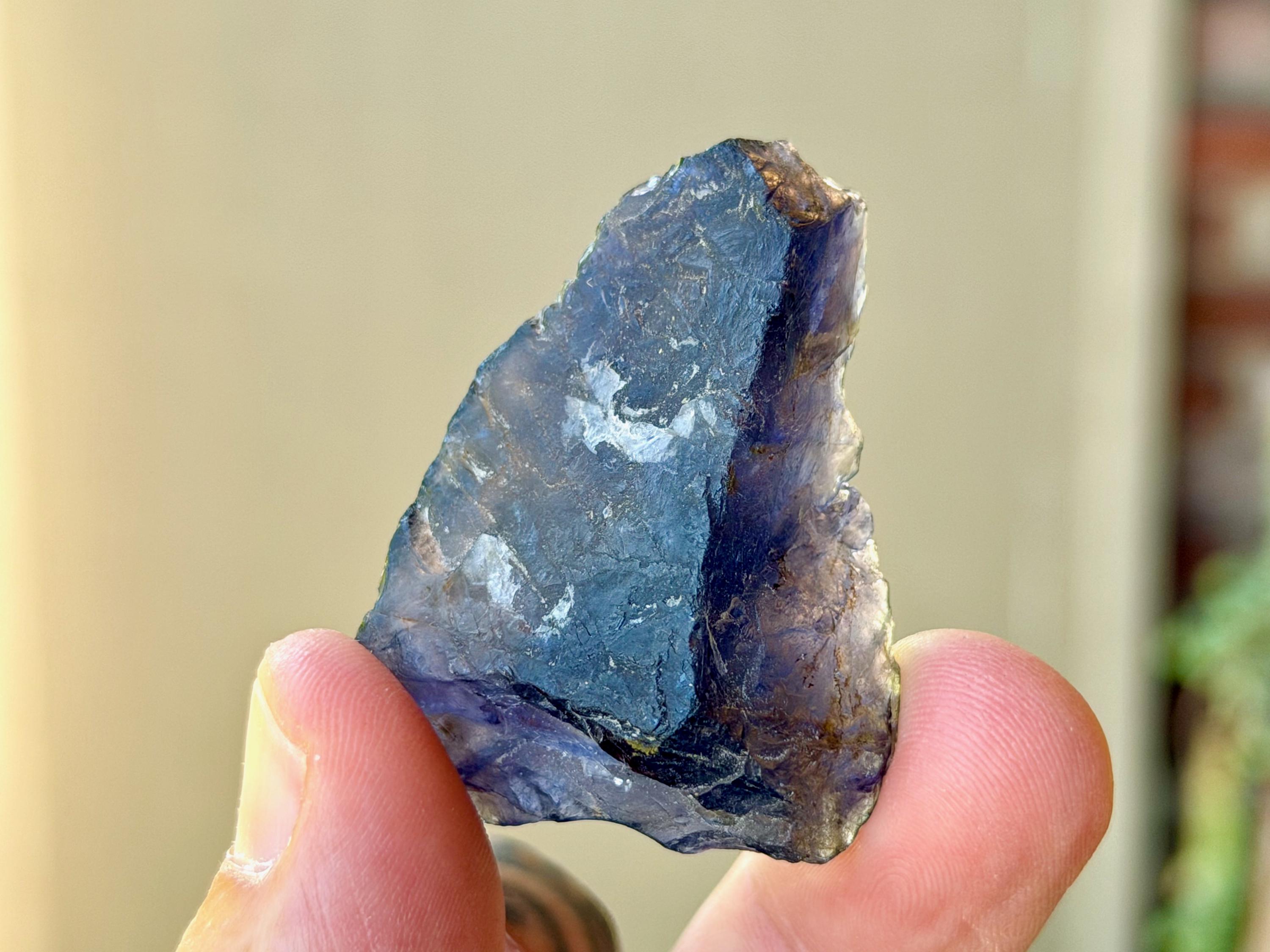 This natural Iolite crystal comes from a recent find in Madagascar.
