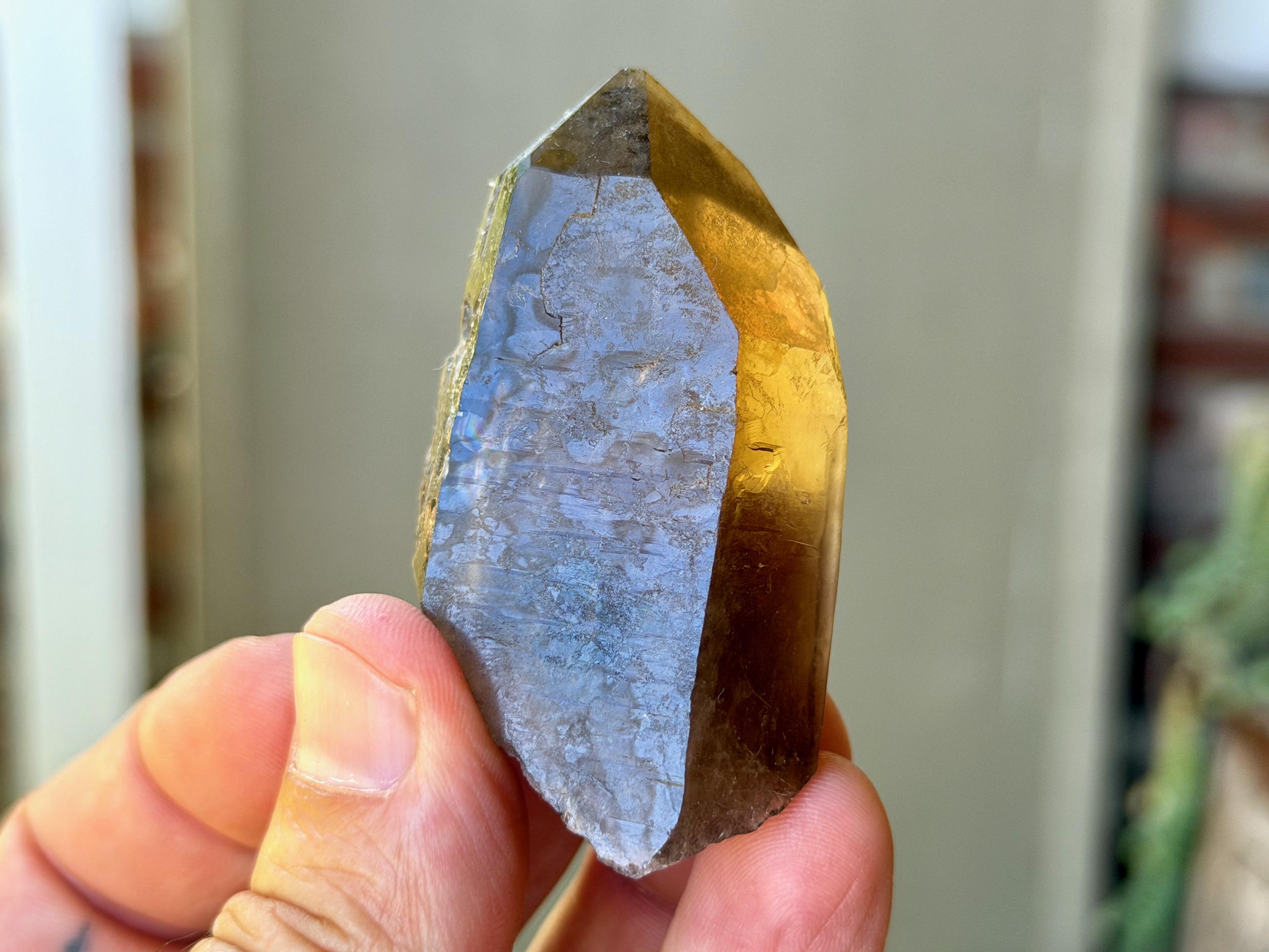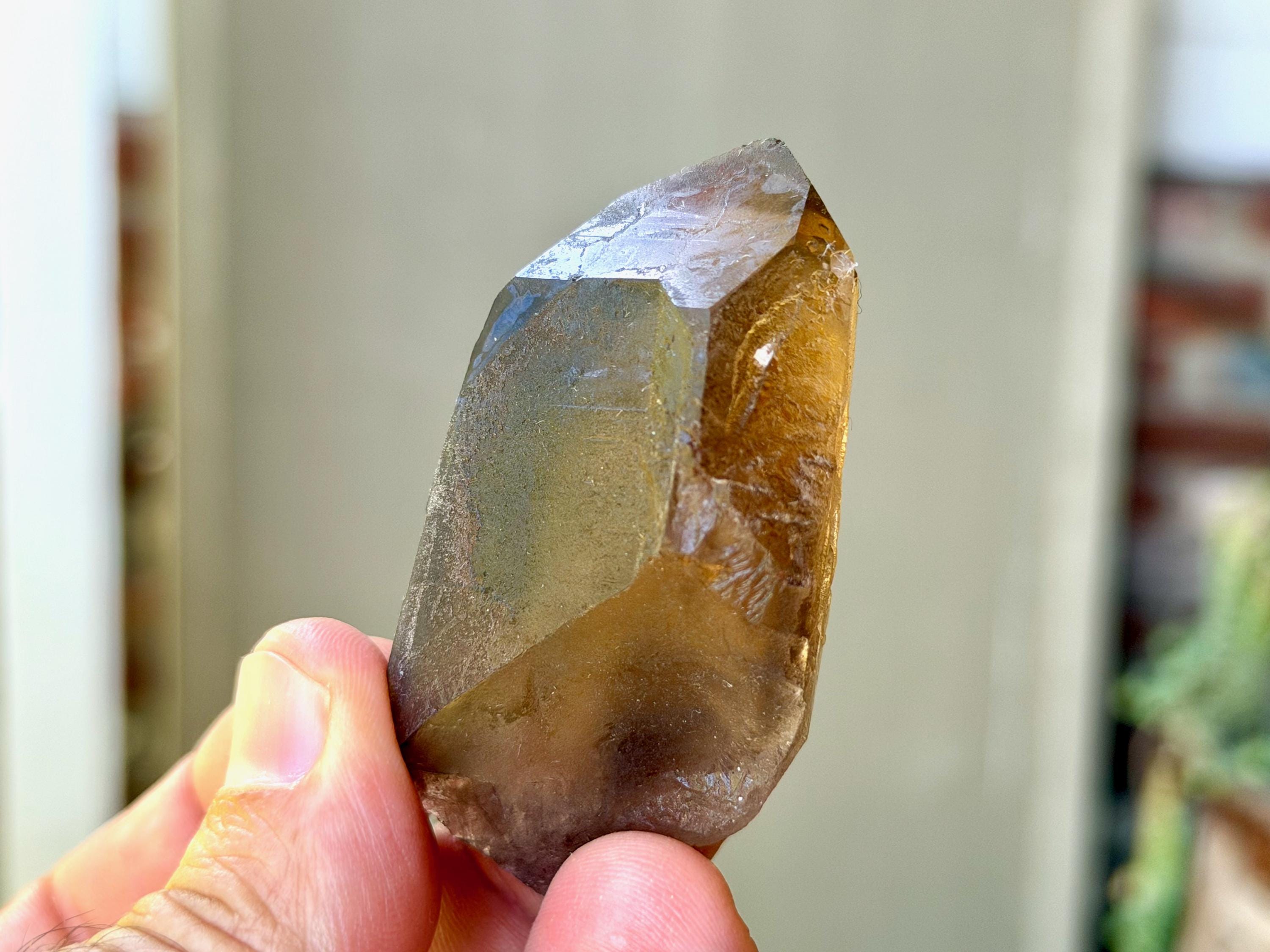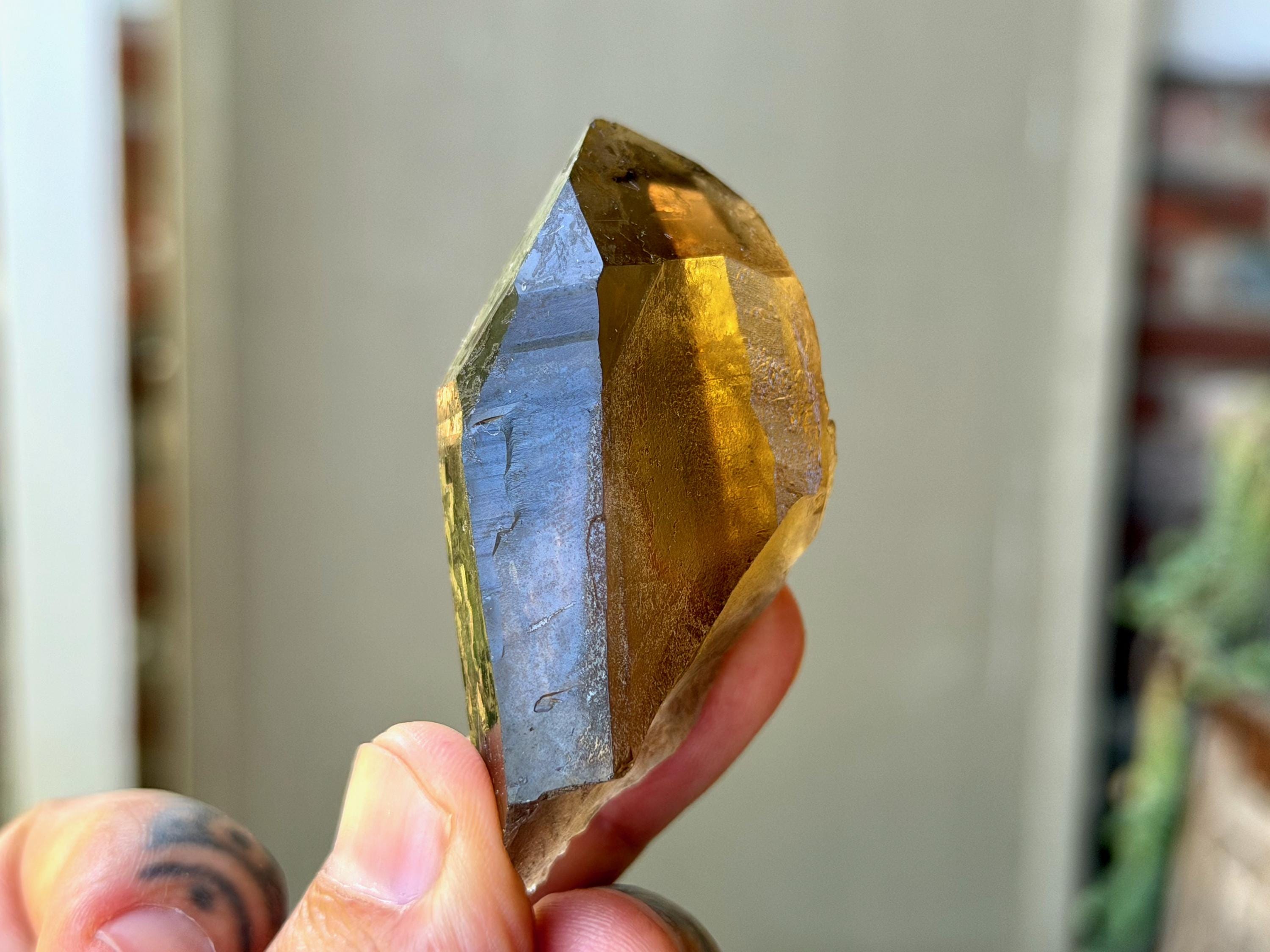 This natural Pele’s Dream Lemurian Citrine comes from a recent (2025) find in Cristalina, Goiás, Brazil.