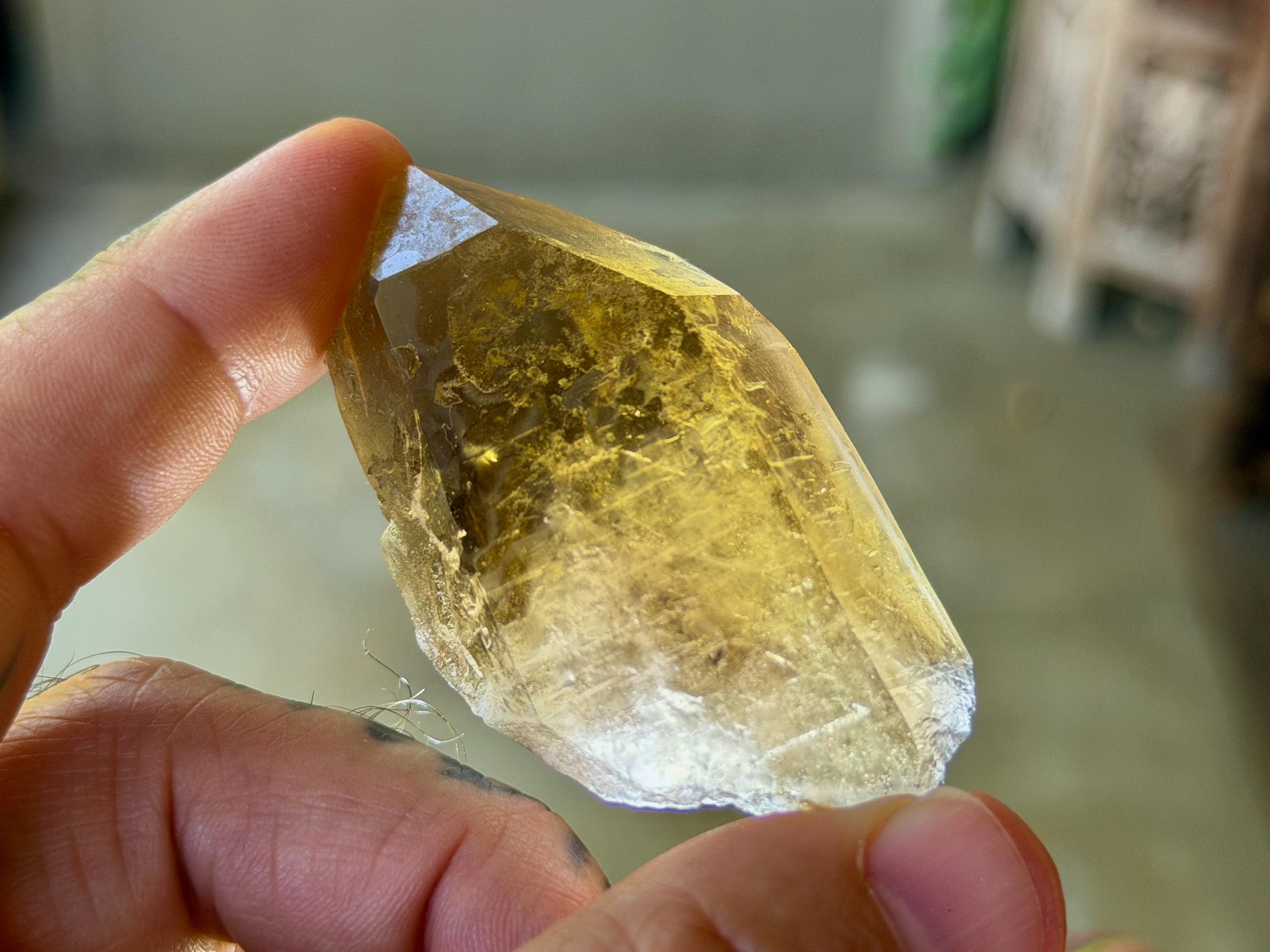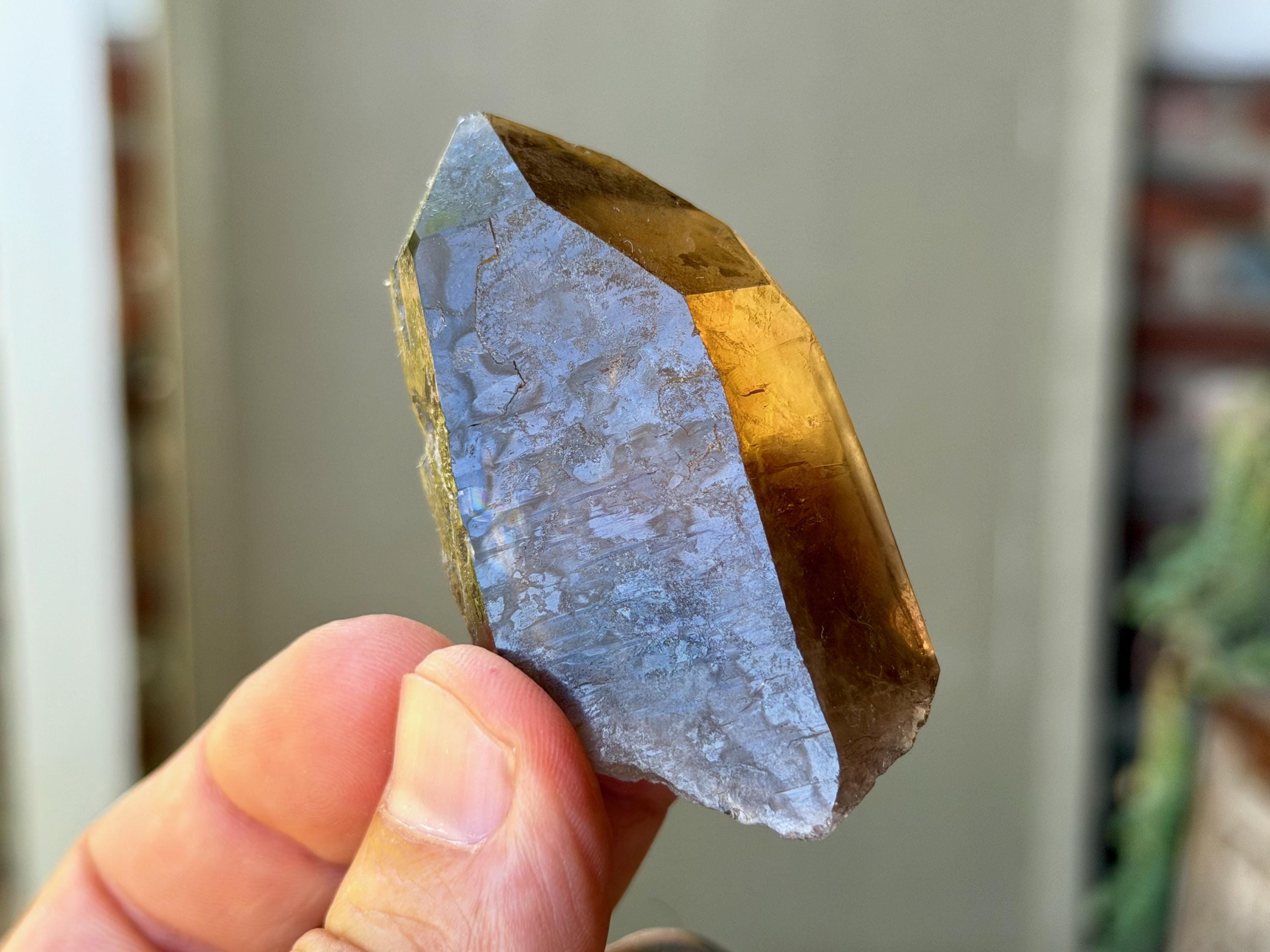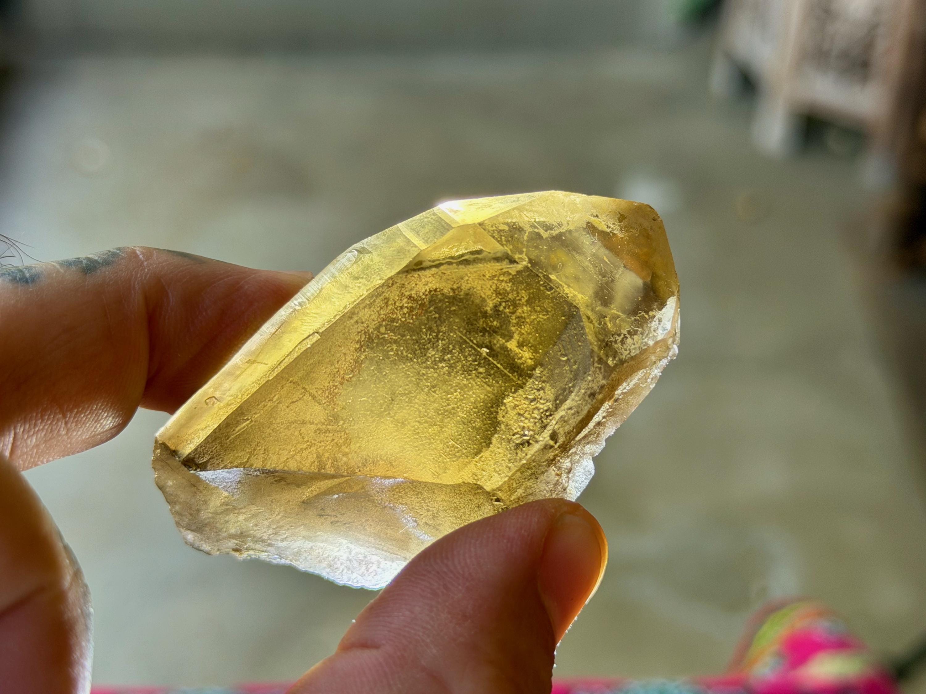 This natural Pele’s Dream Lemurian Citrine comes from a recent (2025) find in Cristalina, Goiás, Brazil.