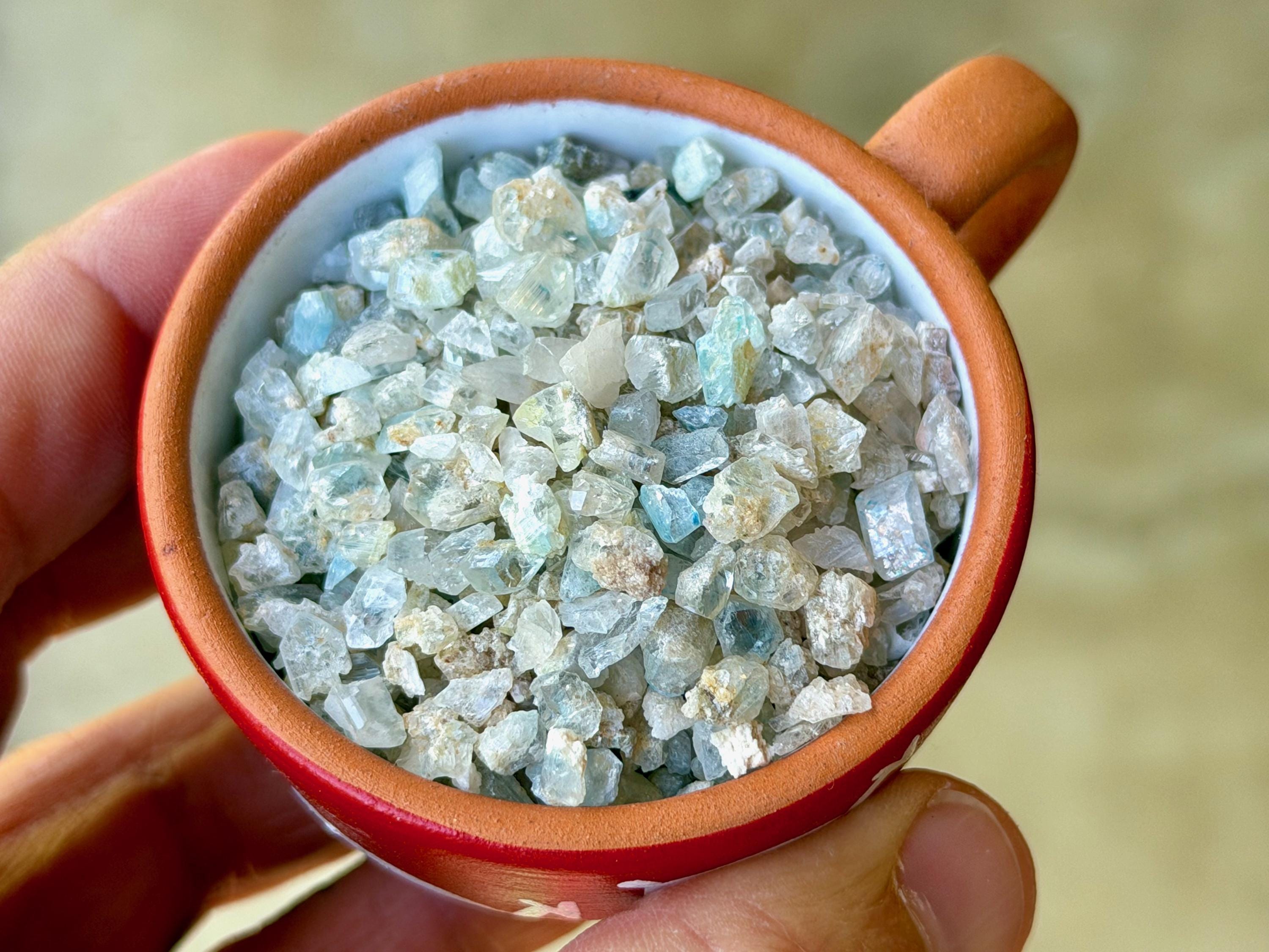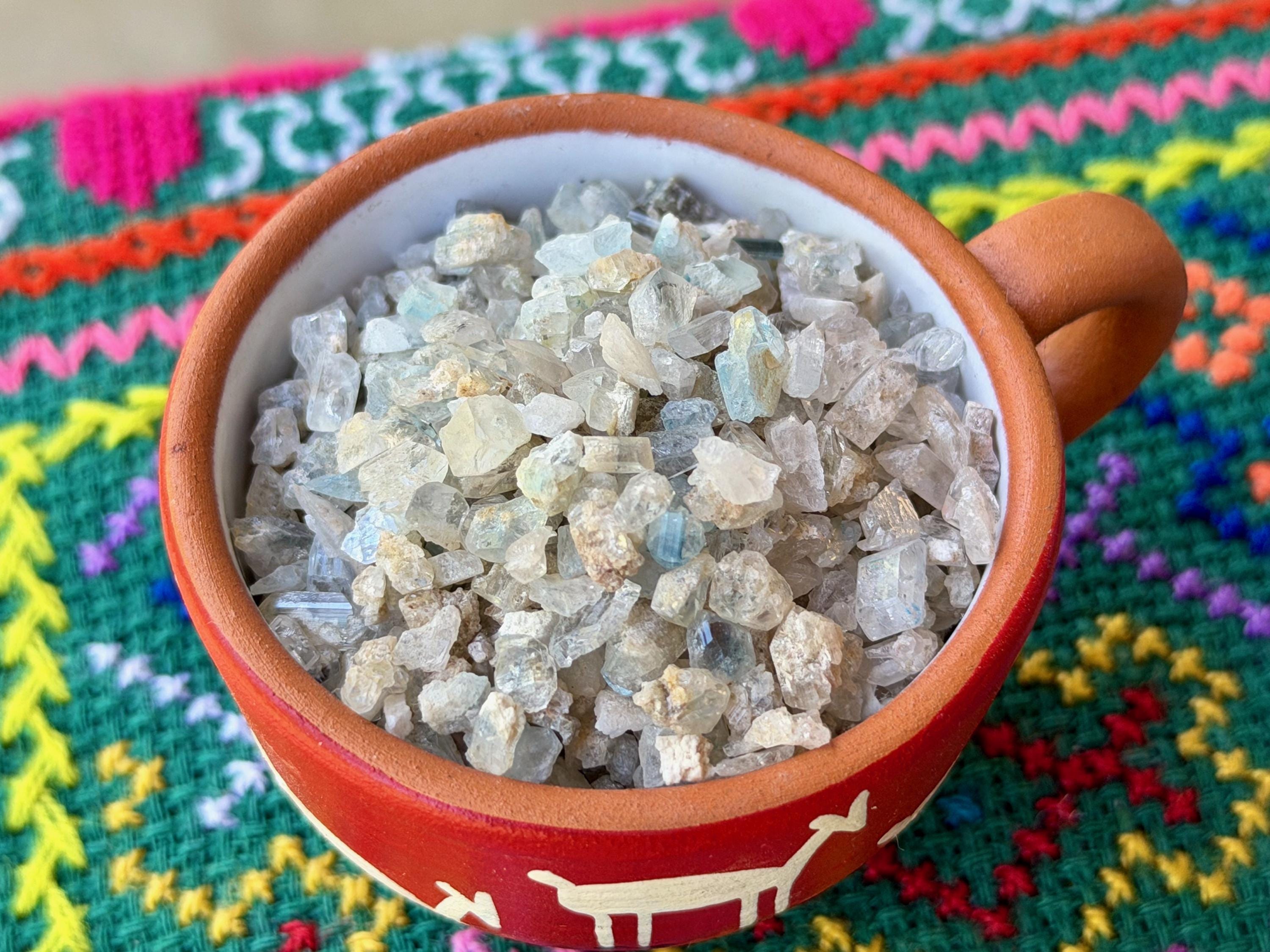 These crystals all possess natural formations, some having one or more terminated sides, and some what we'd consider "chips" and "pebbles." All lots are a random mix of pieces.