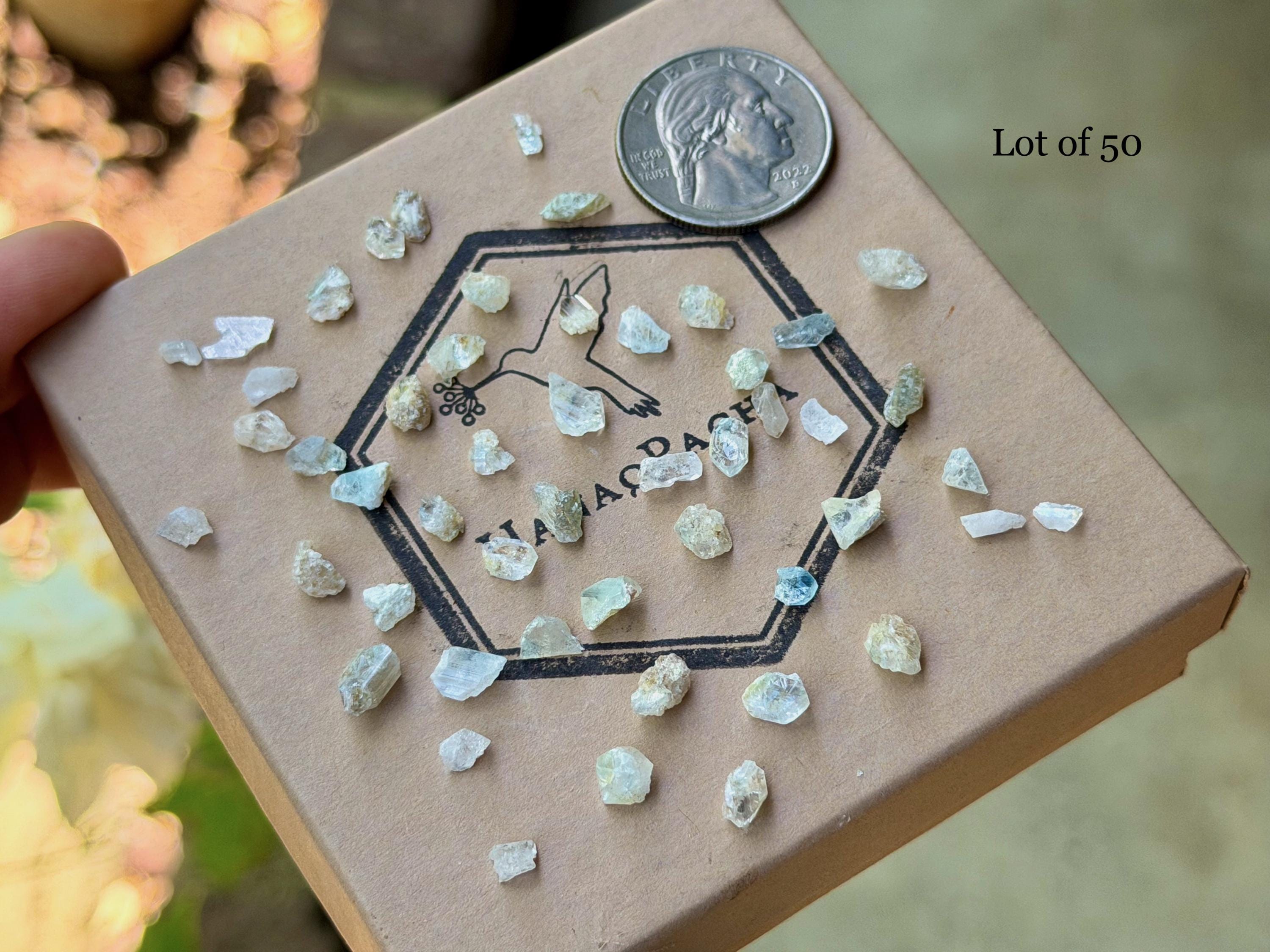 These natural Euclase crystals come from an old find in Paraiba State, Brazil. This listing is for lots of 20 or 50 crystals, simply select your preference from the dropdown menu.