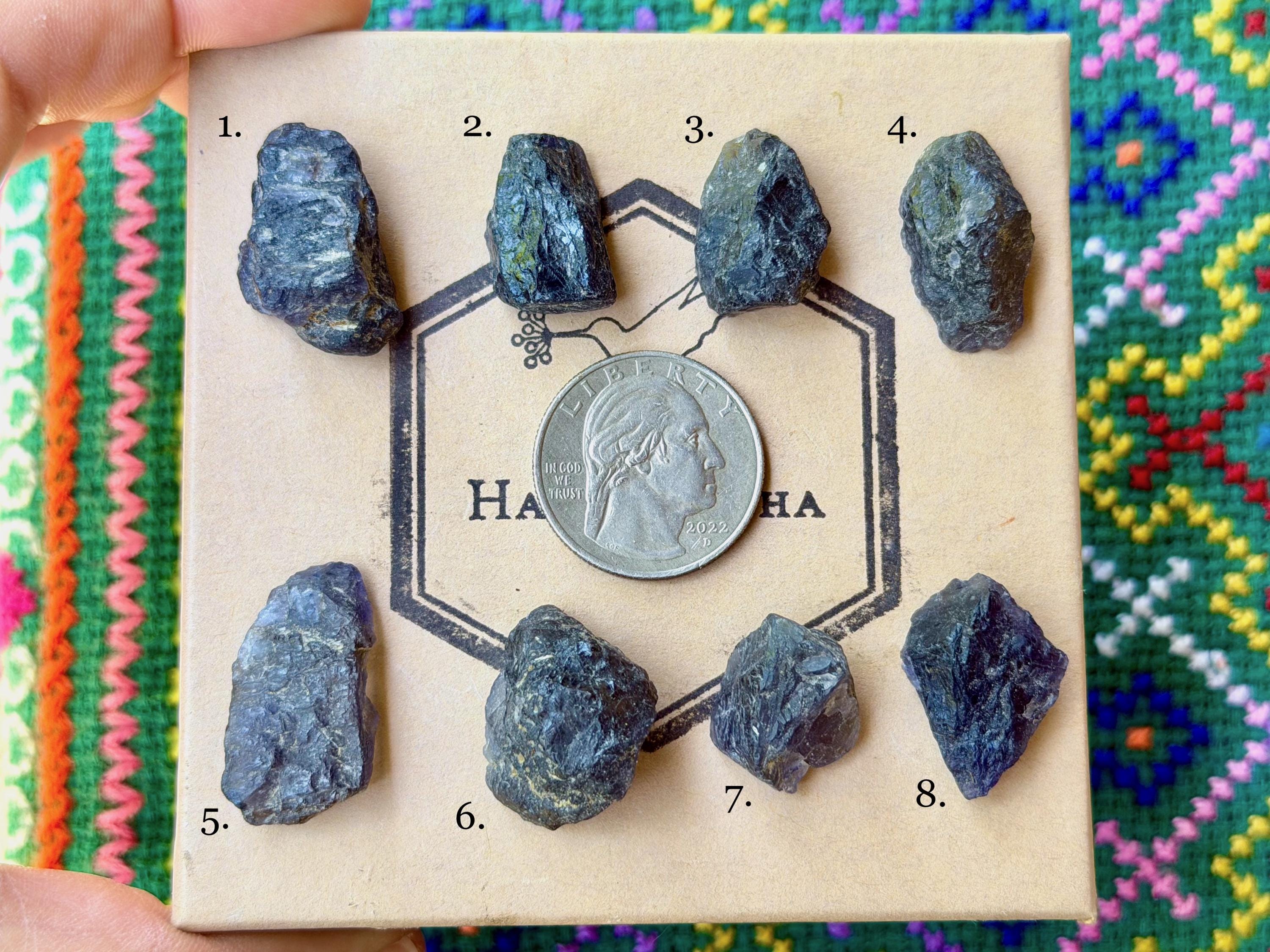 These natural Iolite crystals come from a recent find in Madagascar. Each selection is numbered, simply select your preference from the dropdown menu.