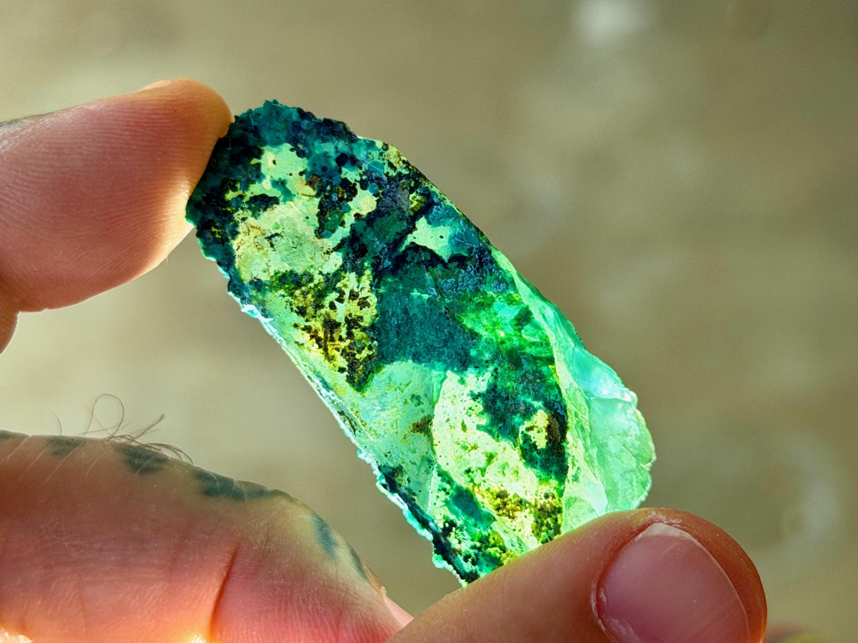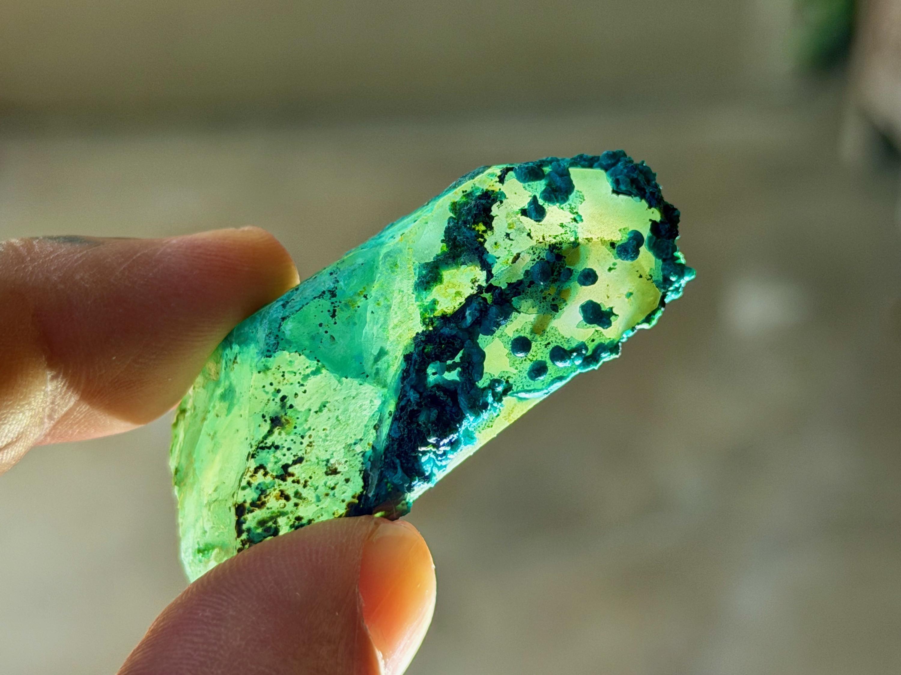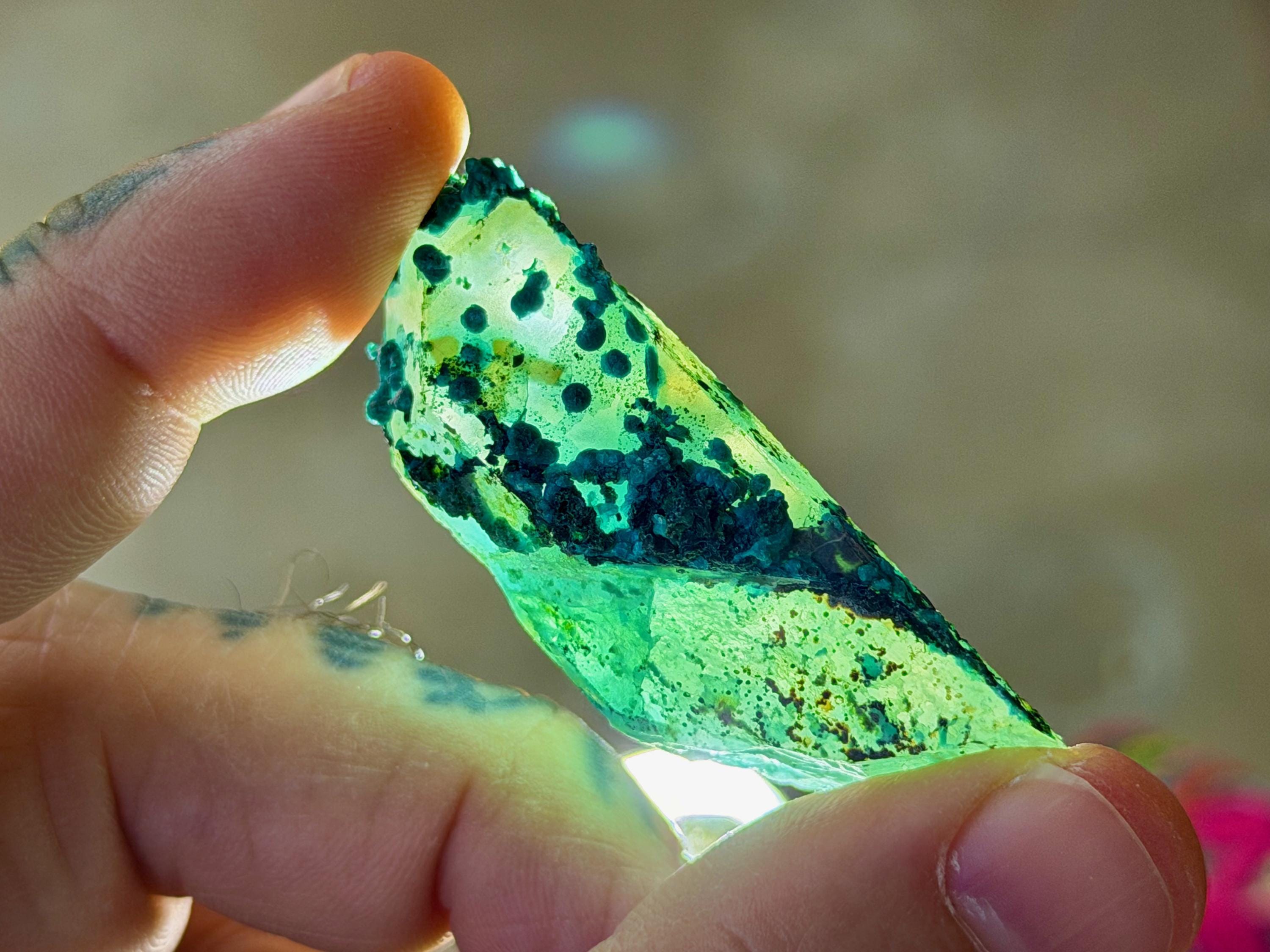 Chrysocolla is a copper-based mineral, ranging from light green to dark blue. It is one of the most powerful "communication" crystals in the mineral world, carrying an energy that encourages self-expression and empowerment. As it also carries a very peaceful energy, it instills within us the weight and power our words and actions have on the world and beings around us, encouraging compassion and integrity.