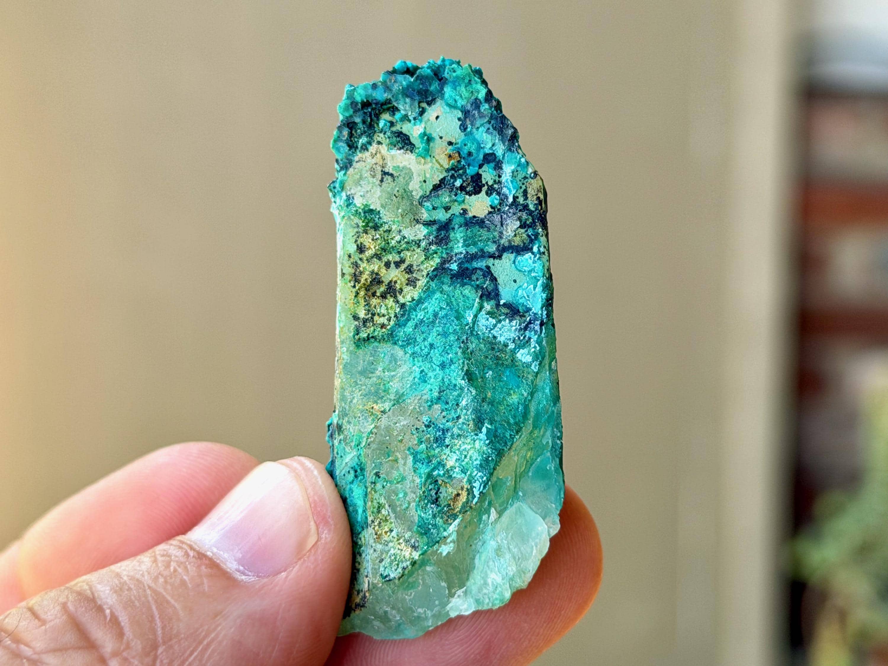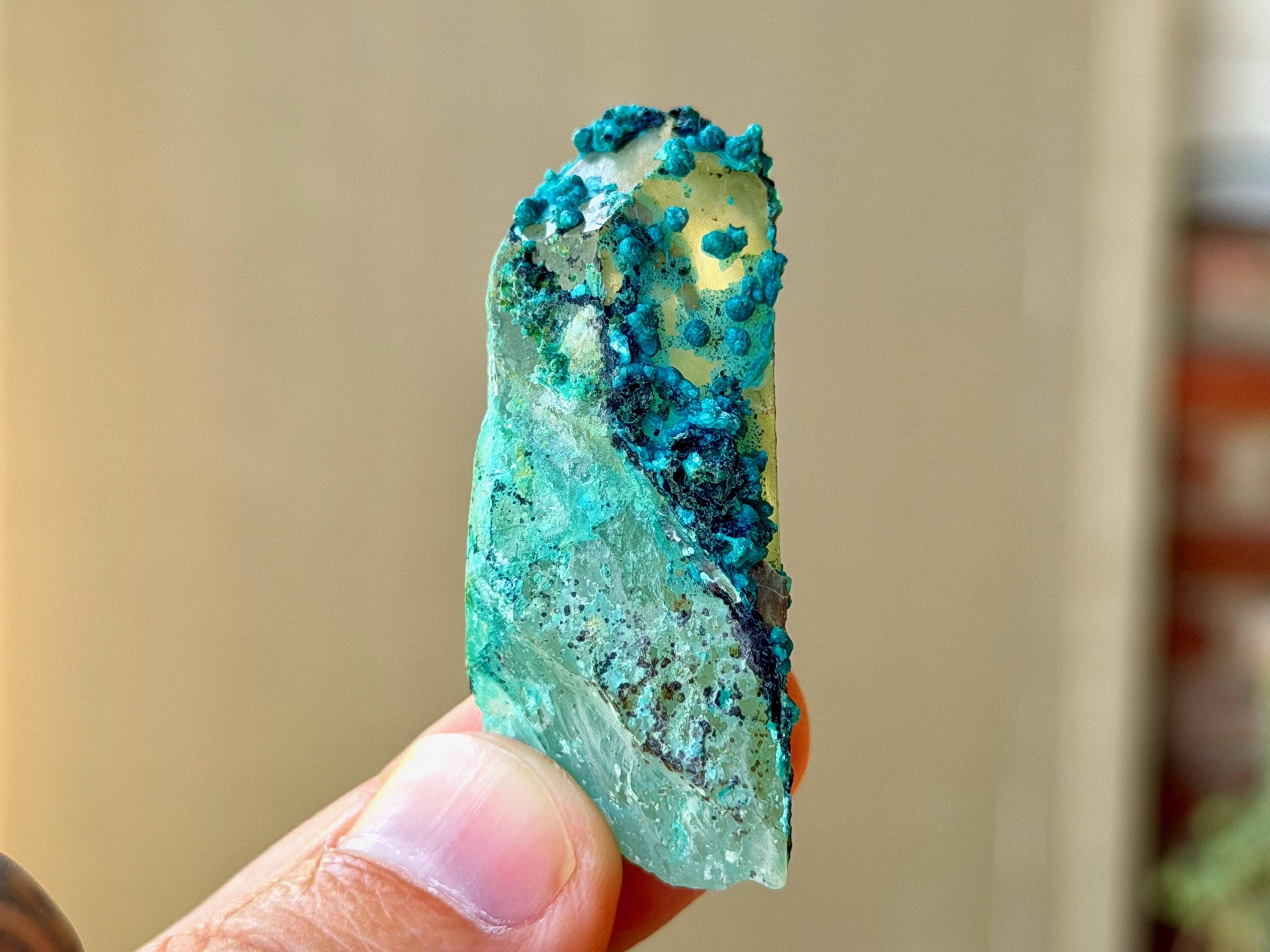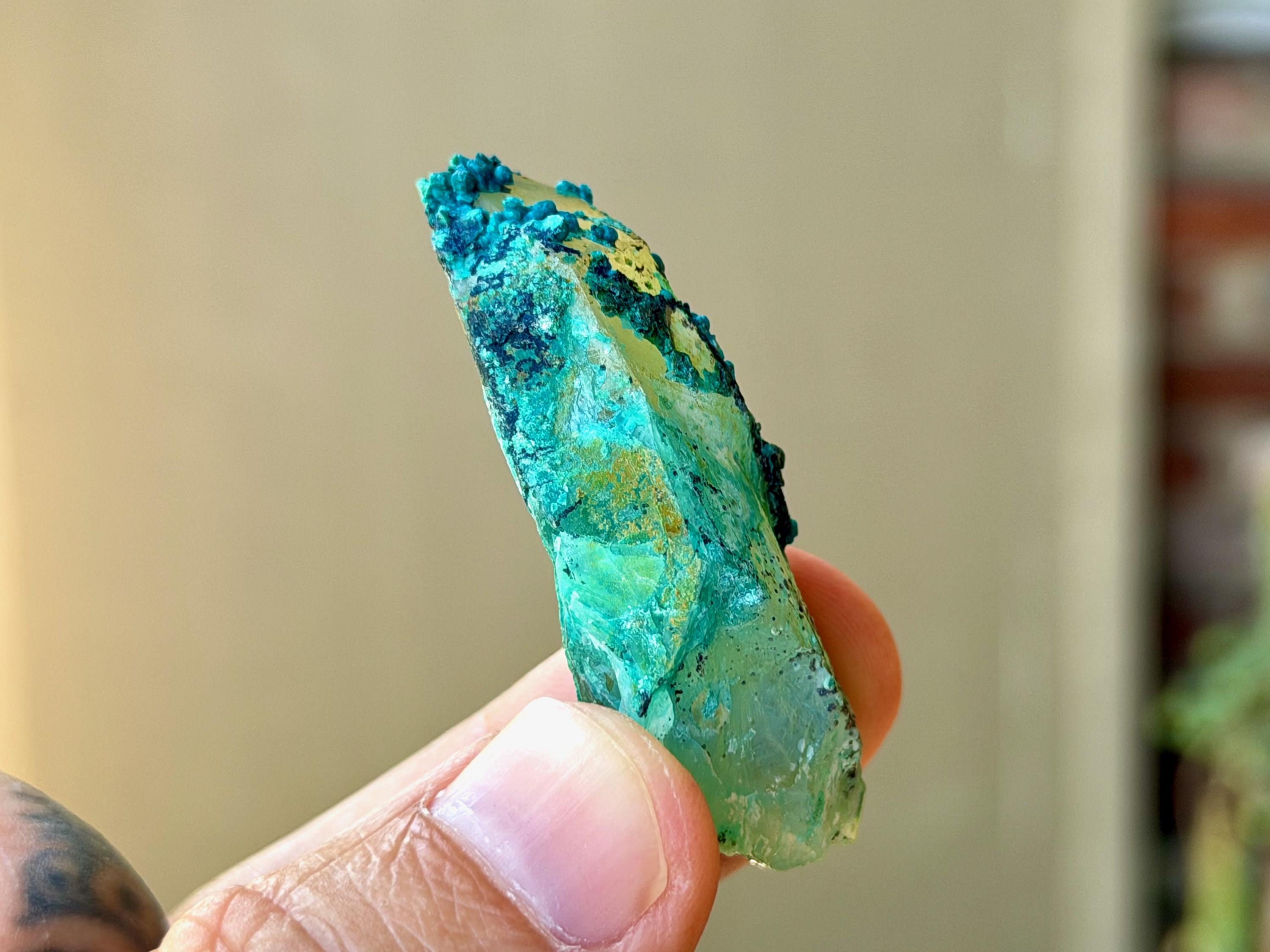 This natural Chrysocolla Quartz comes from a recent find in the famed Tentadora Mine, Tricapo District, Huancavelica, Peru. Chrysocolla is considered to be one of the most powerful communication crystals, encouraging self-expression, empowerment and compassion.