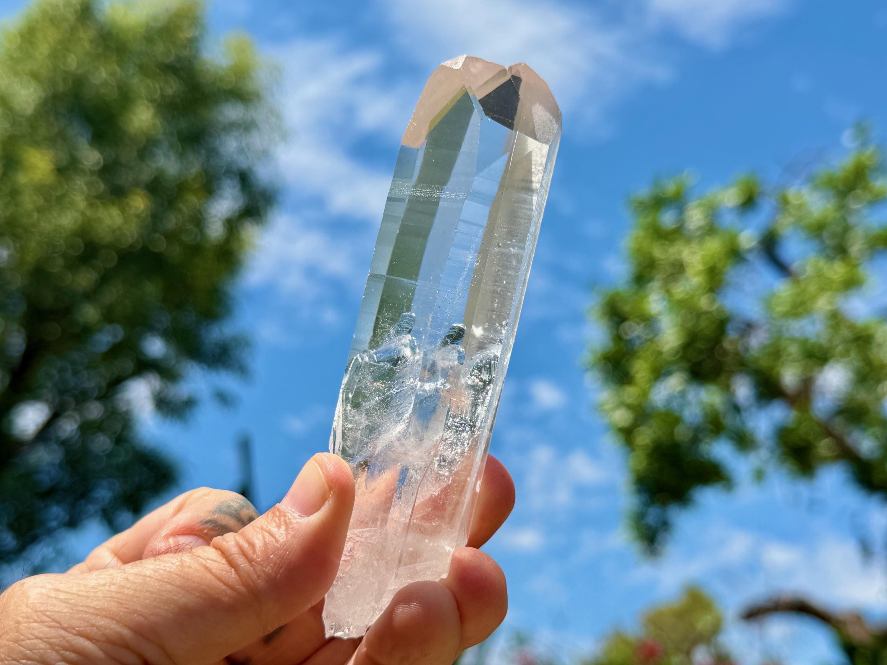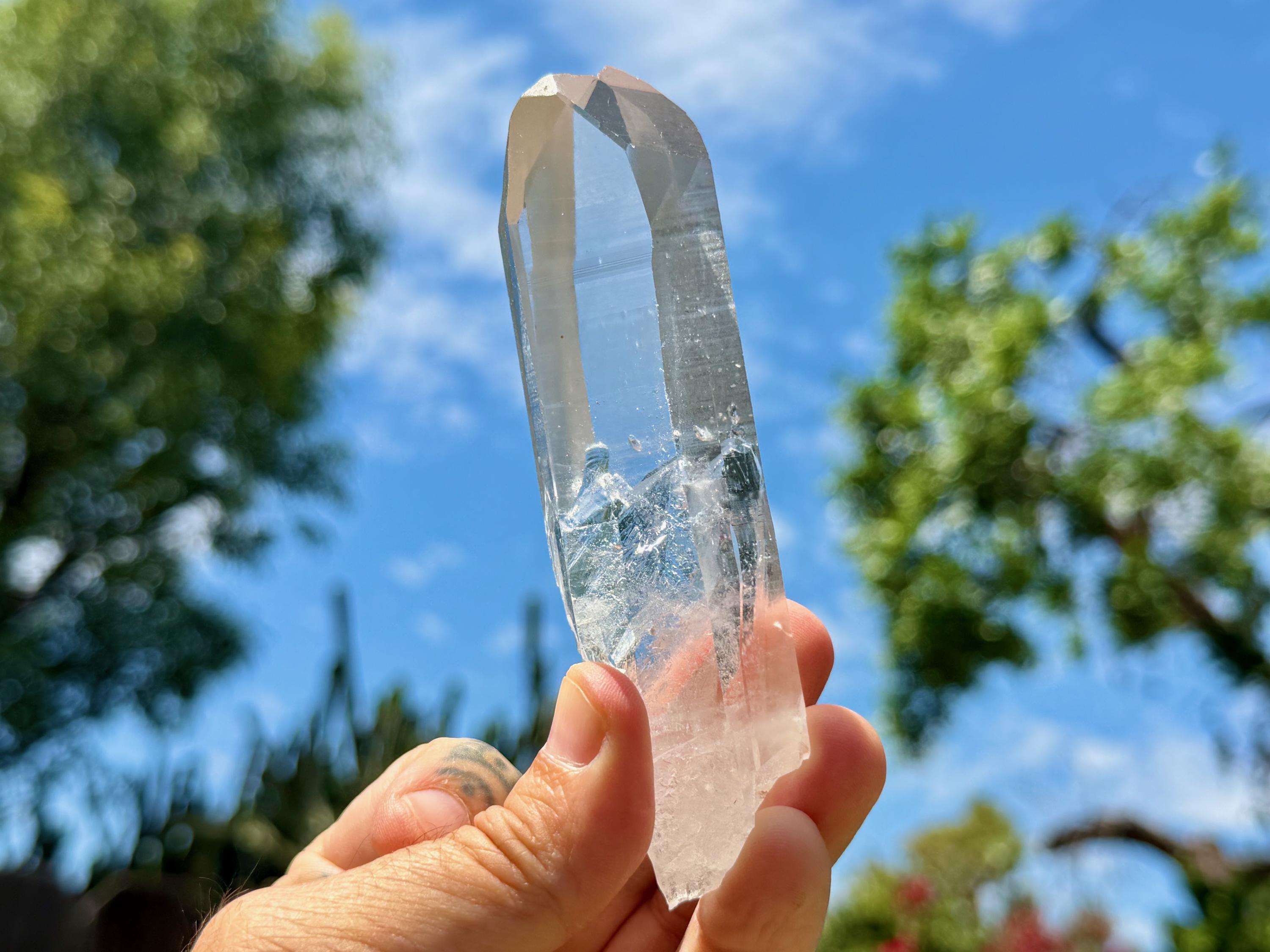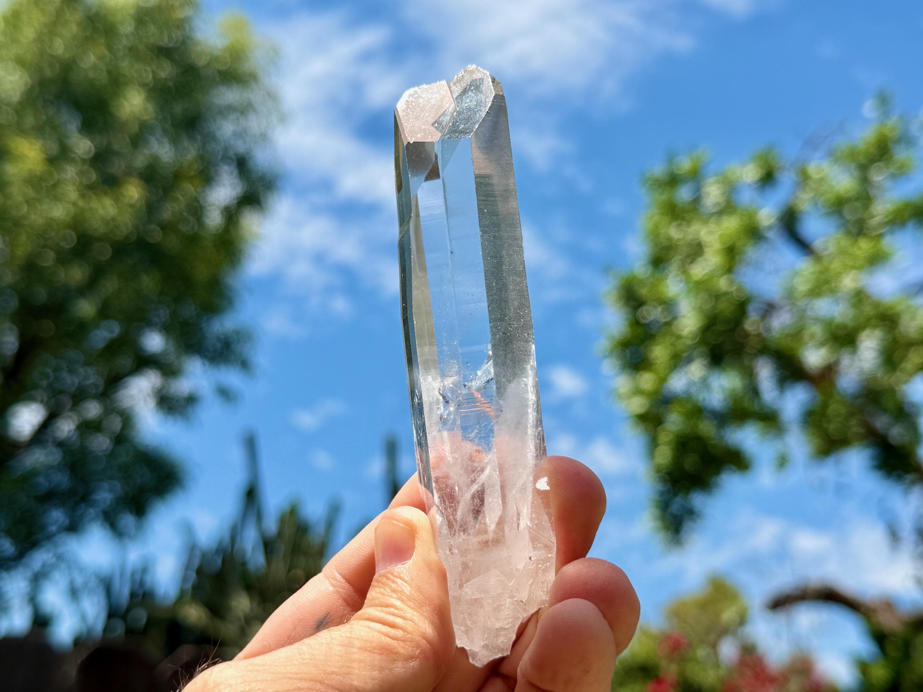 This natural Lemurian Quartz crystal comes from a recent (2024) find in Bahia, Brazil.