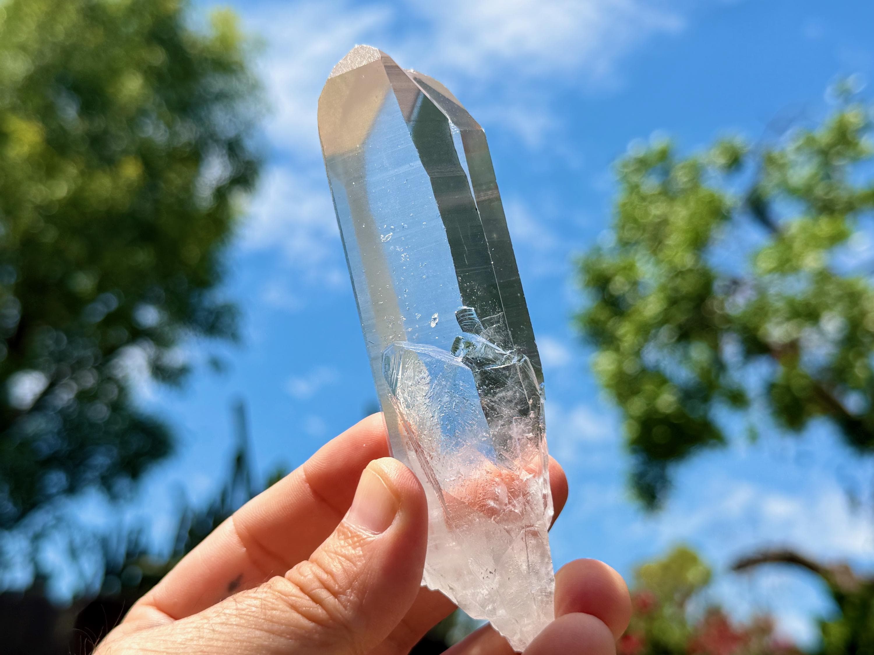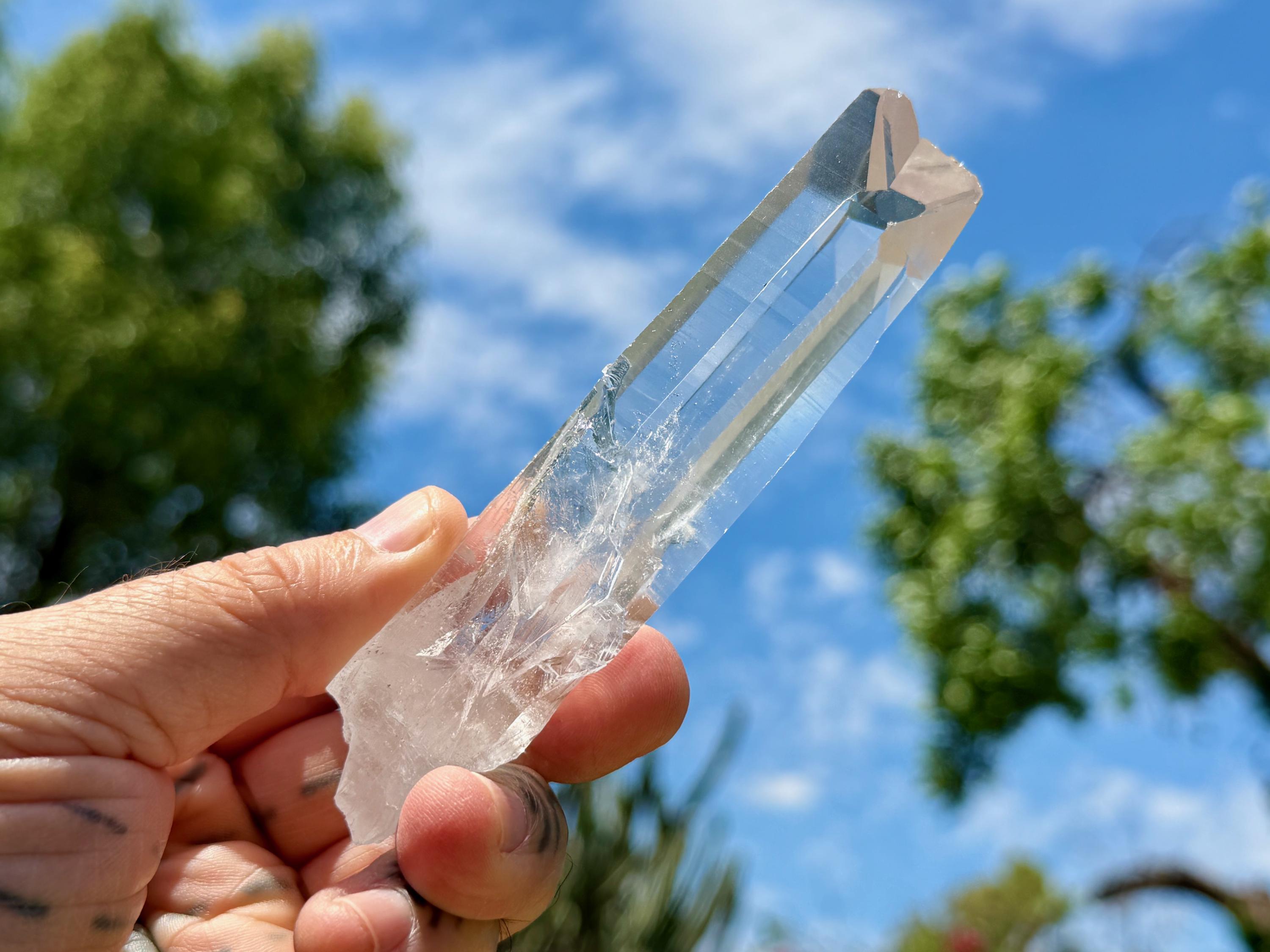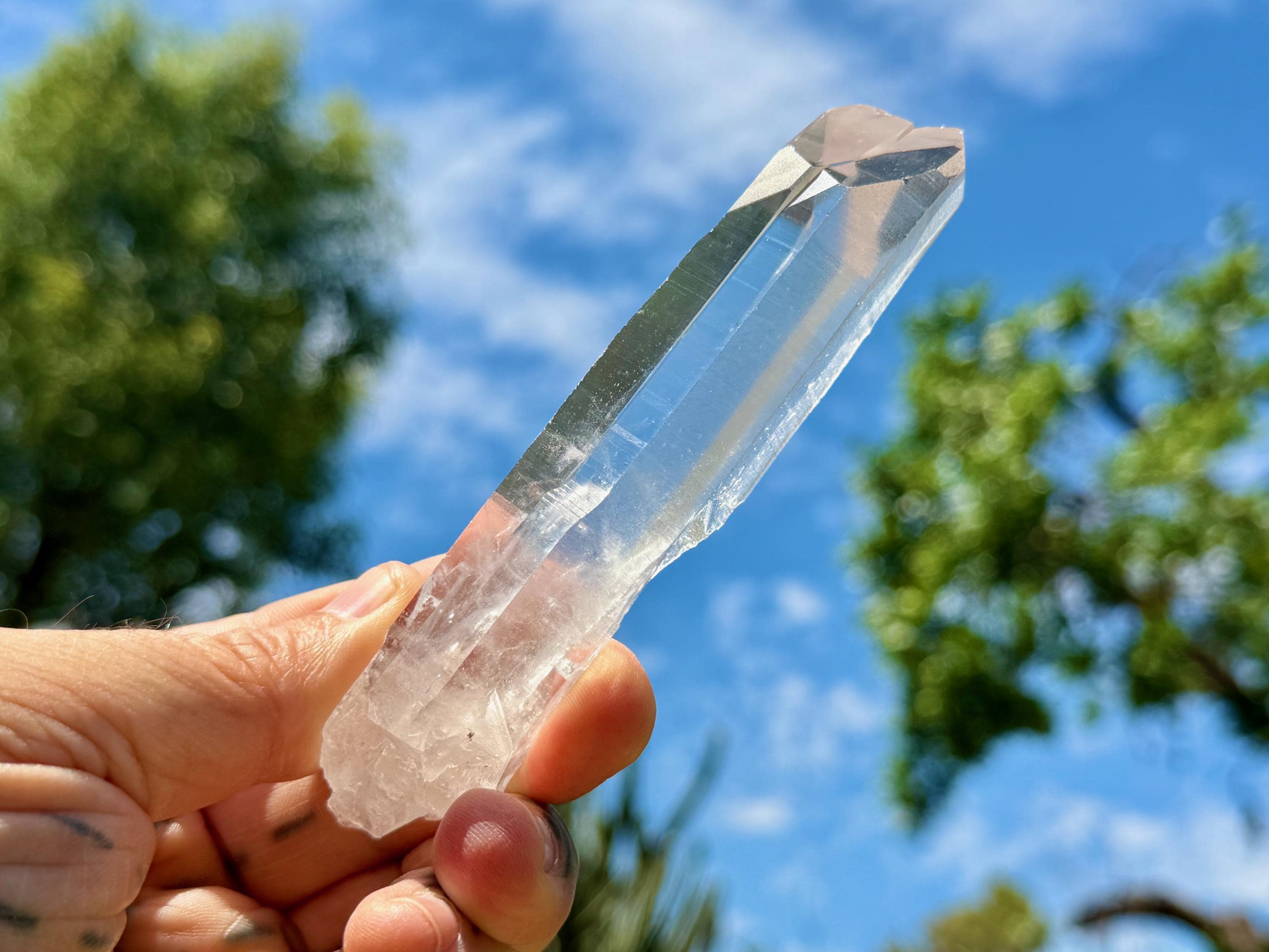 This natural Lemurian Quartz crystal comes from a recent (2024) find in Bahia, Brazil.