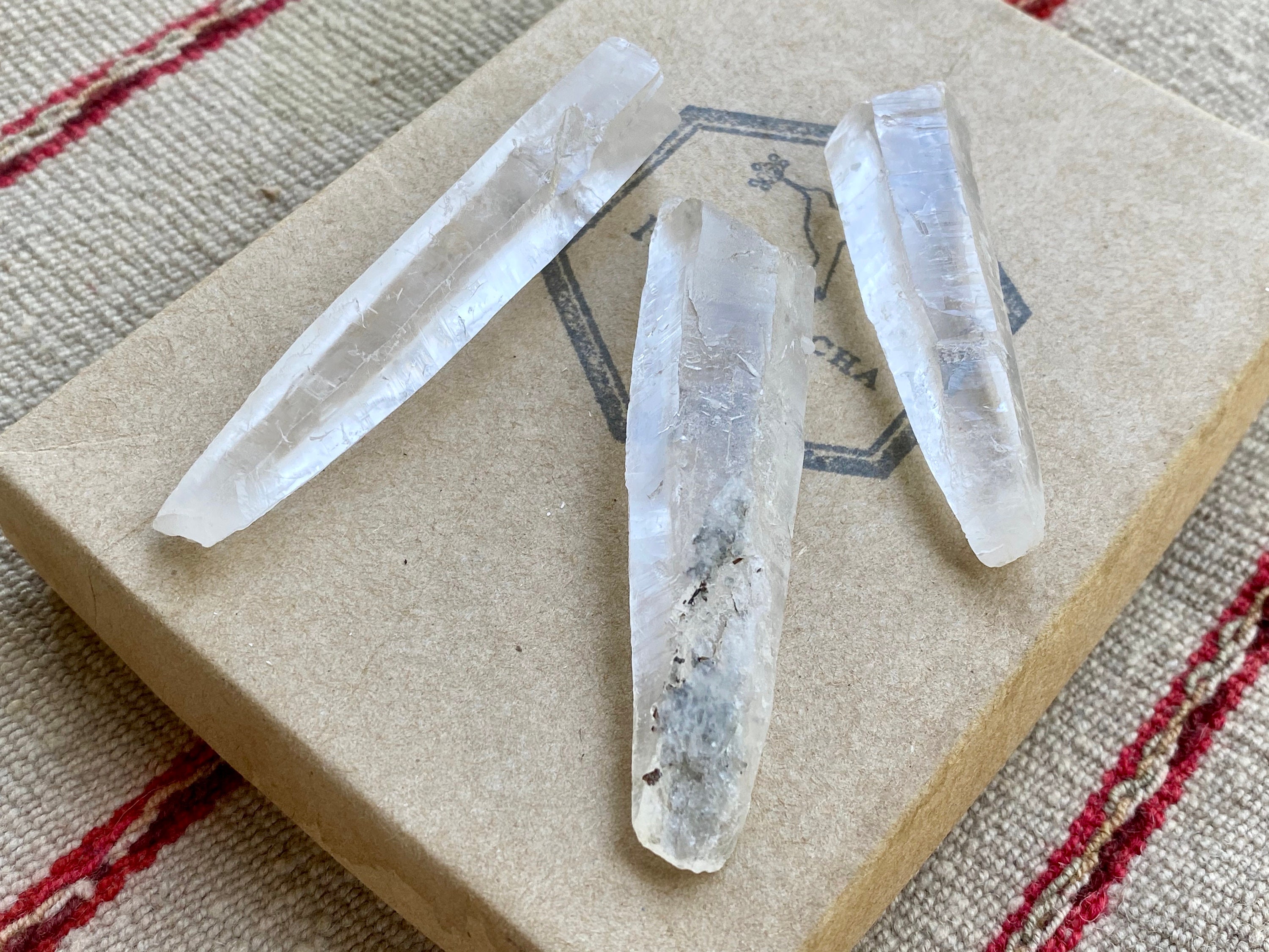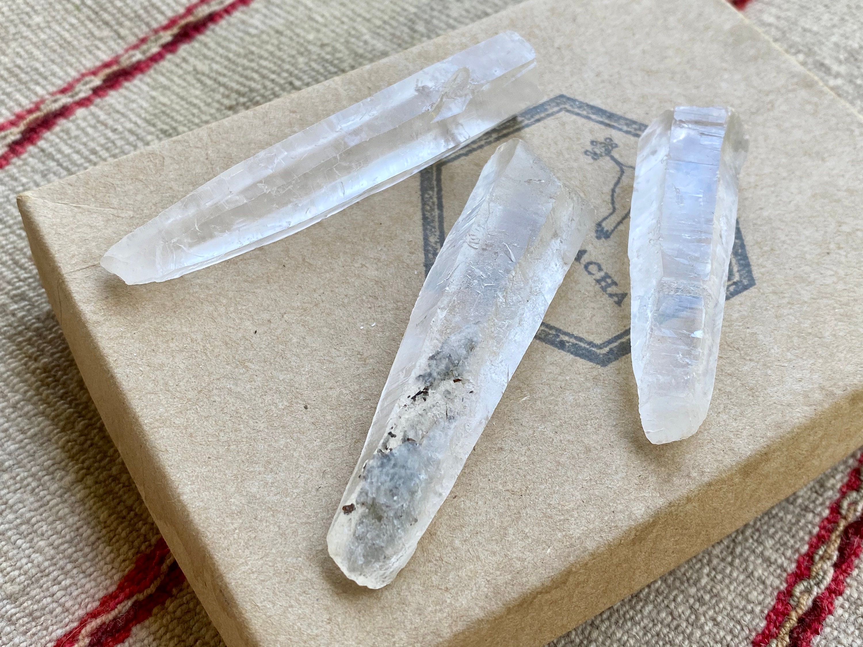 These are very clear, very nicely sized crystals with very nice terminations (one is mildly blunted from Growth Interference but not a break). These are certainly each big enough for use as personal meditation crystals, but would be perfect collectively for use in crystal grids, jewelry, etc.